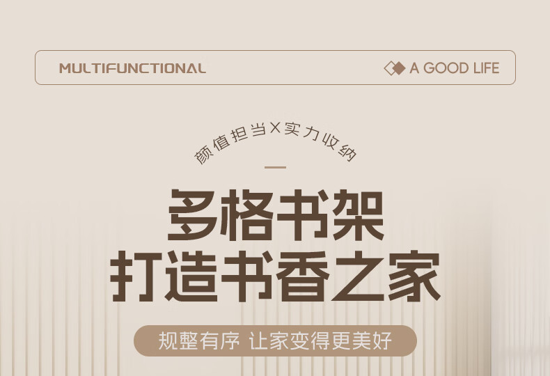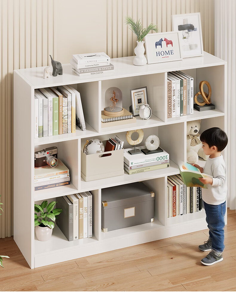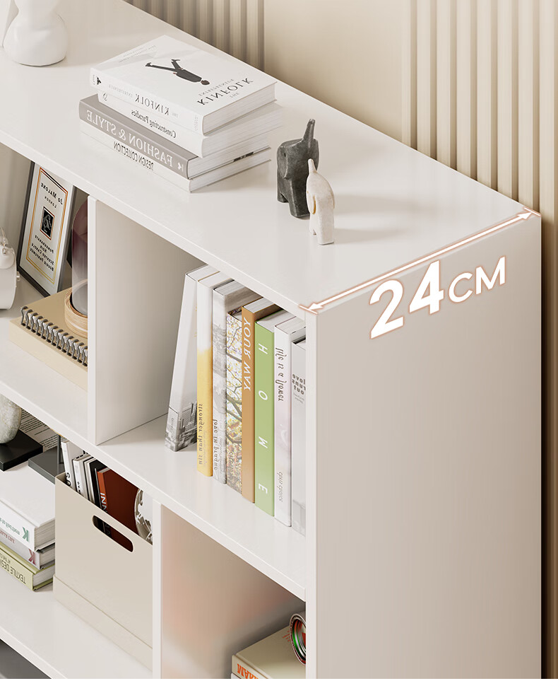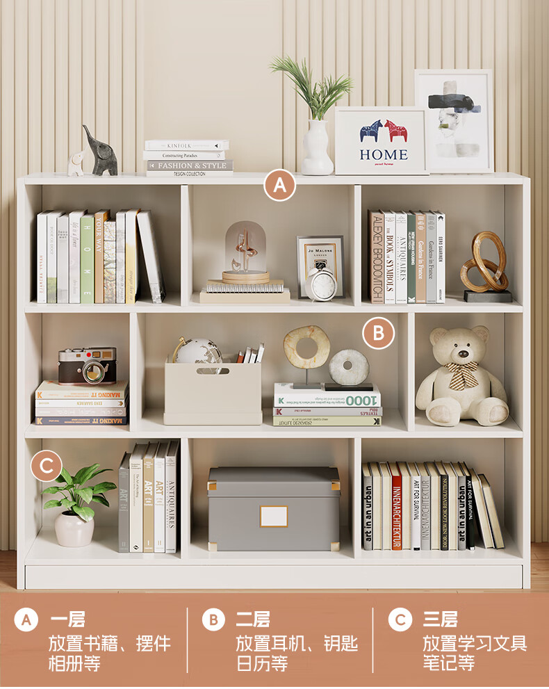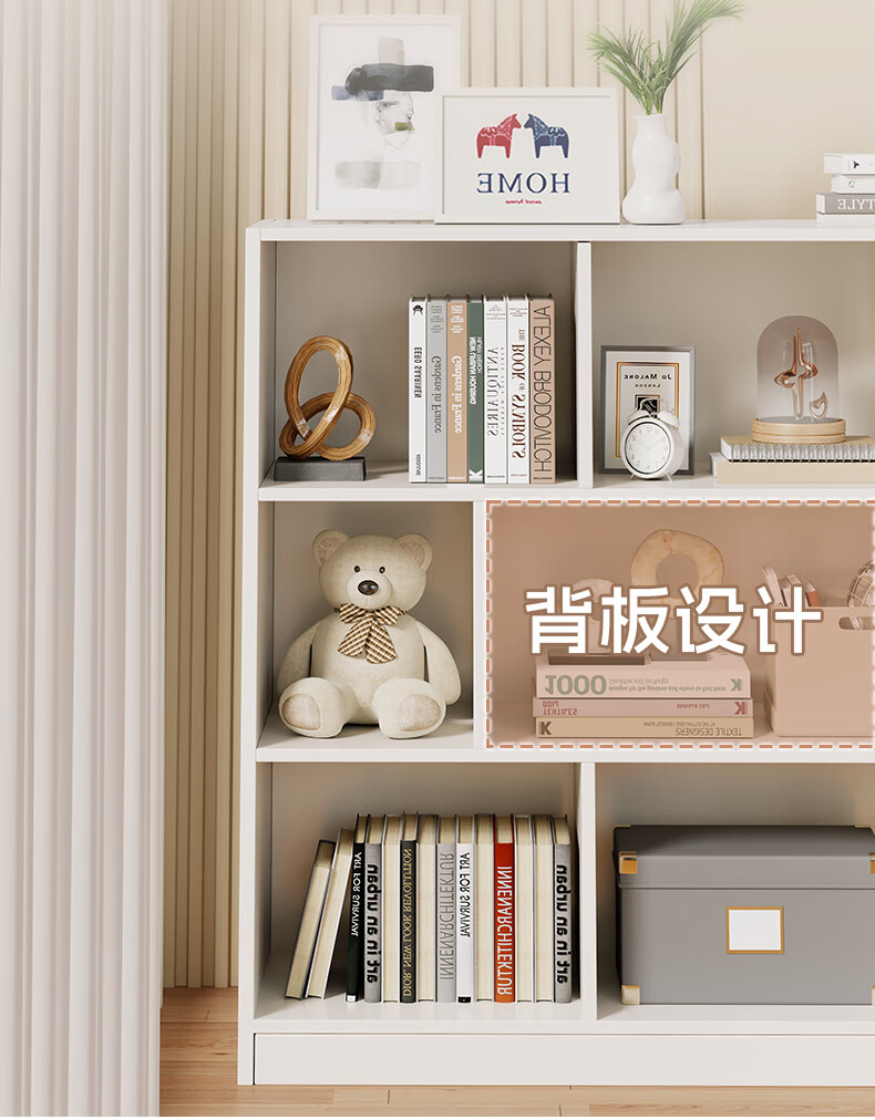 木格格书架落地置物架家用书柜多层收纳柜子分层架客厅简易格子柜置物柜 暖白色120*24*60