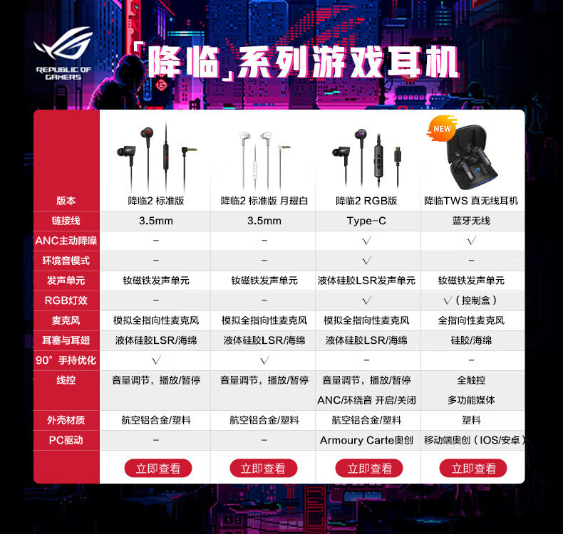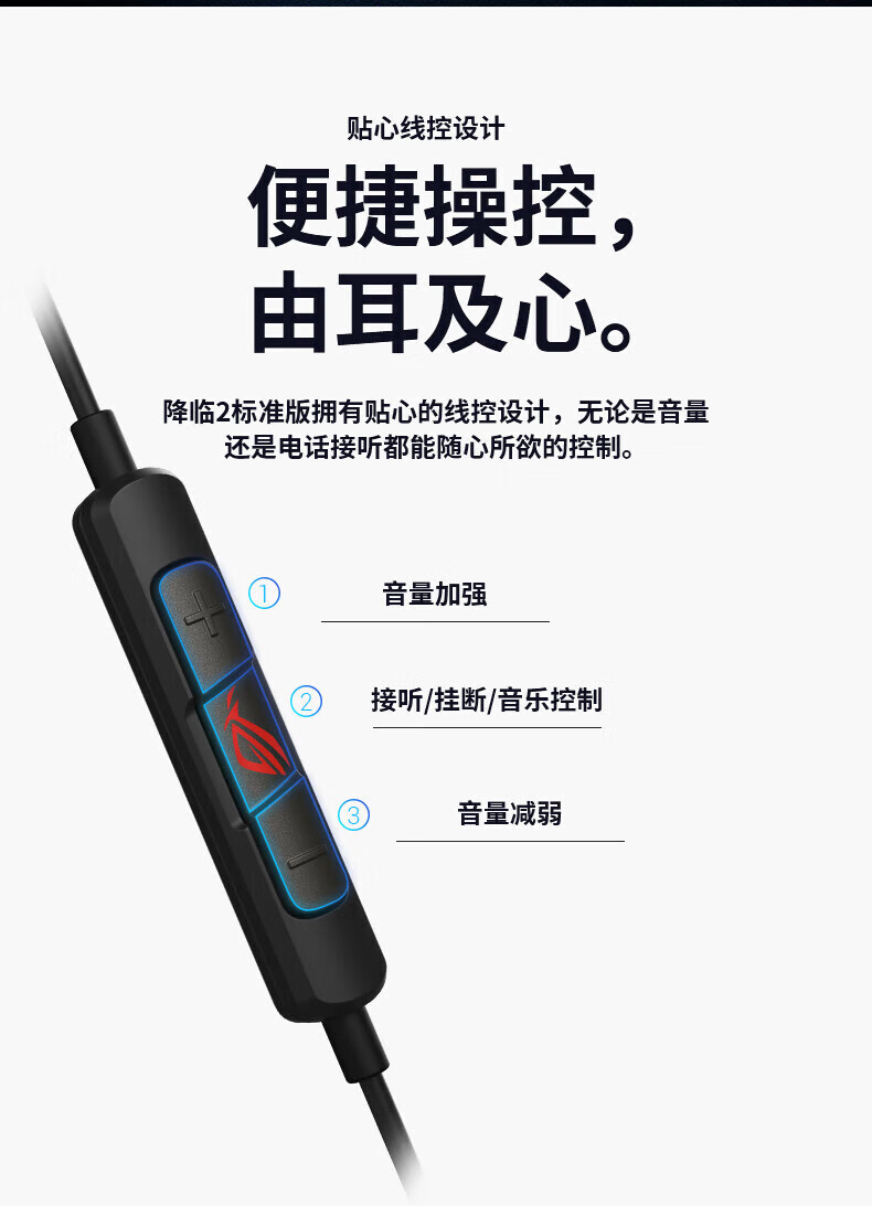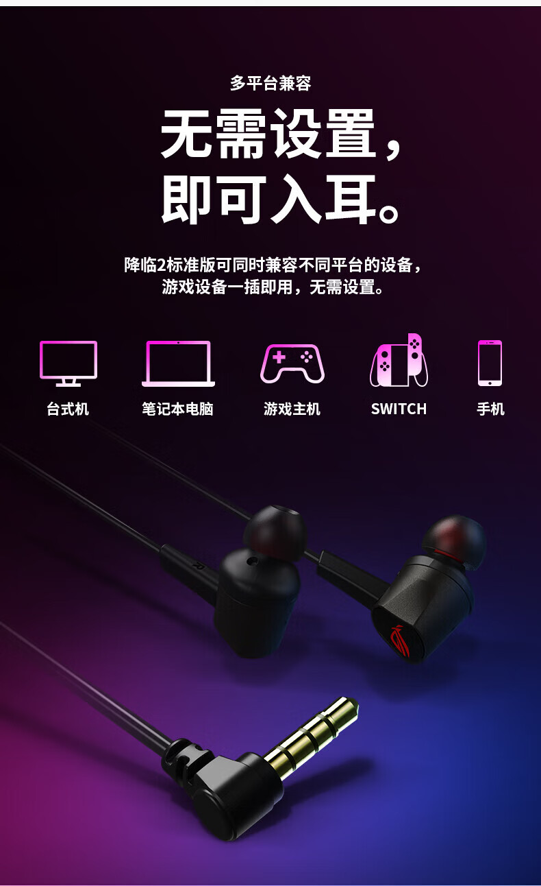 ROG玩家国度 降临 入耳式耳机 电脑手机电竞游戏运动有线耳机耳麦 ps5 xbox耳机 降临2 标准版 3.5mm【无主动降噪】