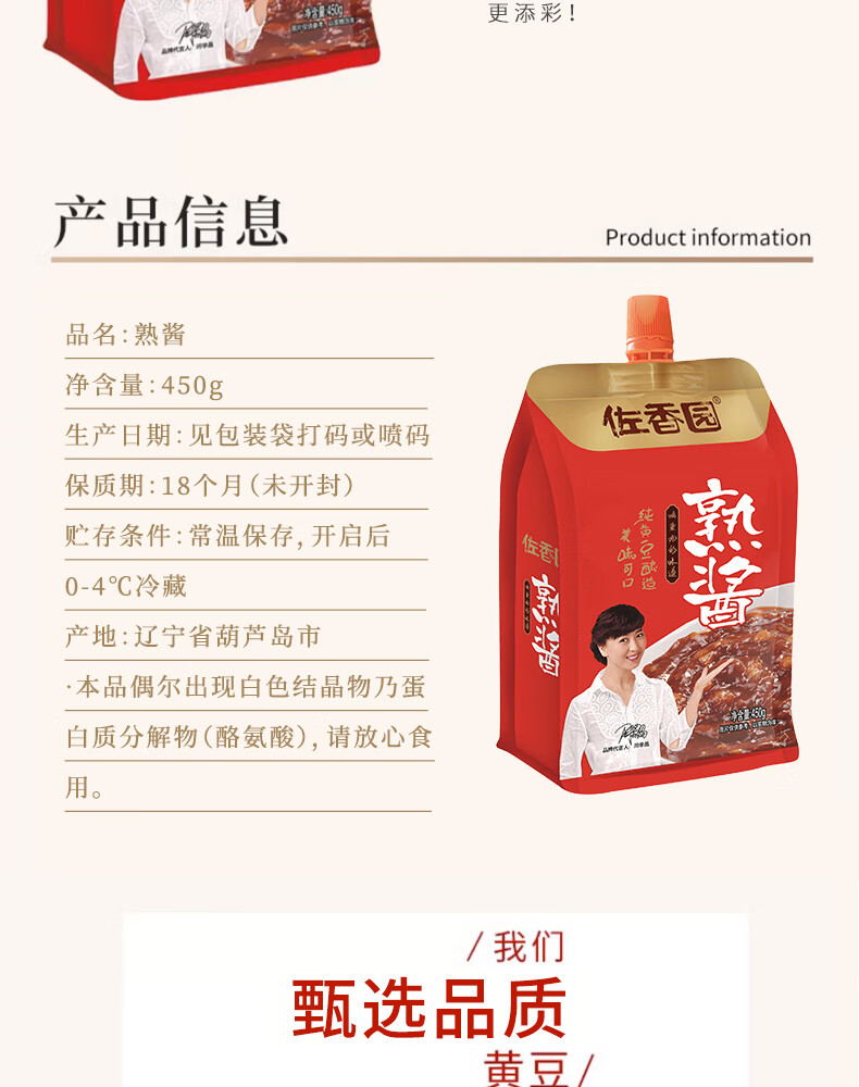 佐香园熟酱450g【黄豆酱】点蘸拌面酱 豆瓣酱 即食拌面下饭酱 东北大酱