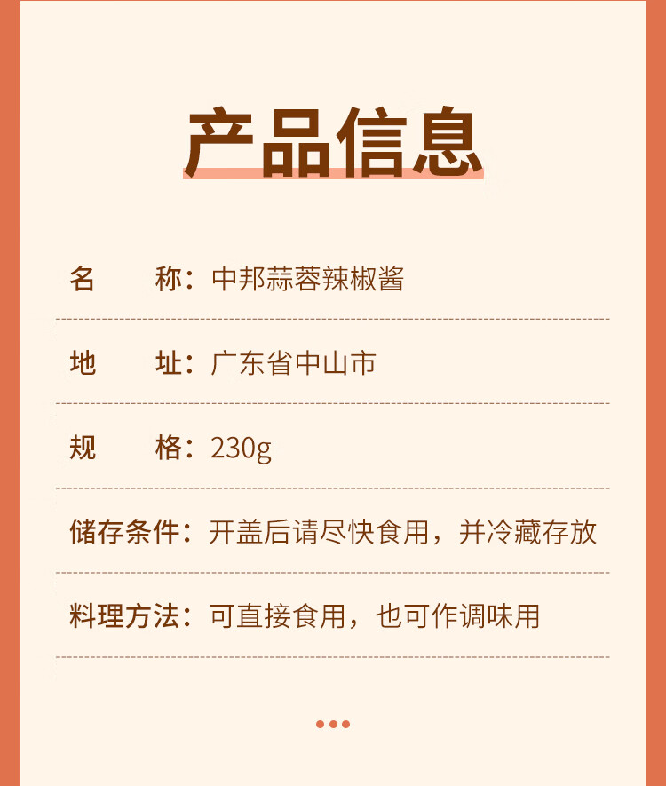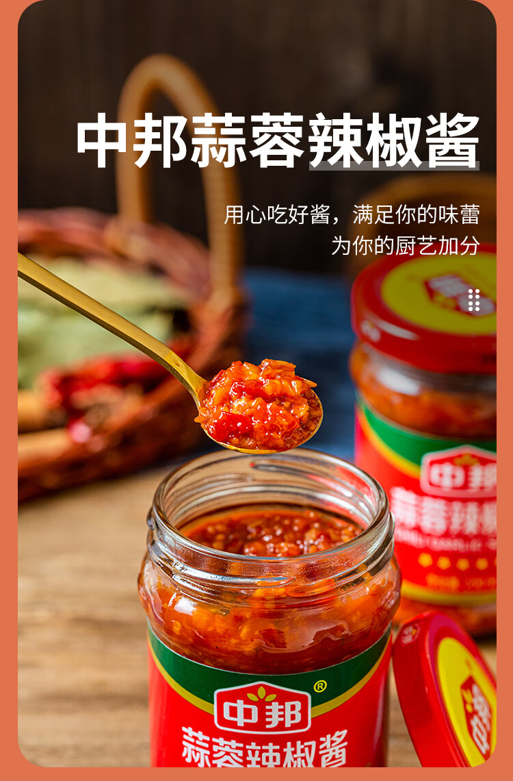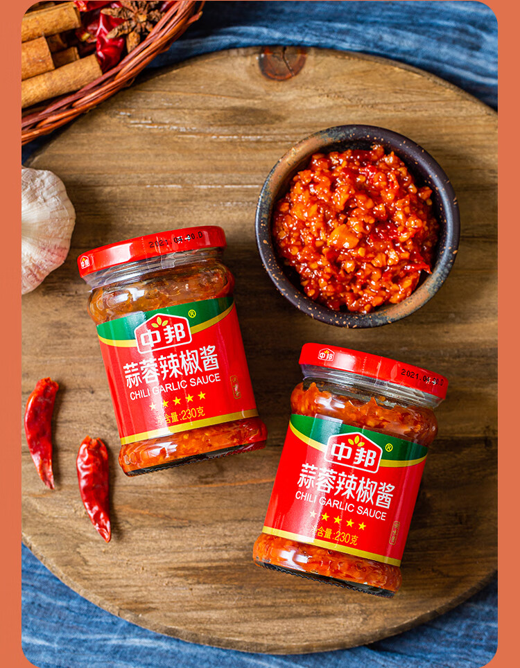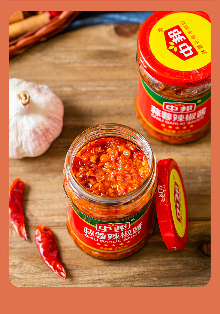 中邦 辣椒酱 拌饭拌面酱下饭菜剁椒调味酱料蒜蓉辣椒酱230g