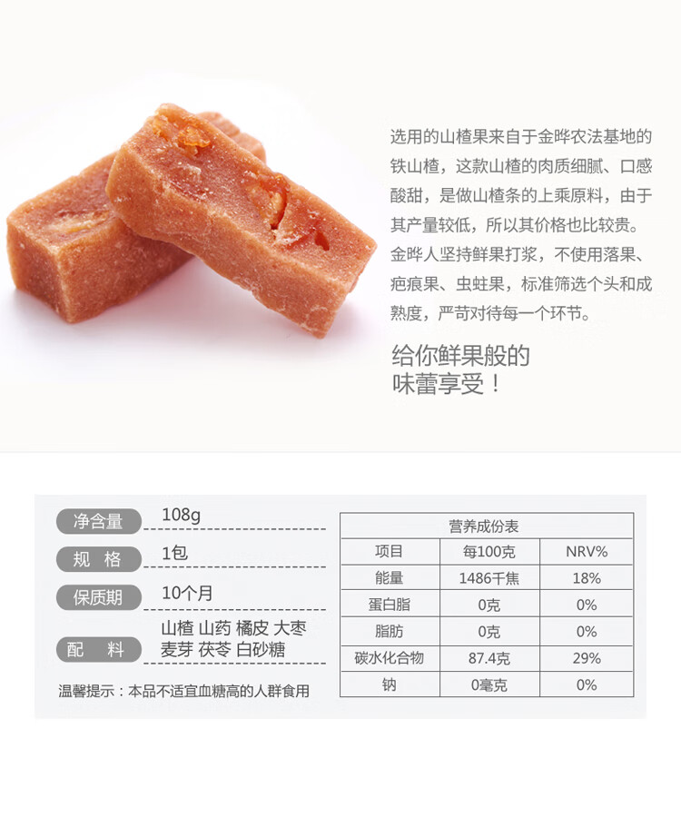 金晔休闲零食蜜饯果脯儿童原汁原味六物山楂条108g*3袋【临期清仓】