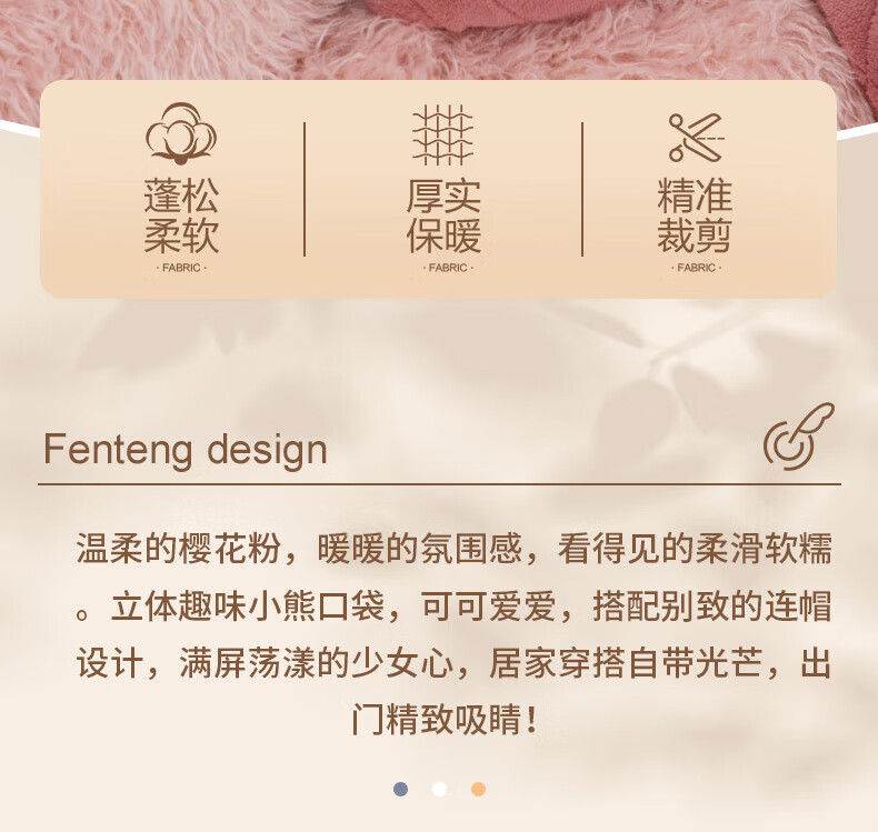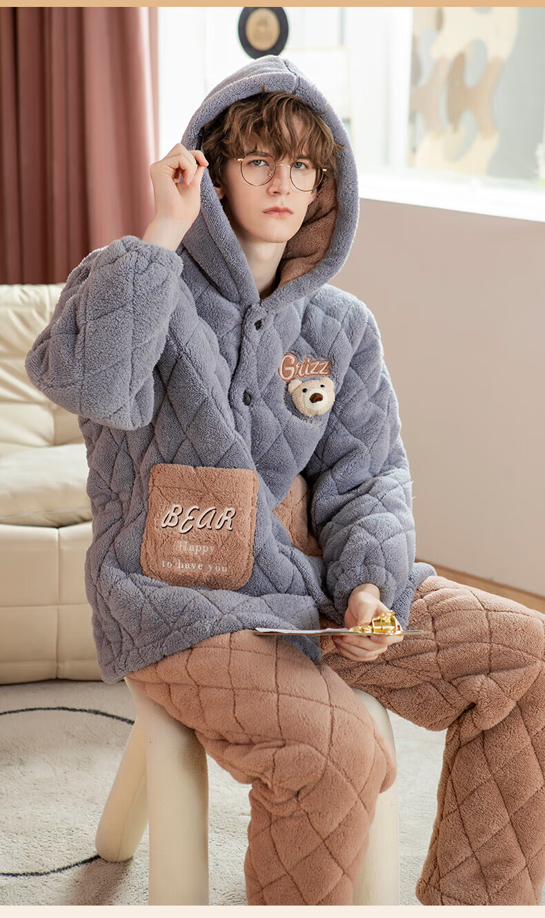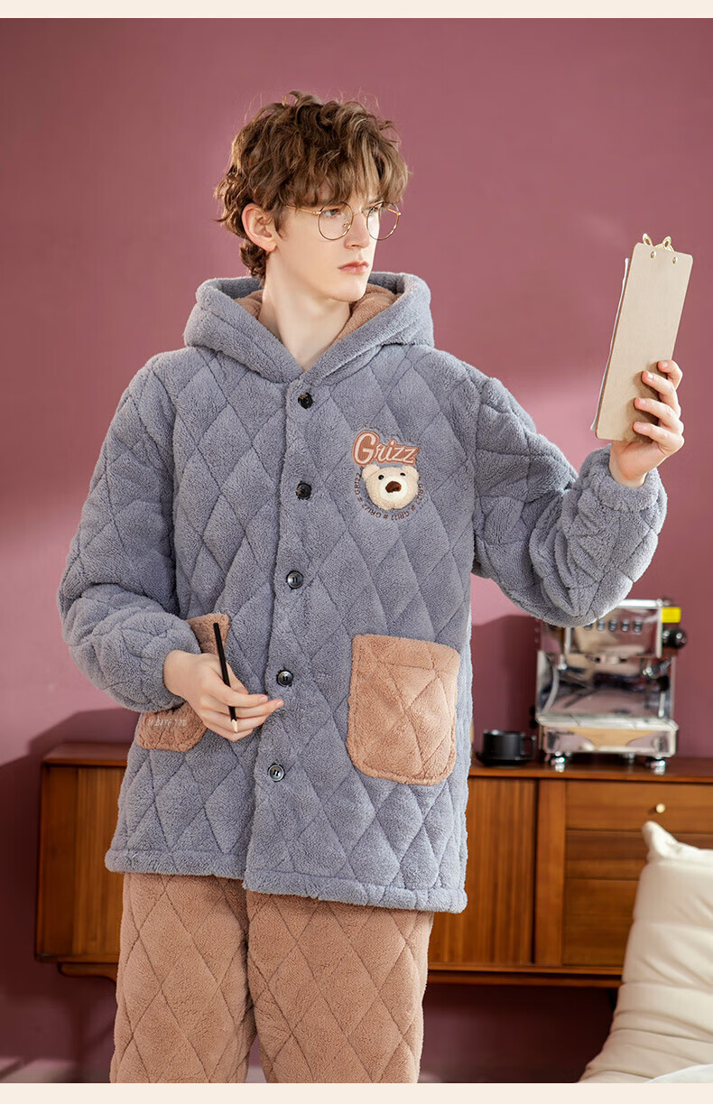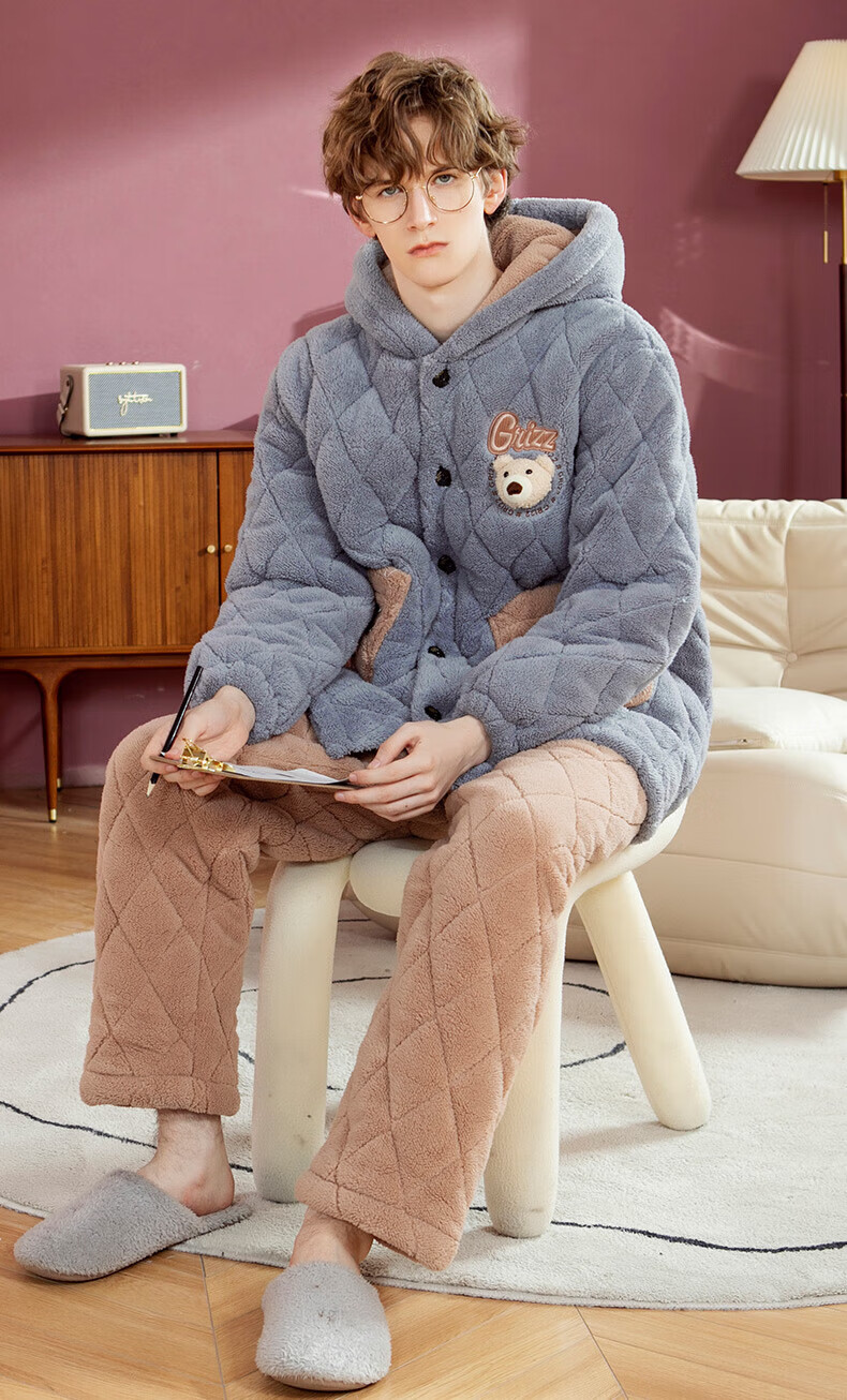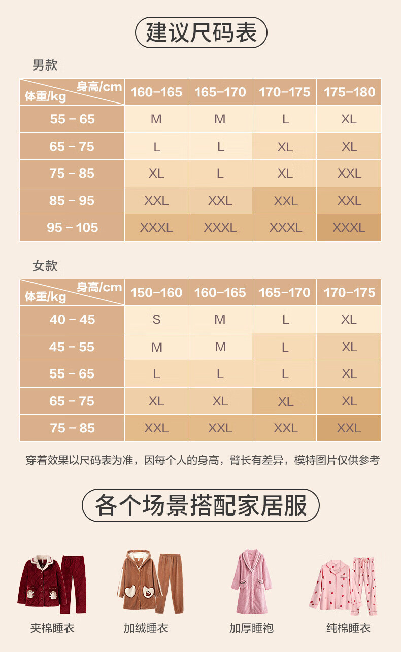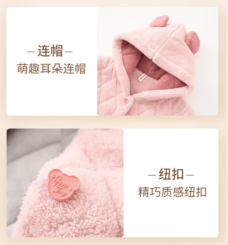 芬腾情侣睡衣冬季长袖新款三层夹棉加厚珊瑚绒家居服套装 樱花粉(女) S