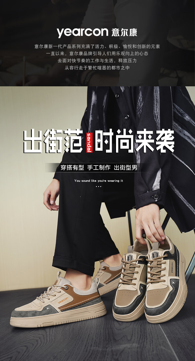 意尔康男鞋秋季新款复古潮流板鞋户外街头休闲男鞋撞色经典搭配鞋子男