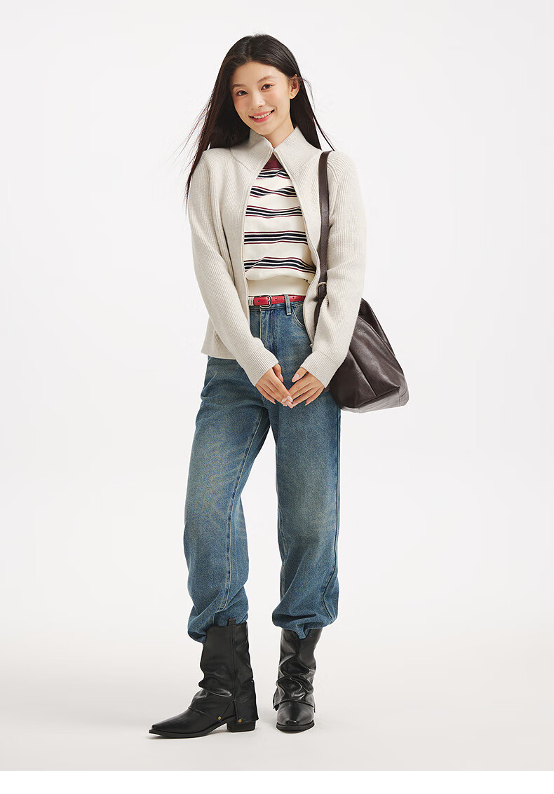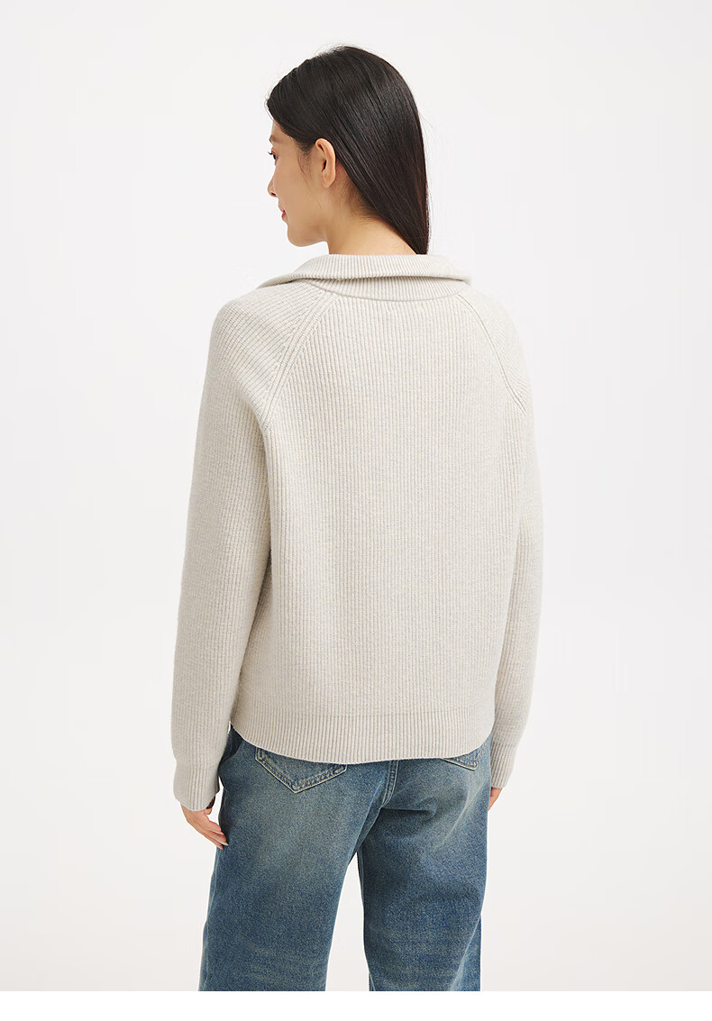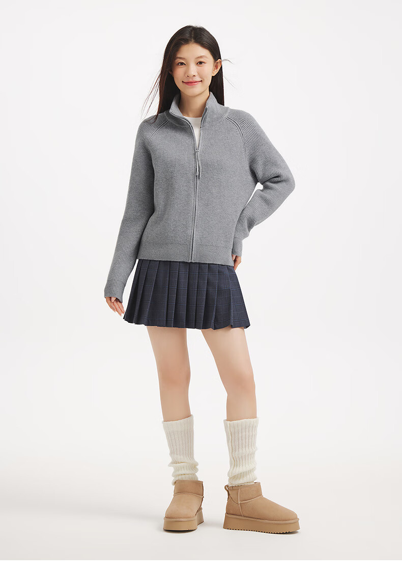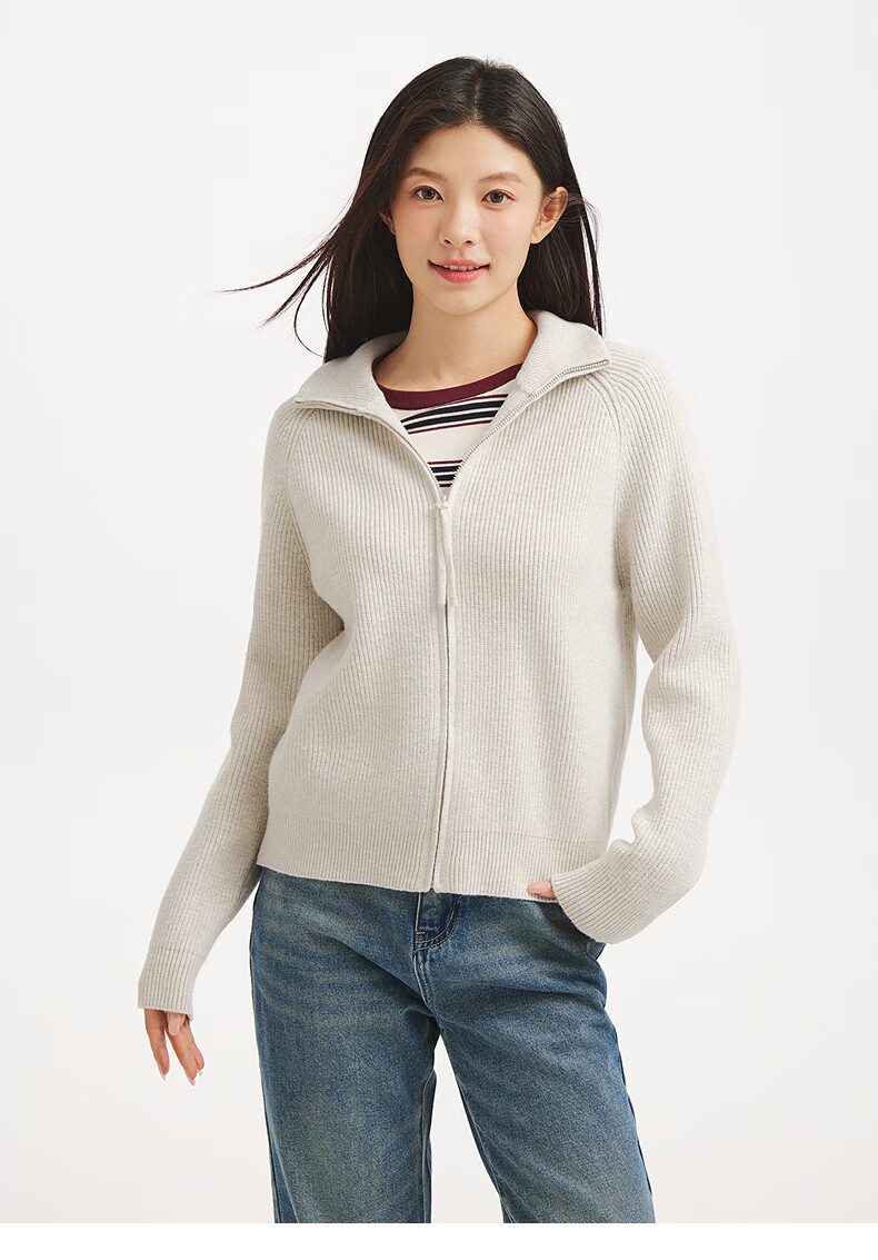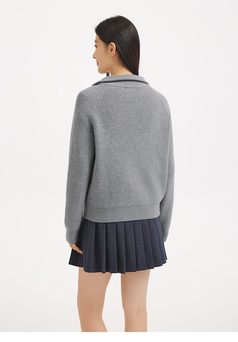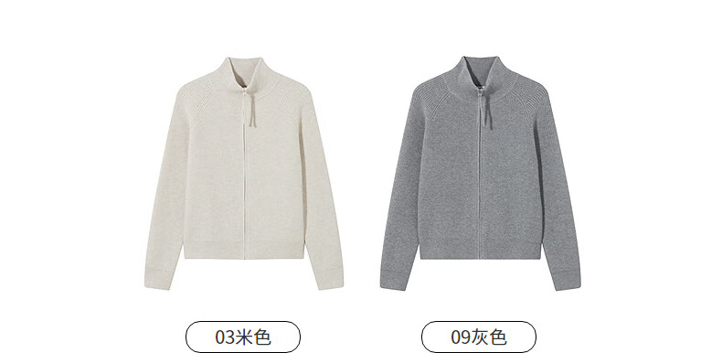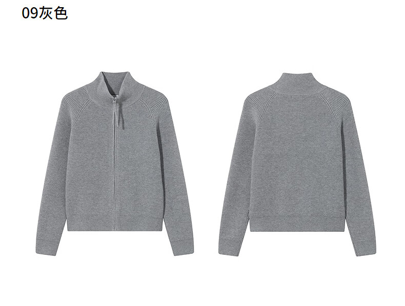 热风2025年冬季新款女士翻领针织开衫 09灰色 XL