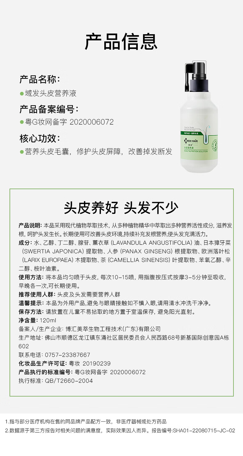 域发 头皮营养液60ml 腺苷头皮精华头皮护理滋养头发掉发际线营养水