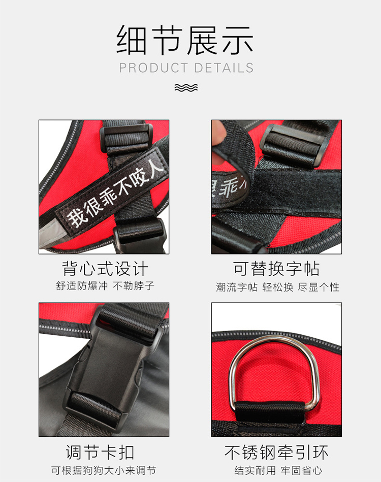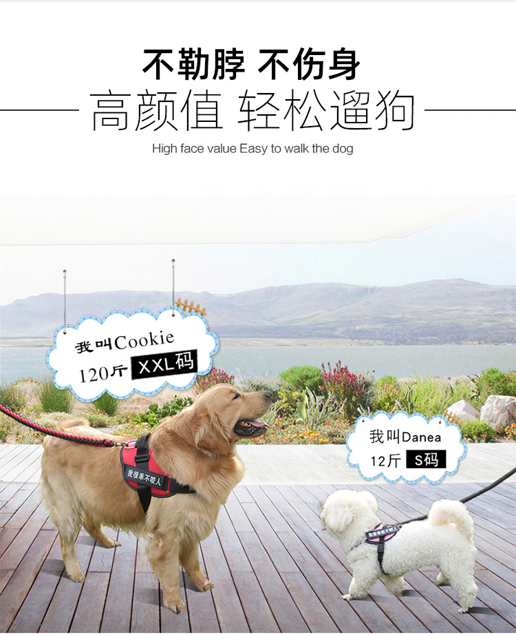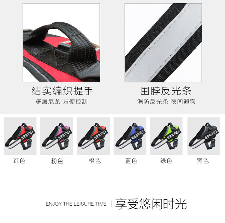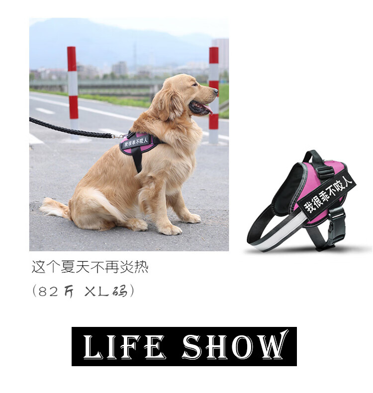 索米拉(Suomila)狗狗胸背带狗绳牵引绳套装反光条防爆冲背心式金毛中大型犬L黑
