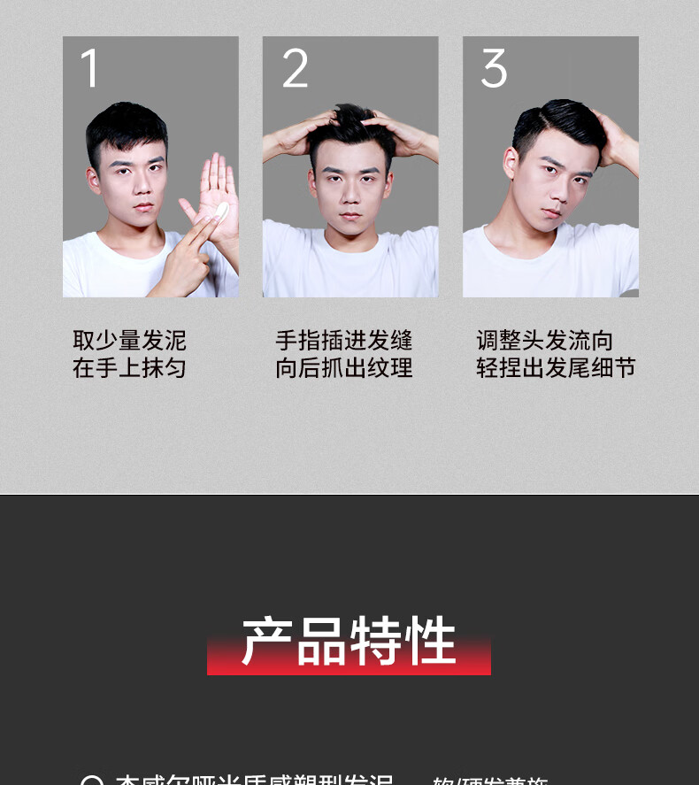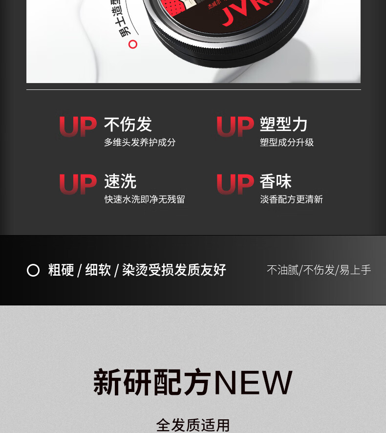 杰威尔哑光质感塑型发泥 蓬松自然定型发膏发蜡发胶清爽持久造型男士80g