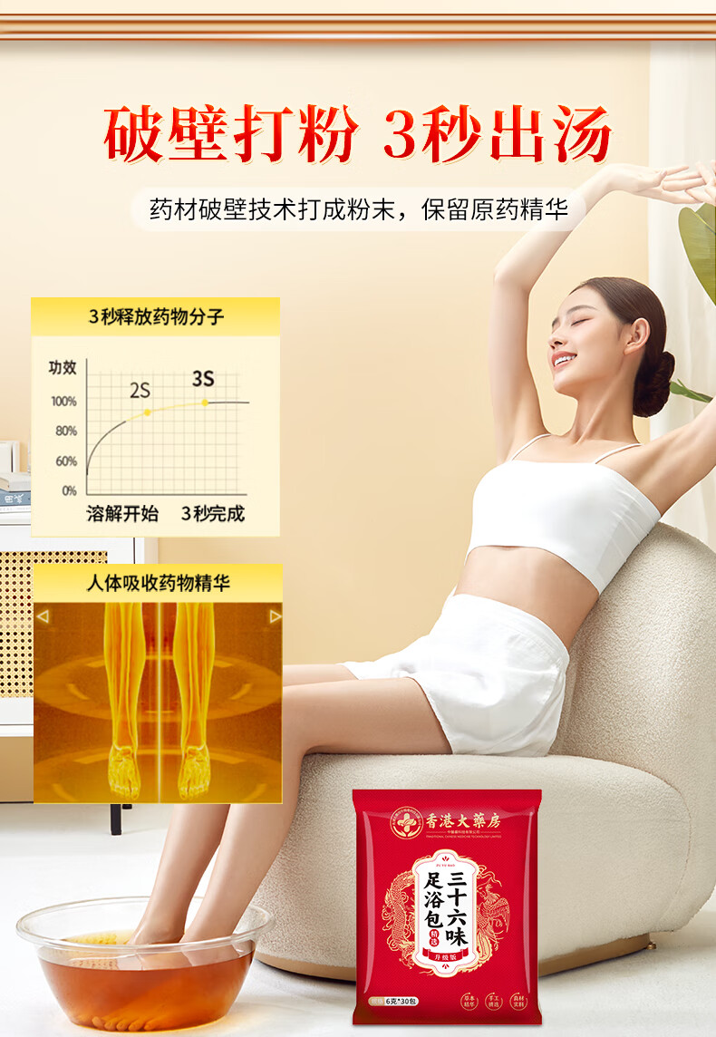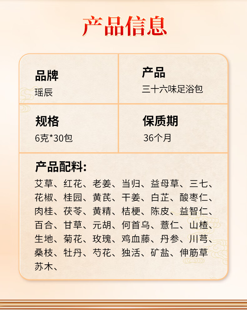 瑶辰三十六味足浴包泡脚药包祛湿排汗暖手暖足泡浴包6g*30包