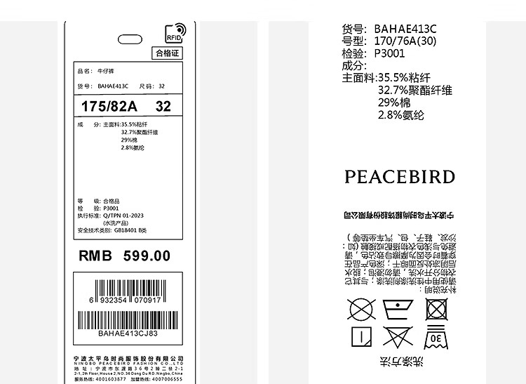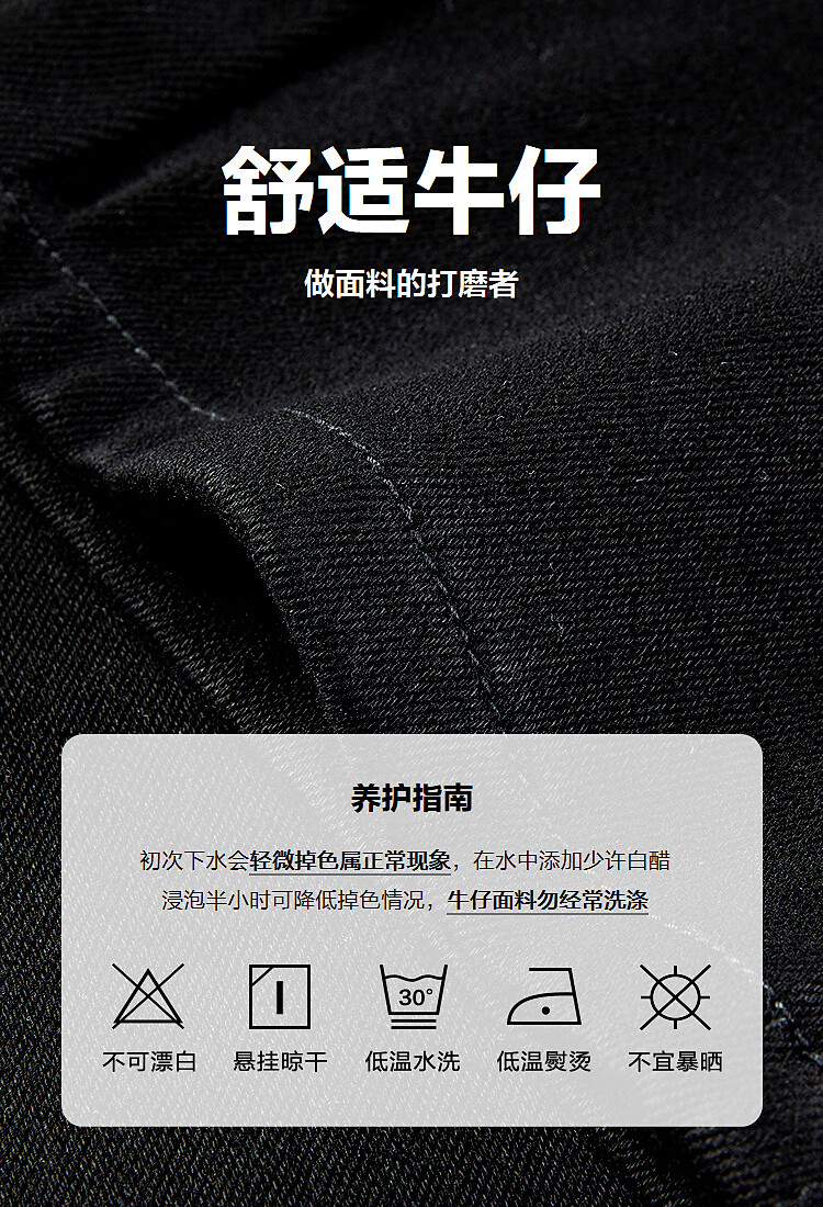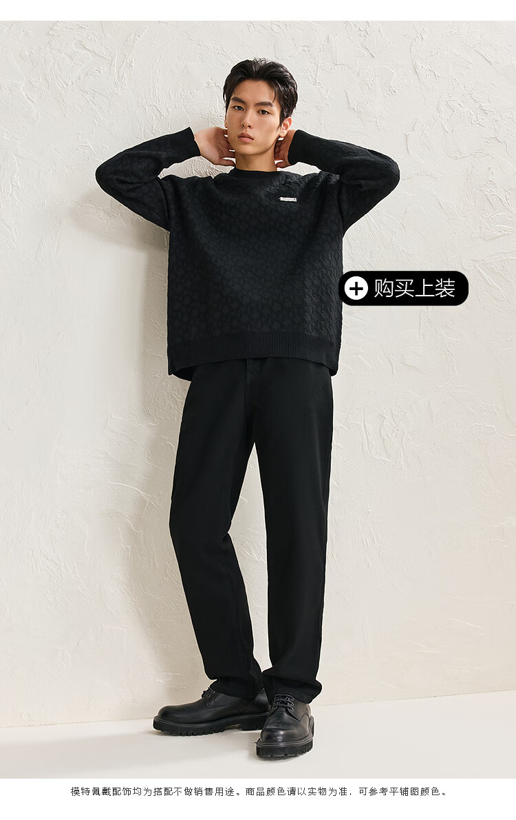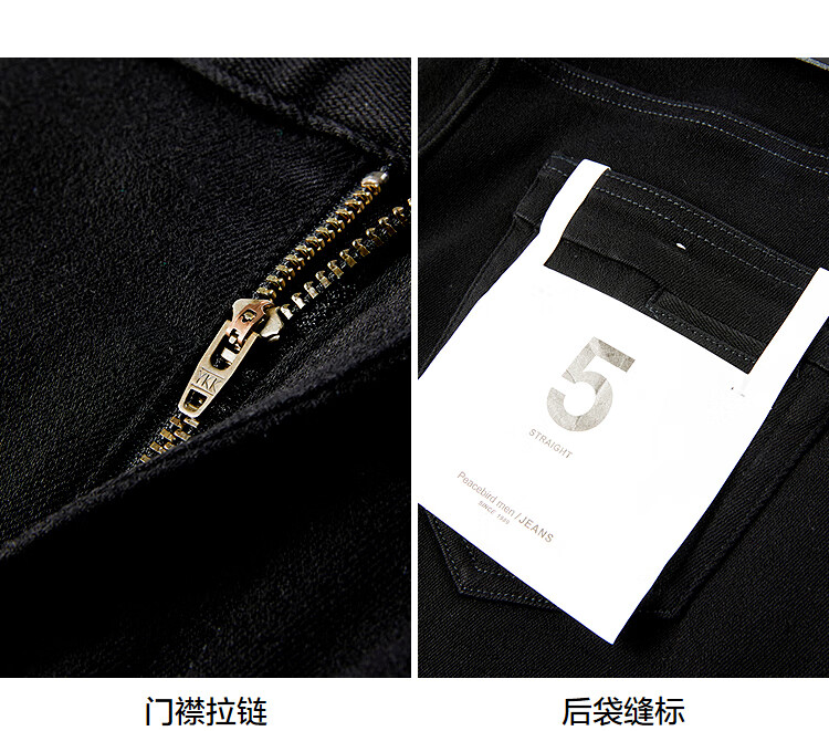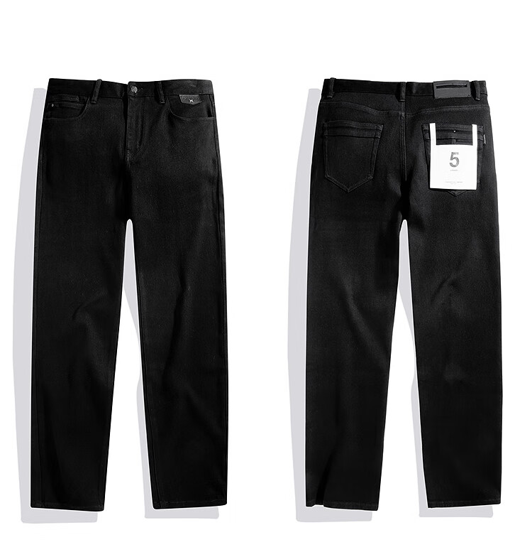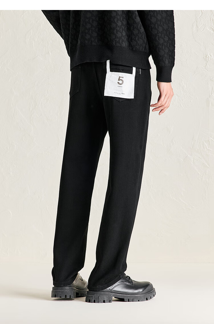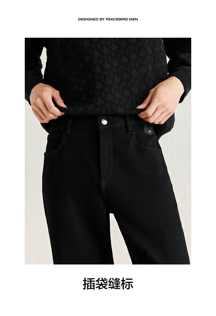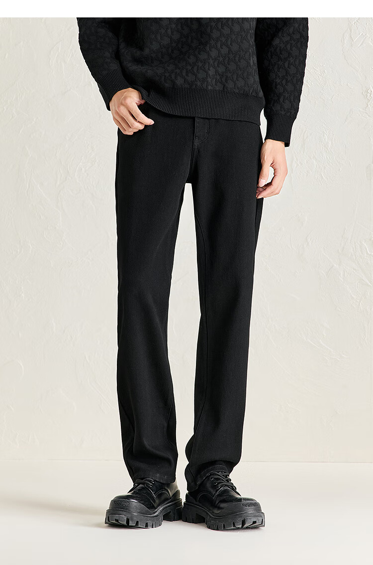 太平鸟男装牛仔裤冬季修身收脚水洗保暖牛仔裤潮休闲 黑色1 32