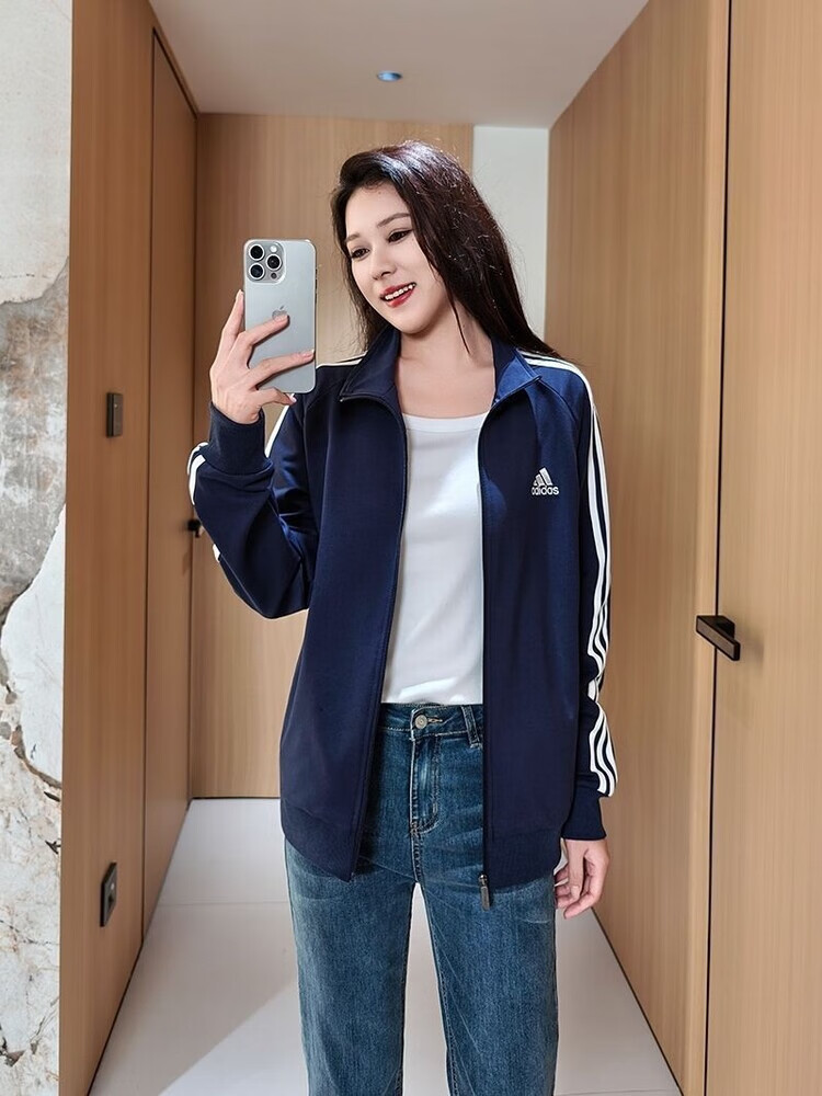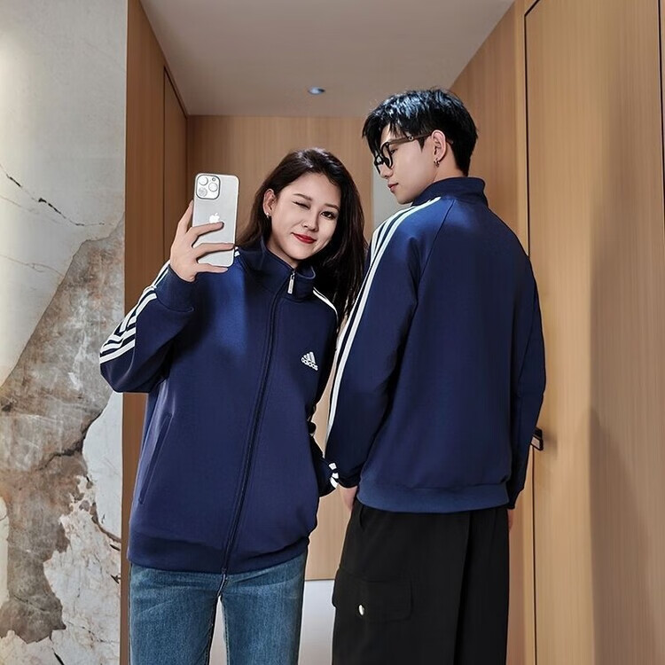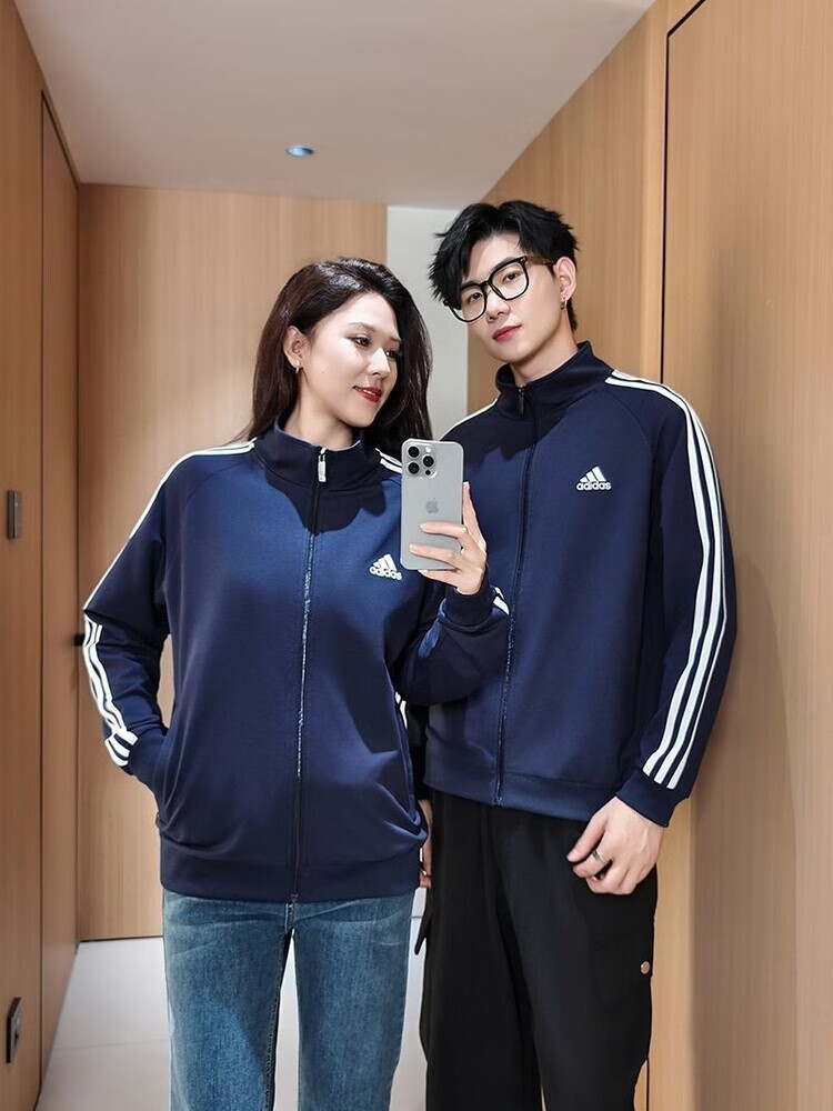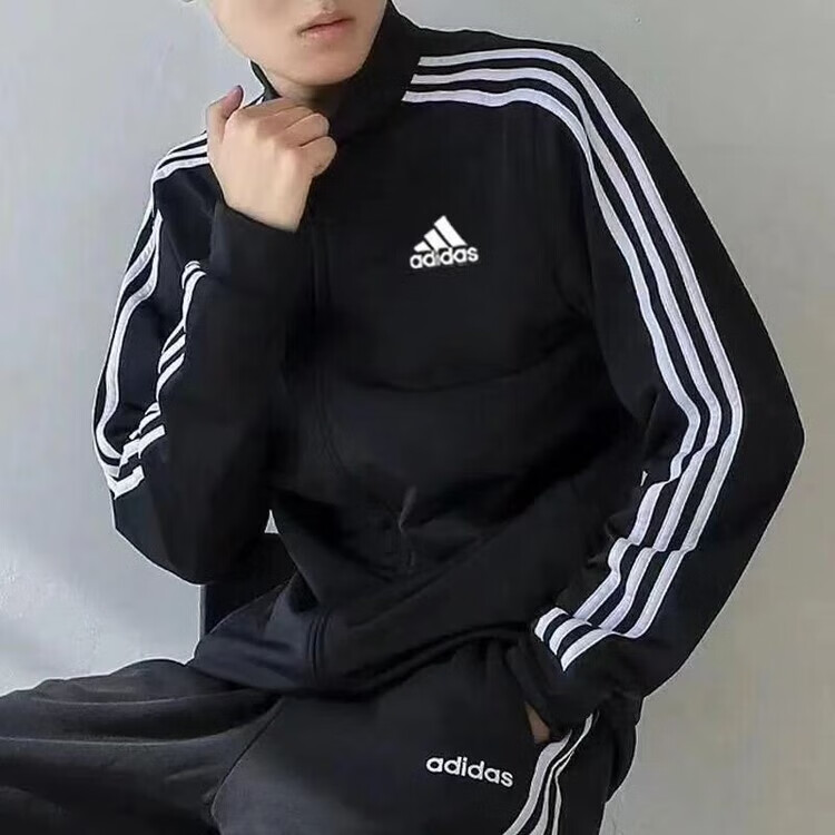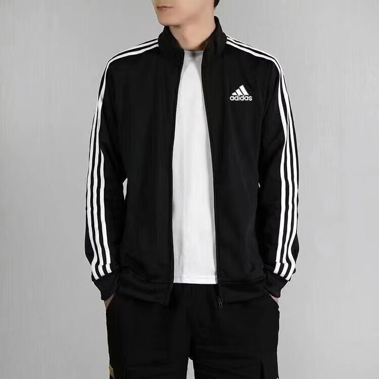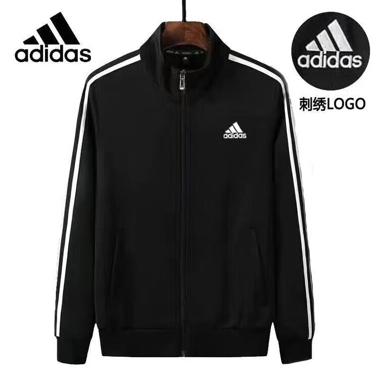 ADIDAS TECHFIT阿迪达斯春秋宽松男女运动三叶草外套立领开衫休闲运动服刺绣外穿 阿迪达斯黑色阿迪外套 S /160米以下70-90斤