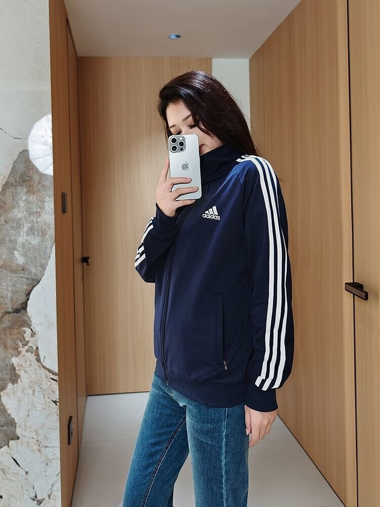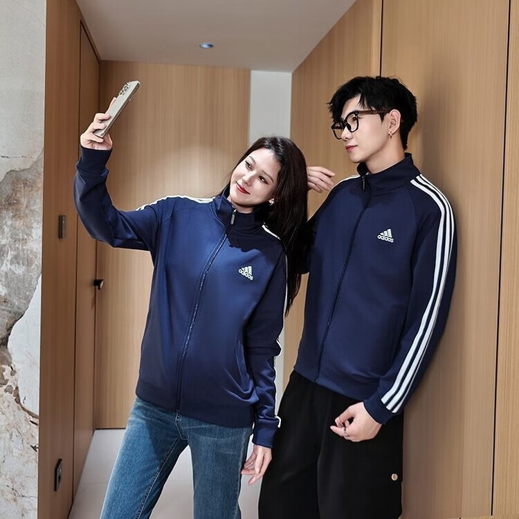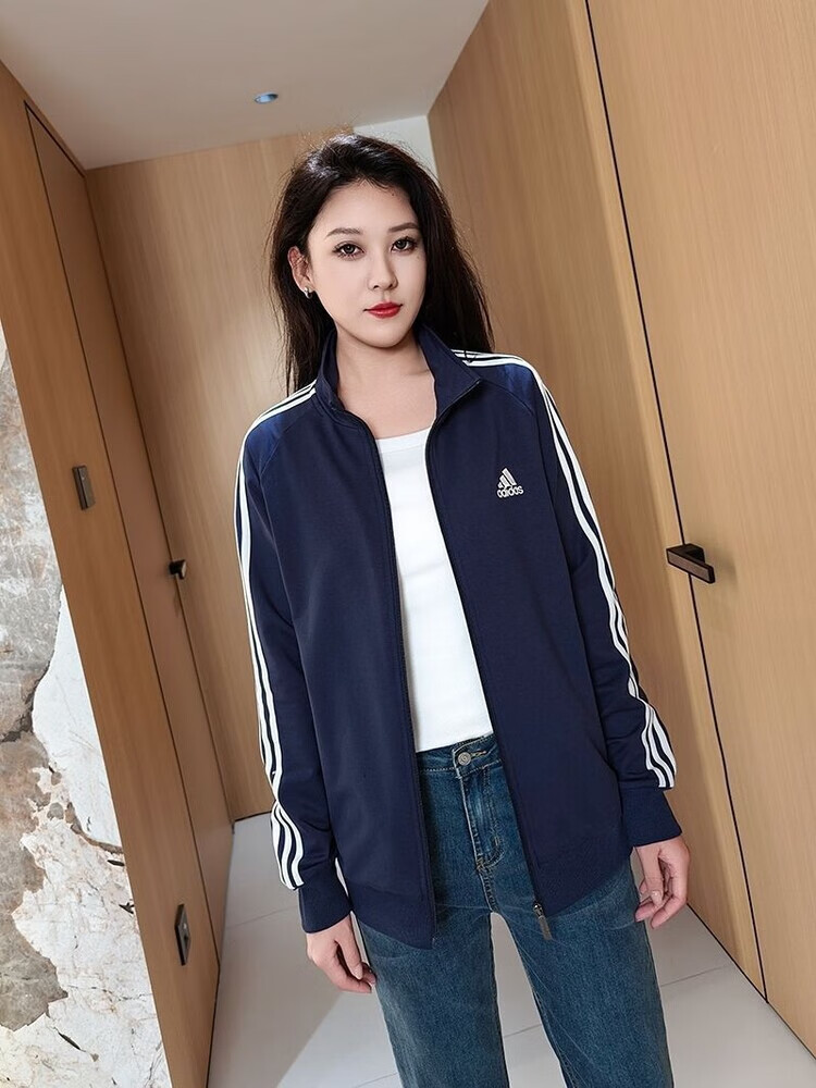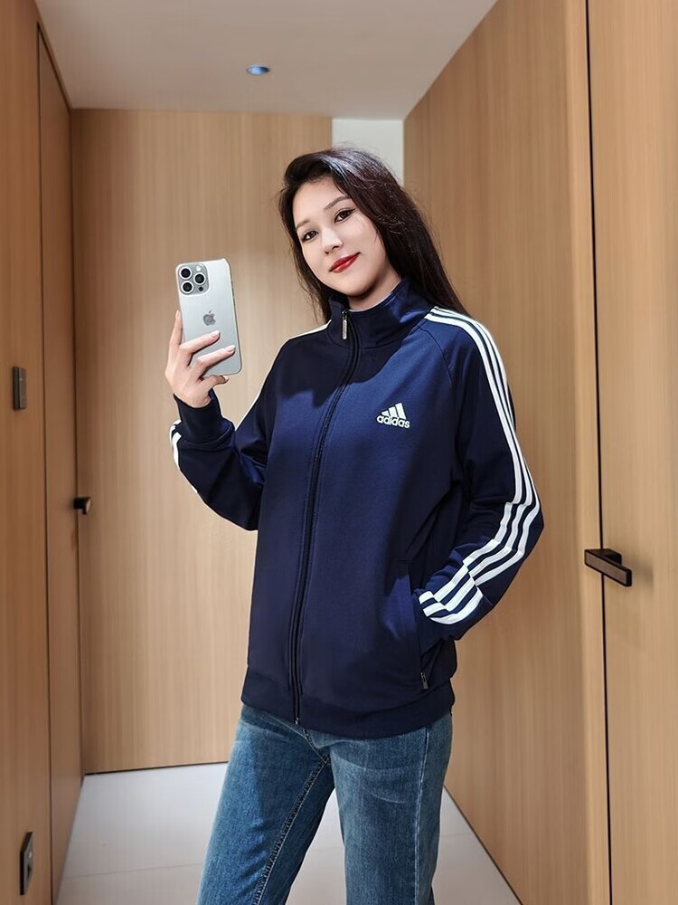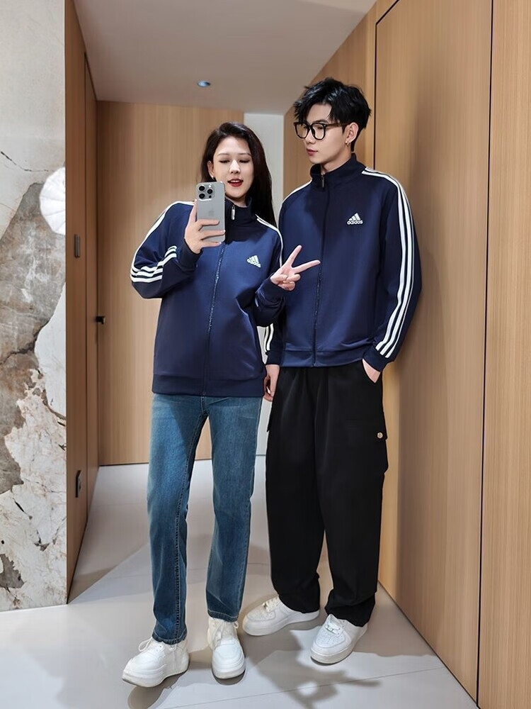 ADIDAS TECHFIT阿迪达斯春秋宽松男女运动三叶草外套立领开衫休闲运动服刺绣外穿 阿迪达斯黑色阿迪外套 S /160米以下70-90斤