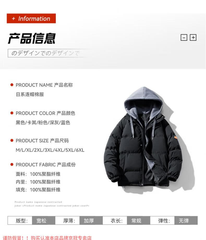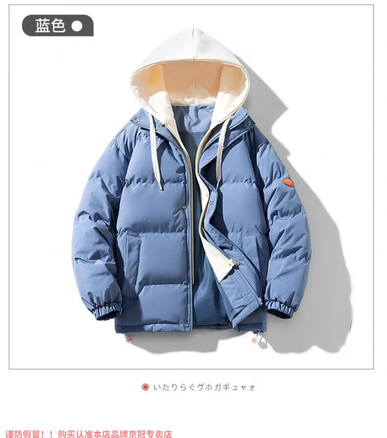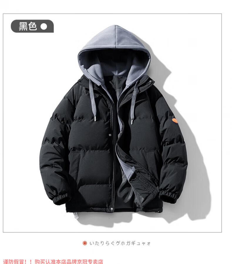 啄木鸟冬季假两件棉衣男士冬装连帽加厚羽绒棉服男款情侣防风棉袄子 假两件】MN至090粉色 M