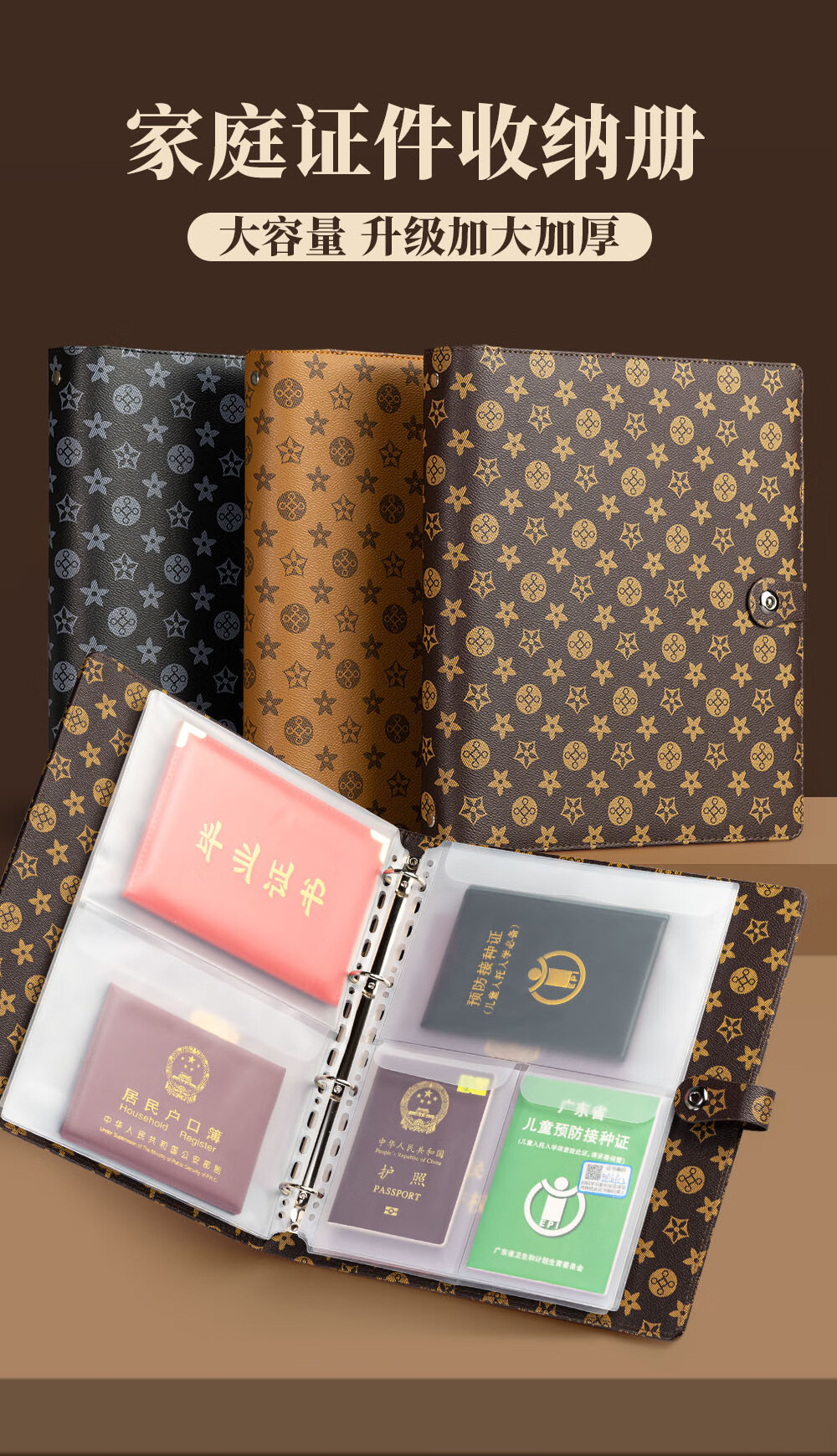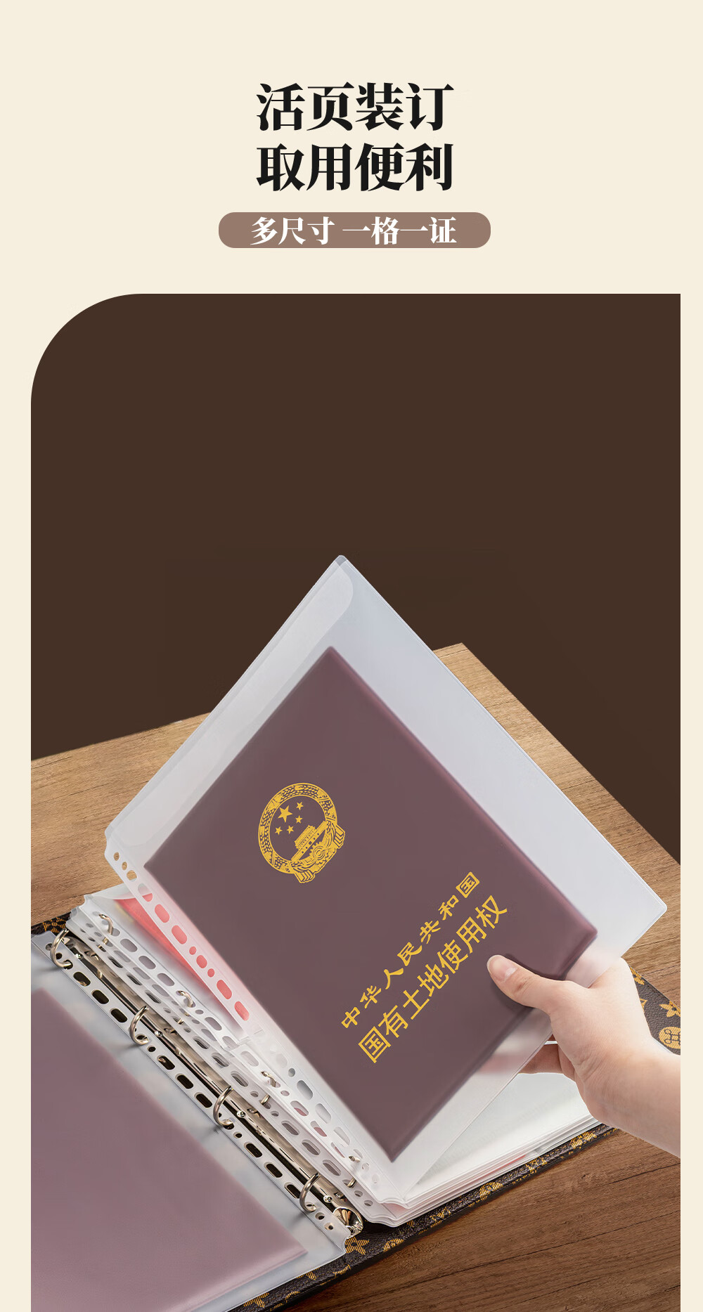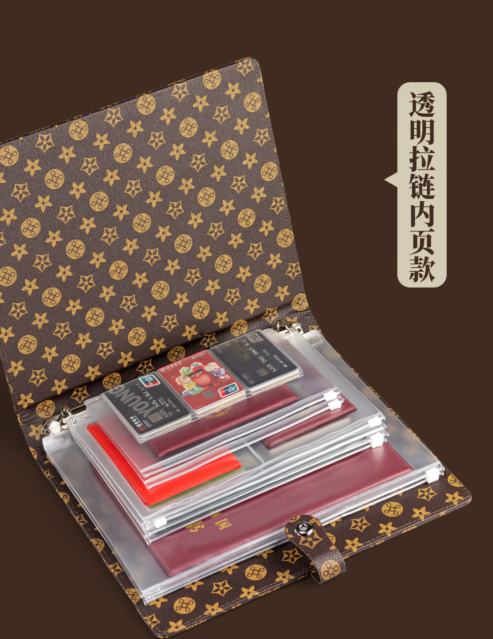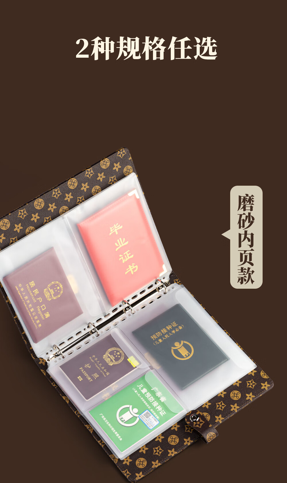 稻草熊证件收纳包家庭证件收纳包资料活页收纳册证书票据重要证件收纳册 咖啡色【内带有拉链】