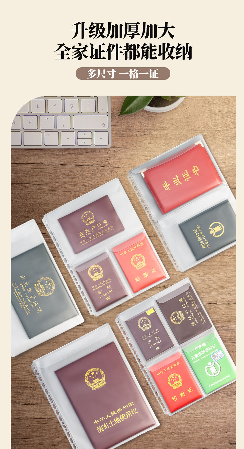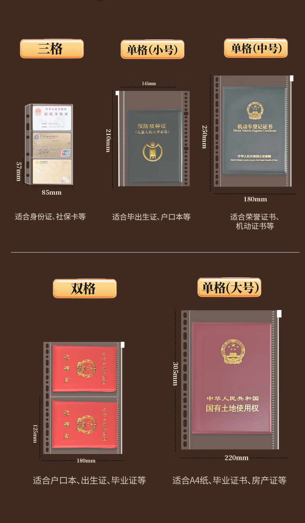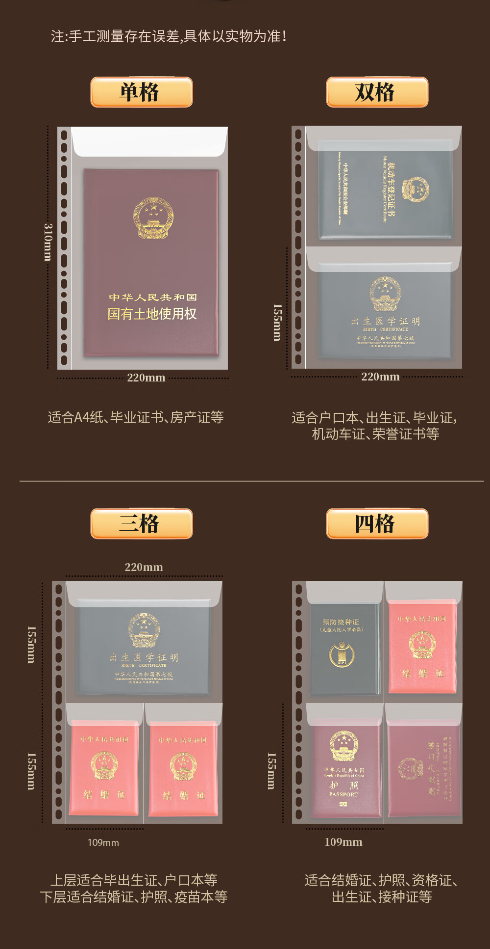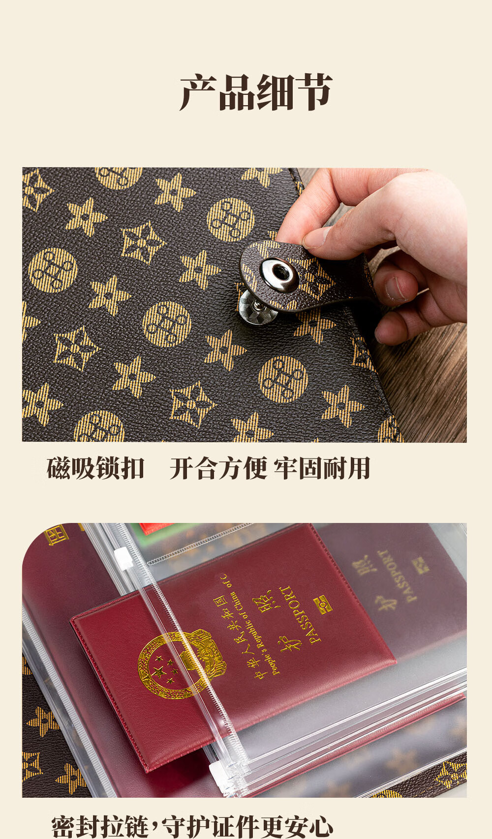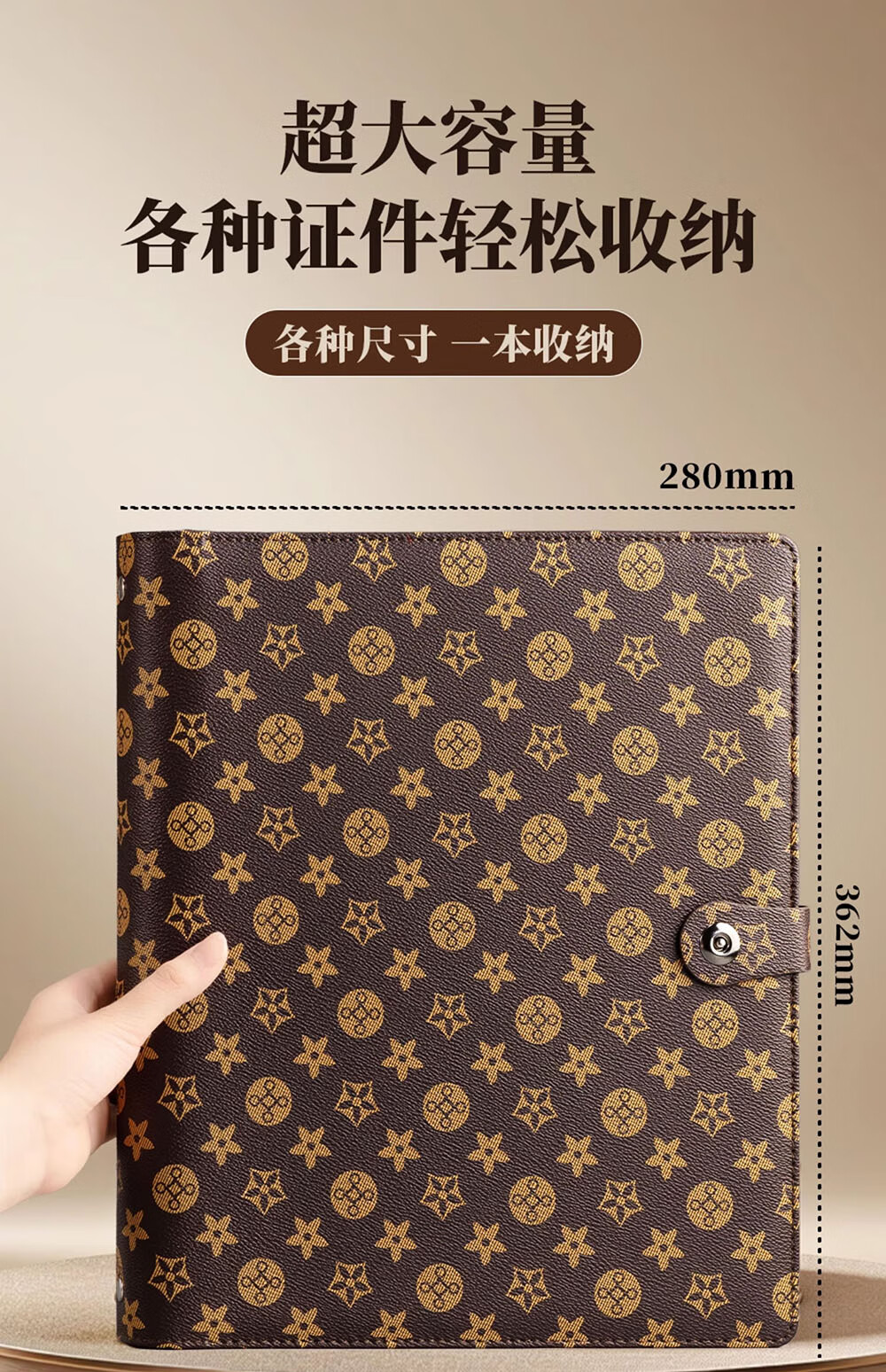 稻草熊证件收纳包家庭证件收纳包资料活页收纳册证书票据重要证件收纳册 咖啡色【内带有拉链】