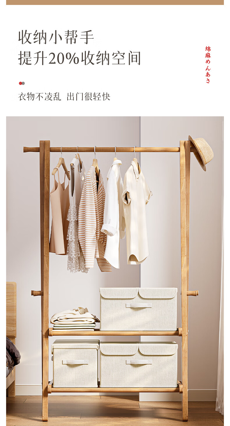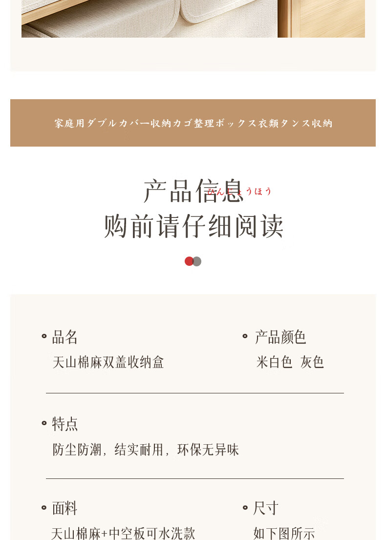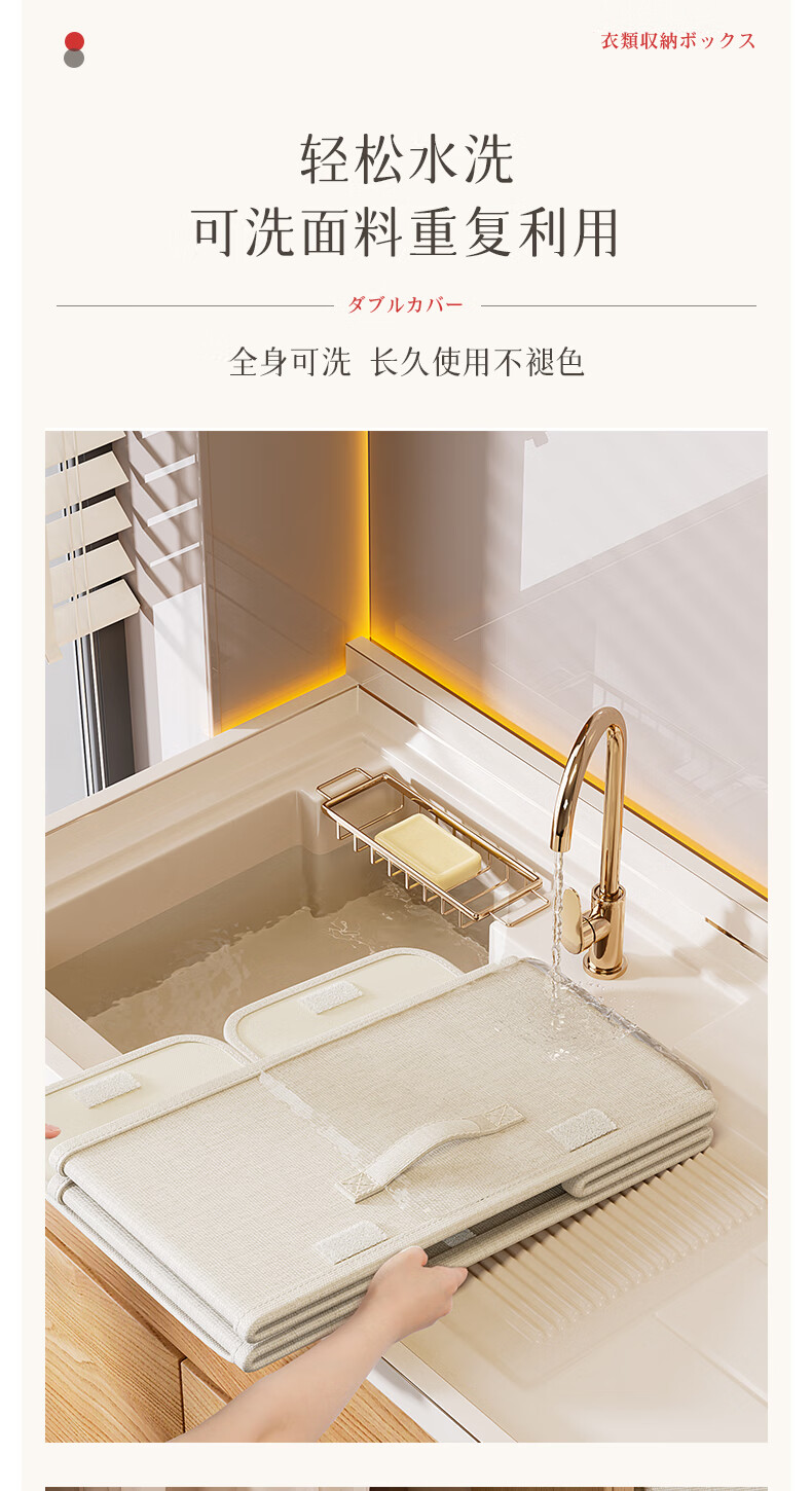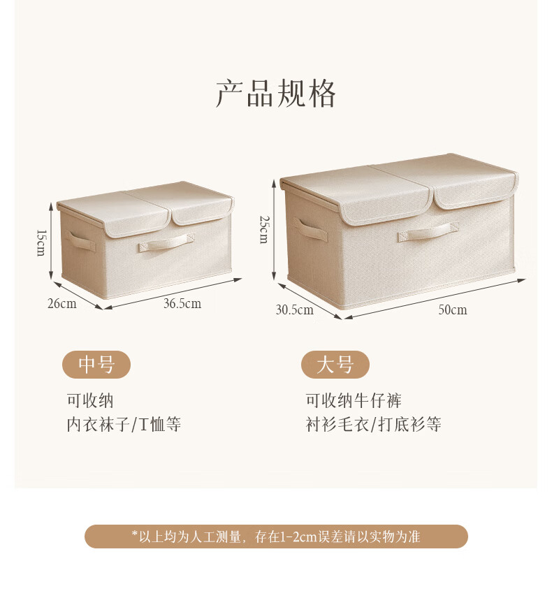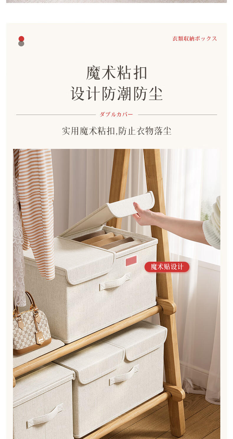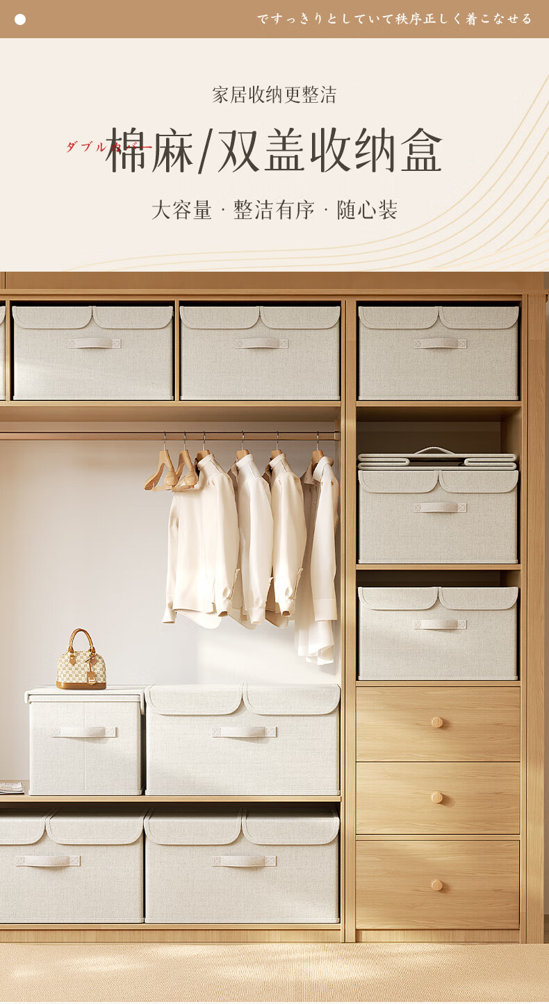 邦尼美家带盖衣物收纳盒天山棉麻衣服裤子双层整理盒衣柜收纳可折叠储物盒 米色-中号【双盖 可水洗】 放心购(甄选天山棉麻材质)