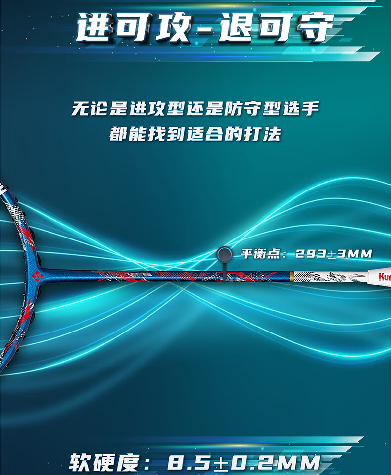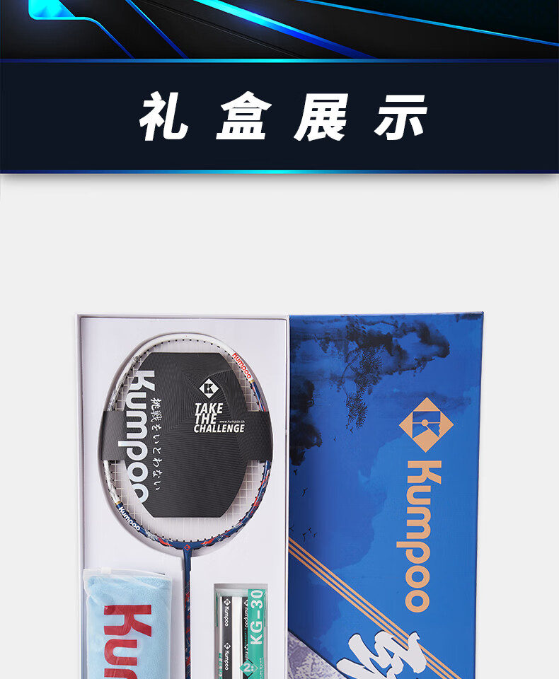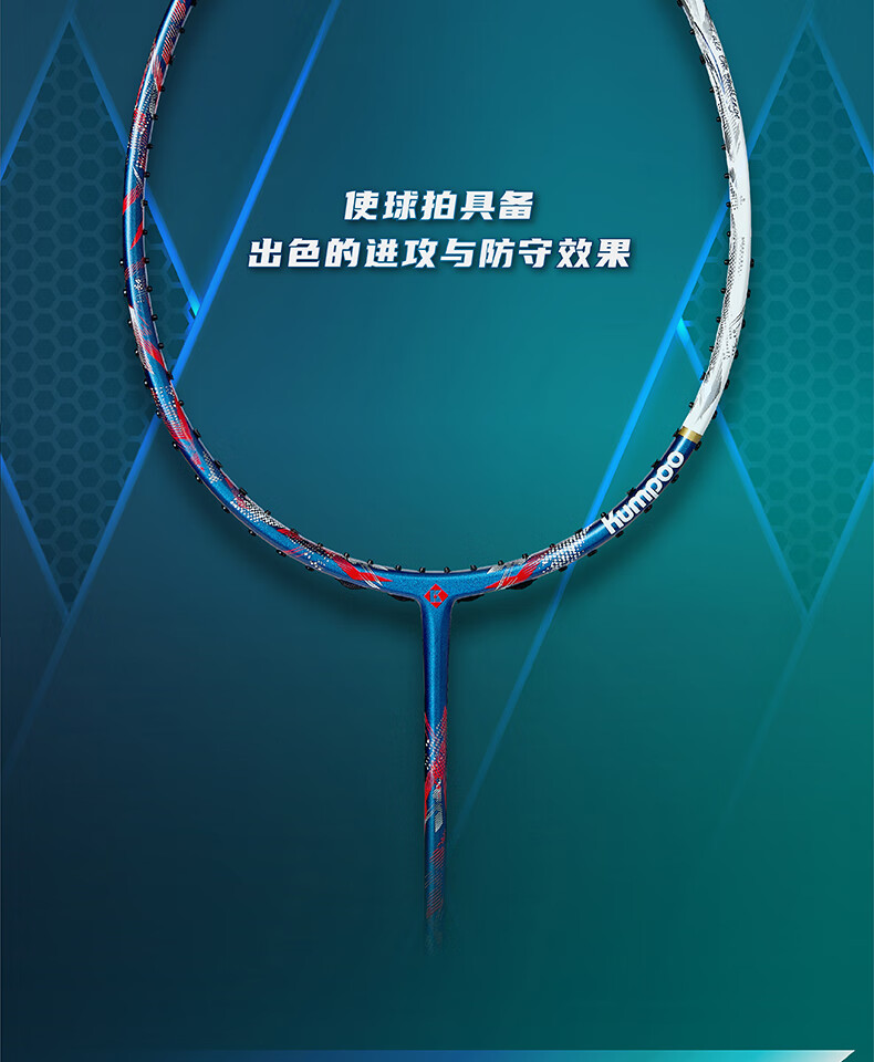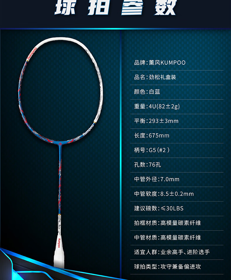 薰风(KUMPOO)羽毛球拍4U全碳素超轻耐打进攻型球拍比赛训练单拍劲松礼盒熏风 劲松礼盒-白蓝 成品拍