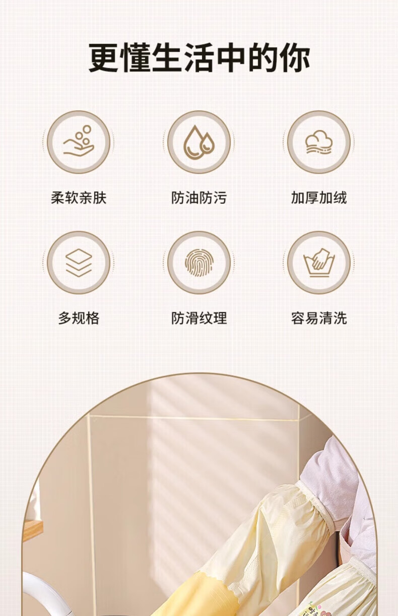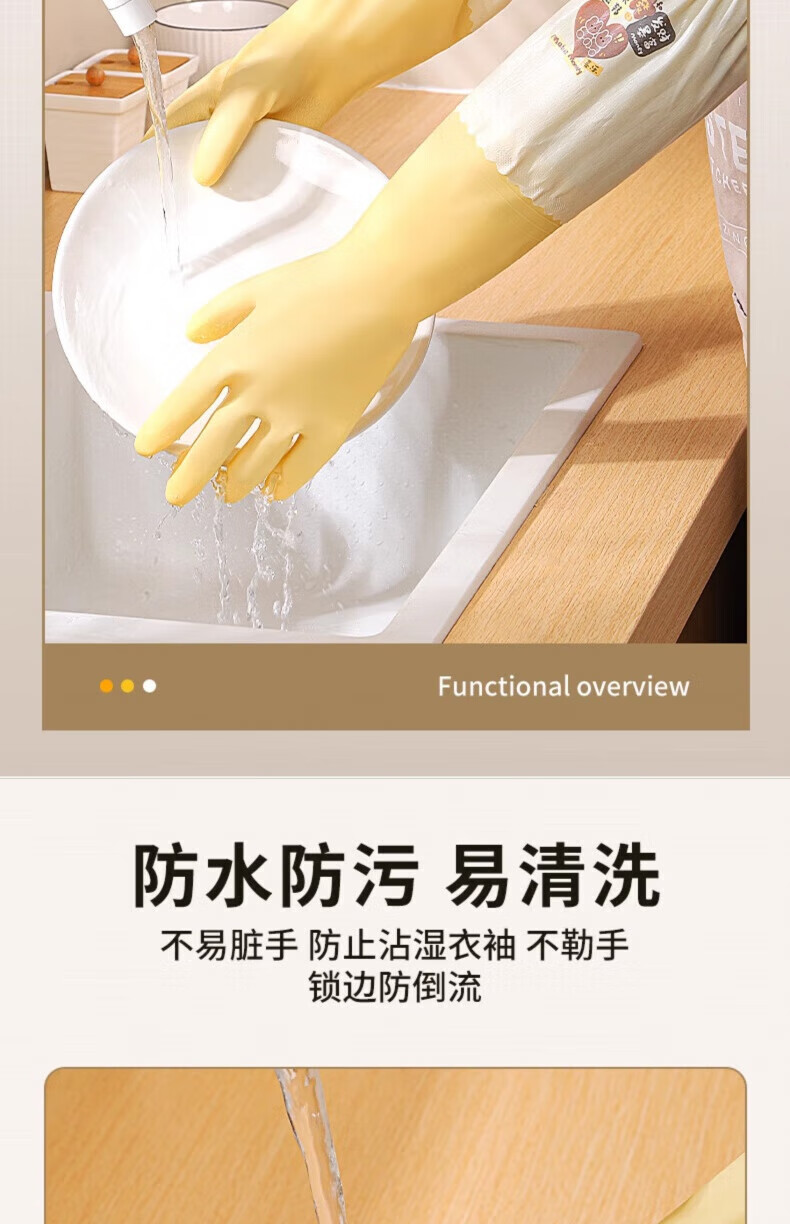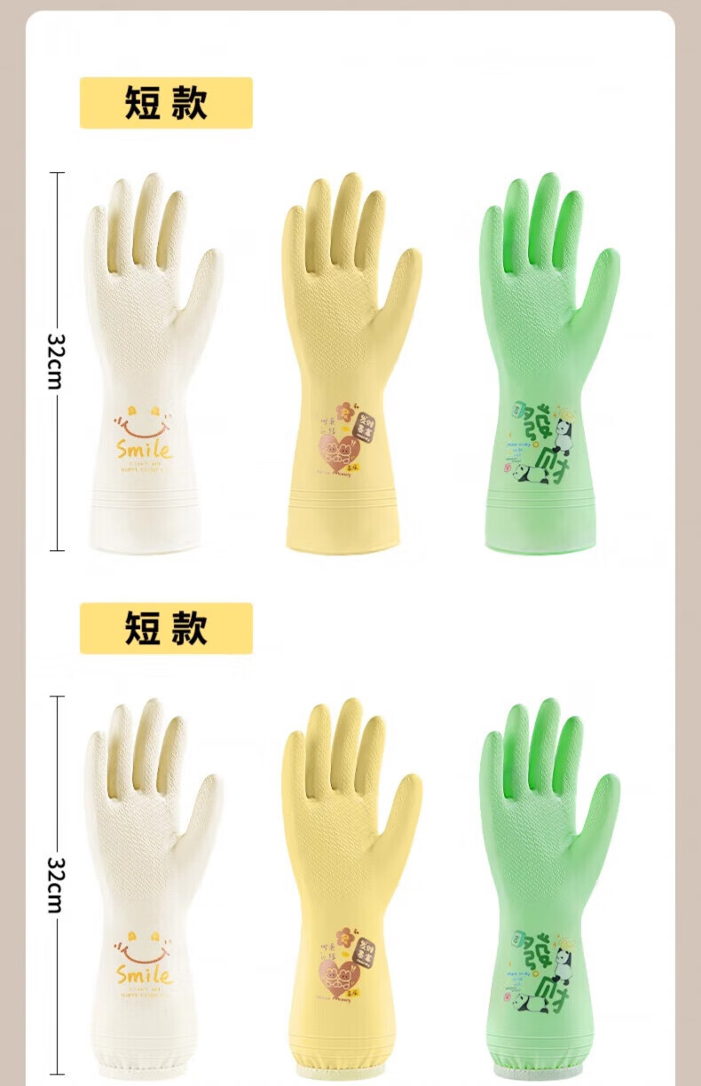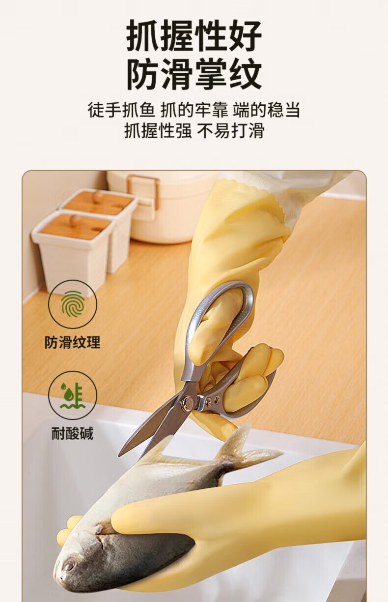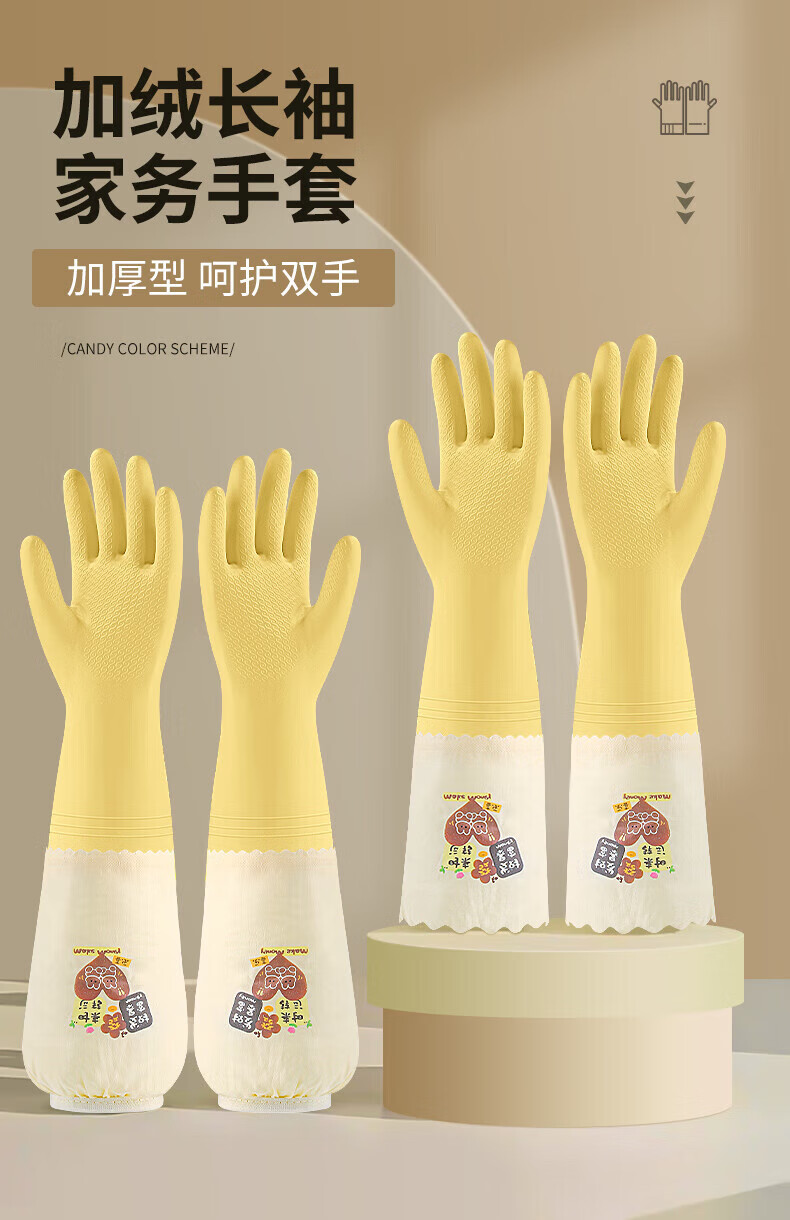 AILUKI日本高端洗碗手套食品级耐用加绒加长防滑神器手耐磨橡胶洗衣服 2双/加绒【奶油白50cm】 均码