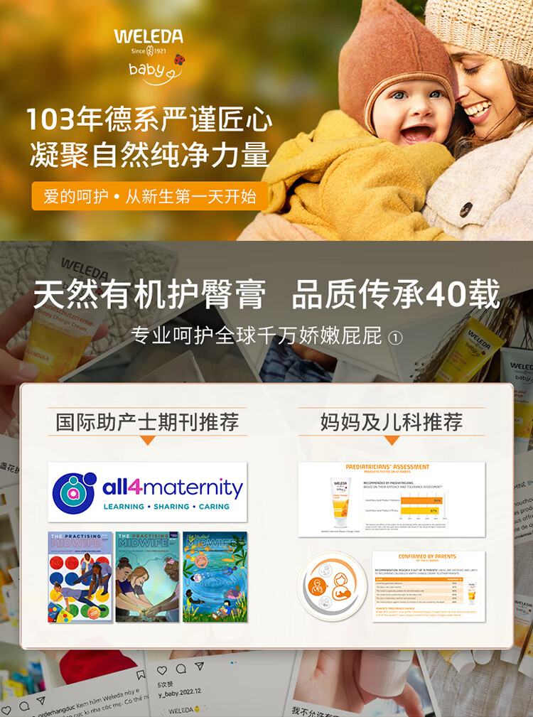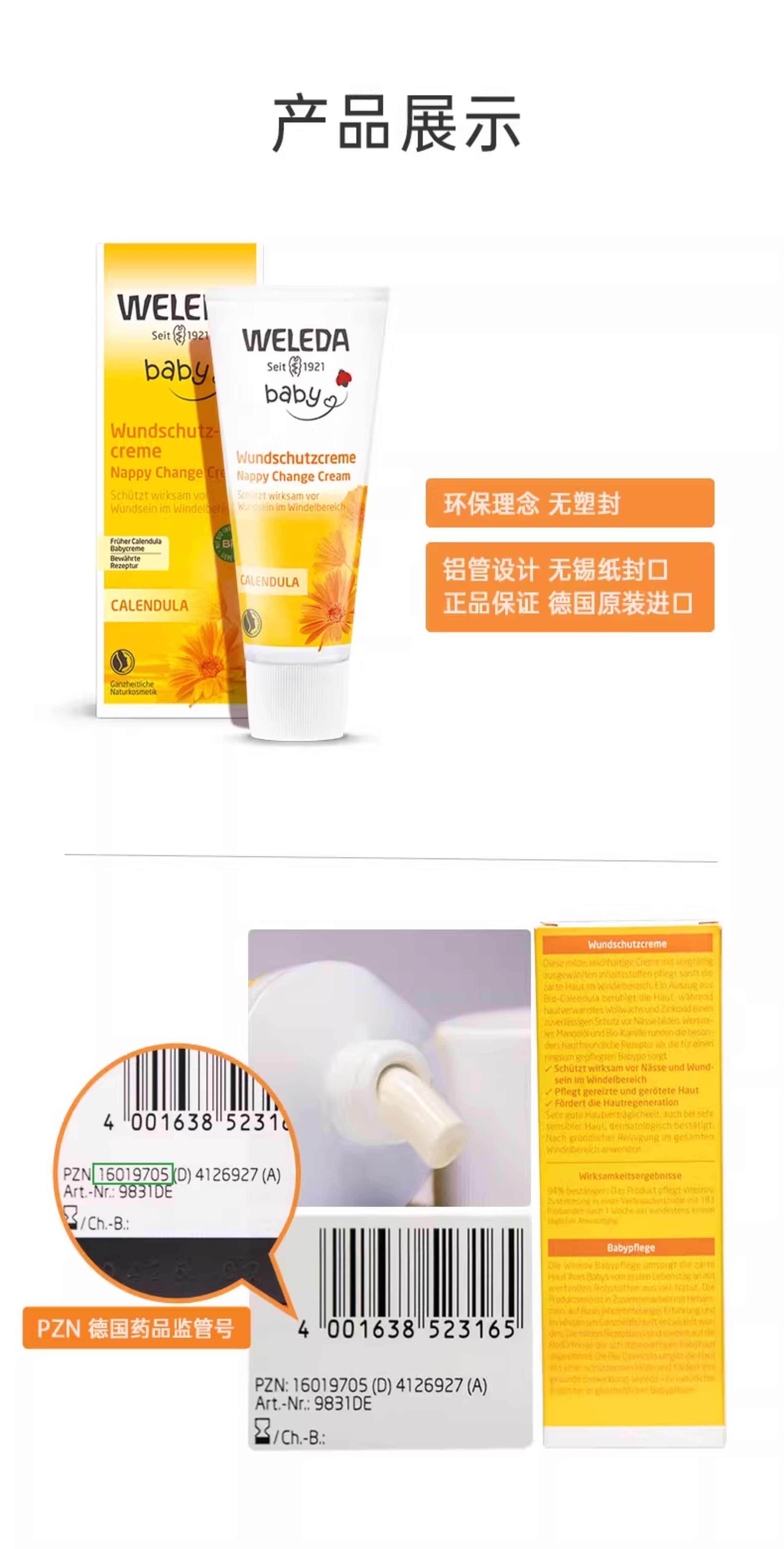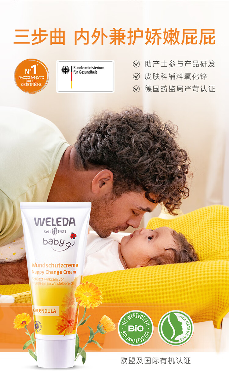 万宁(mannings)德国Weleda维蕾德金盏花护臀膏 新生婴儿宝宝PP护臀霜屁屁乐膏 护臀霜75ml