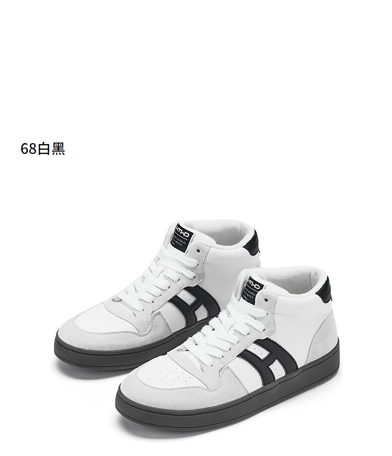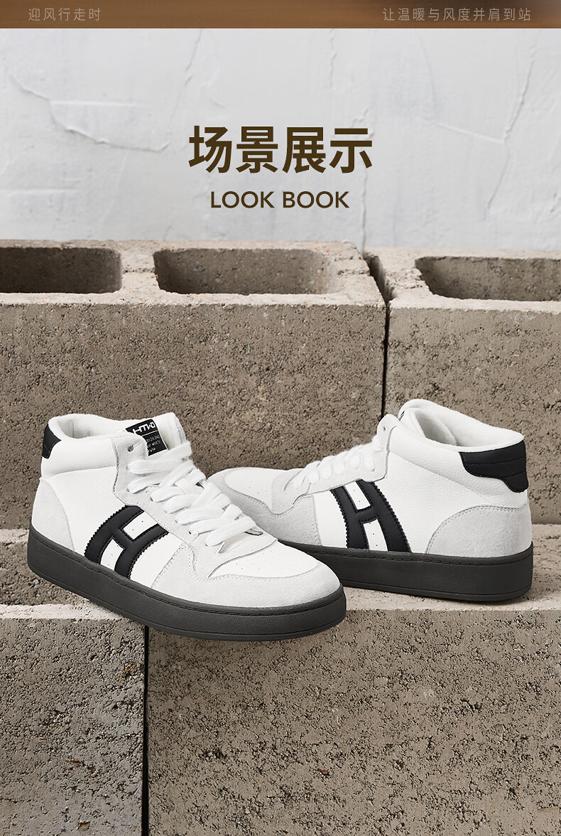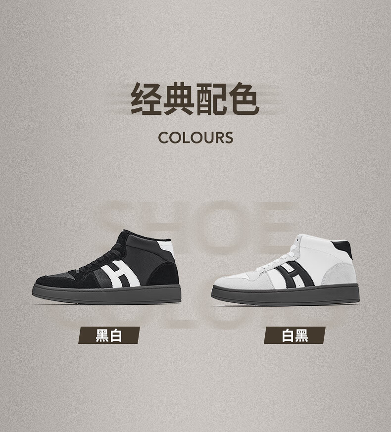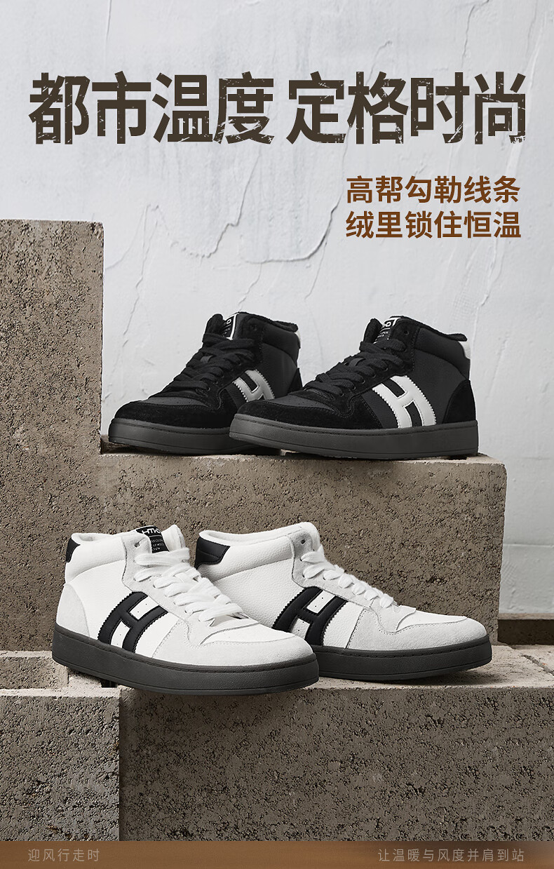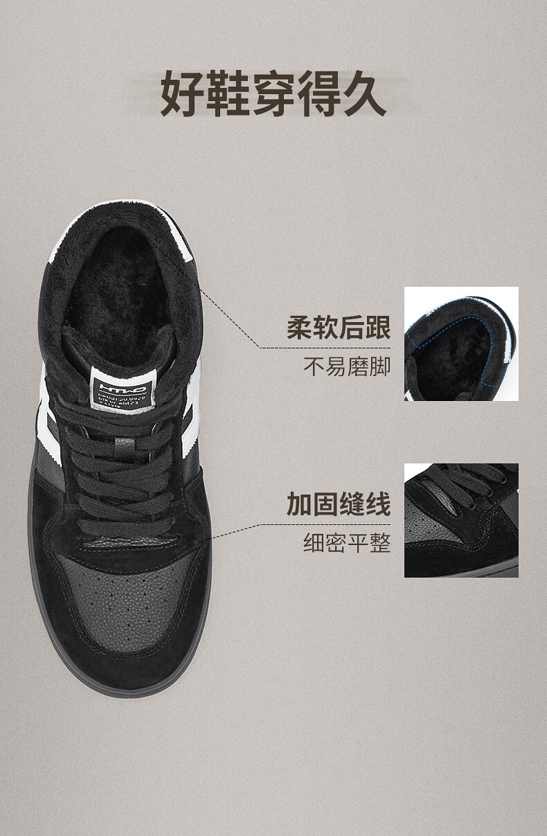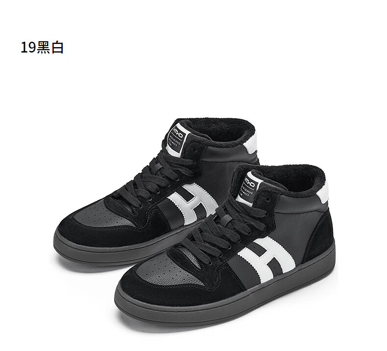 热风男鞋2025年冬季新款男士加绒增高厚底高帮鞋保暖百搭休闲鞋子 19黑白 38