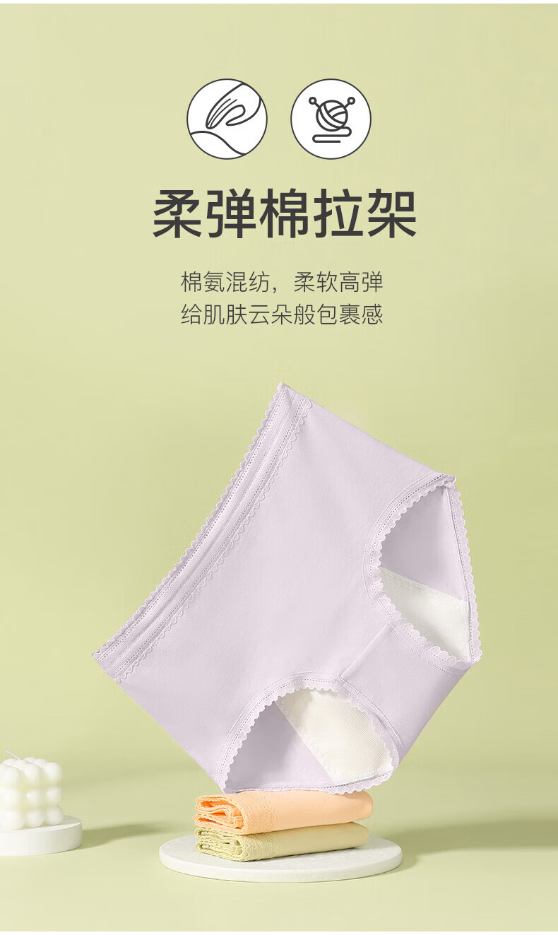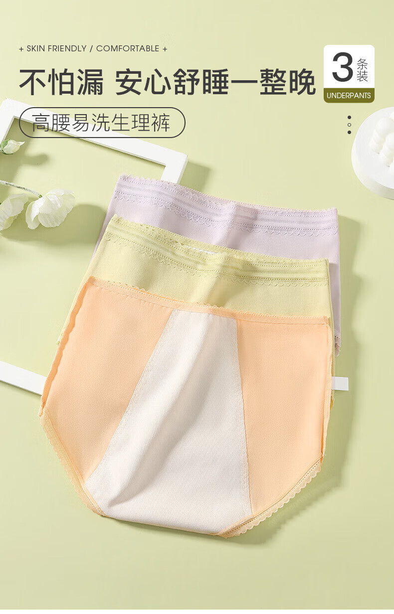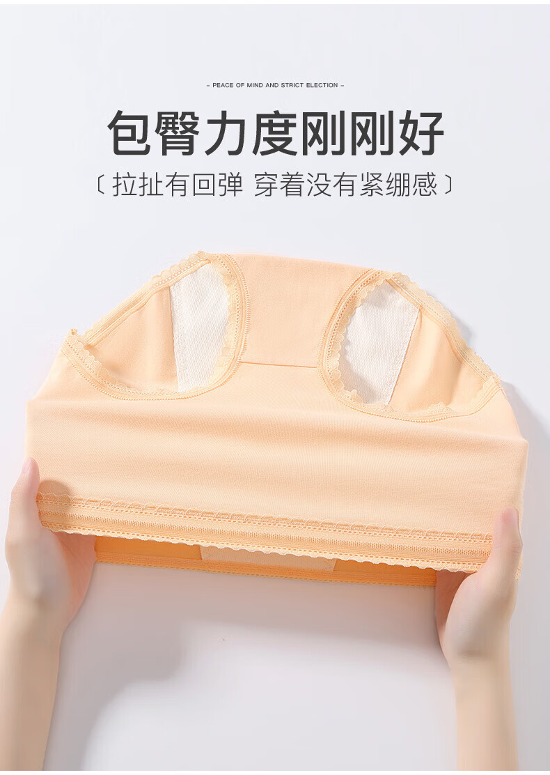 芬腾内裤女【加长防侧漏 棉感】弹力包臀透气易洗底裆高腰生理裤3条装 桔色/芥末绿/浅紫 3条 XL