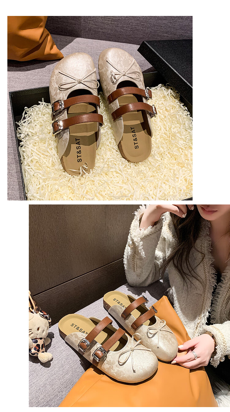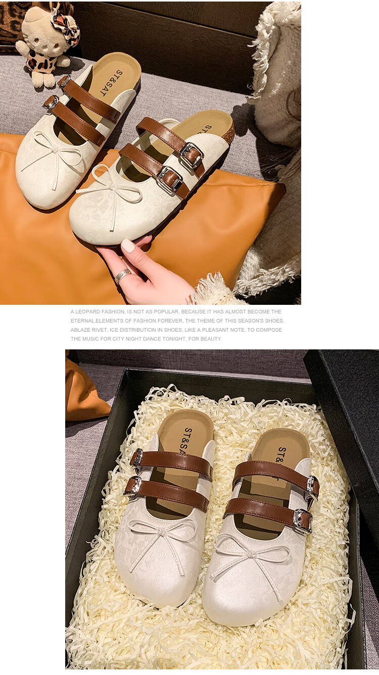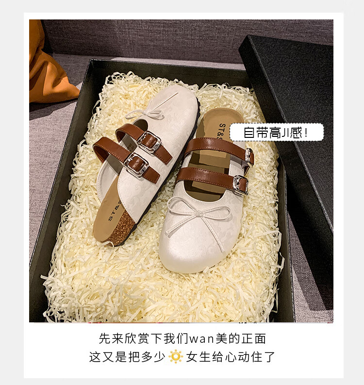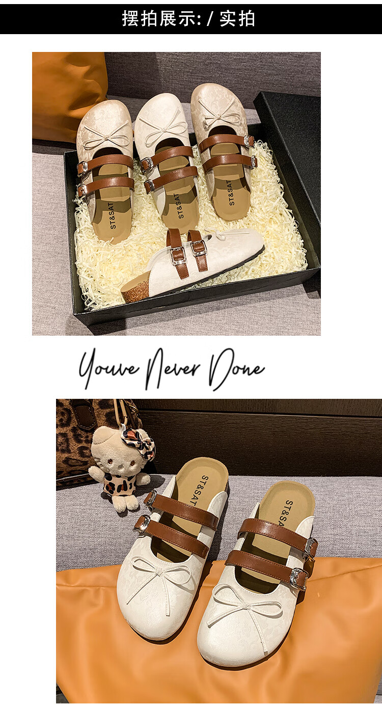 星期六(St&Sat)甜美蝴蝶结包头勃肯拖鞋时尚百搭凉拖鞋女凉鞋休闲鞋WKSSC3110F66 杏色 【甜美蝴蝶结】 35