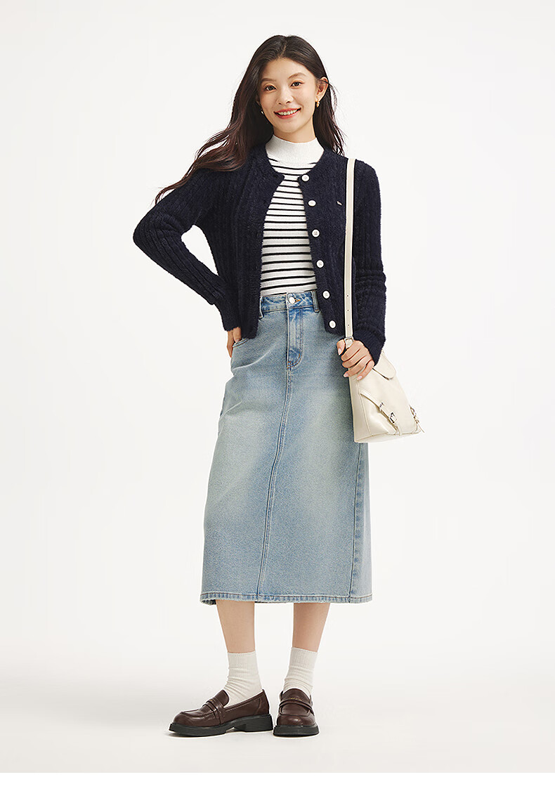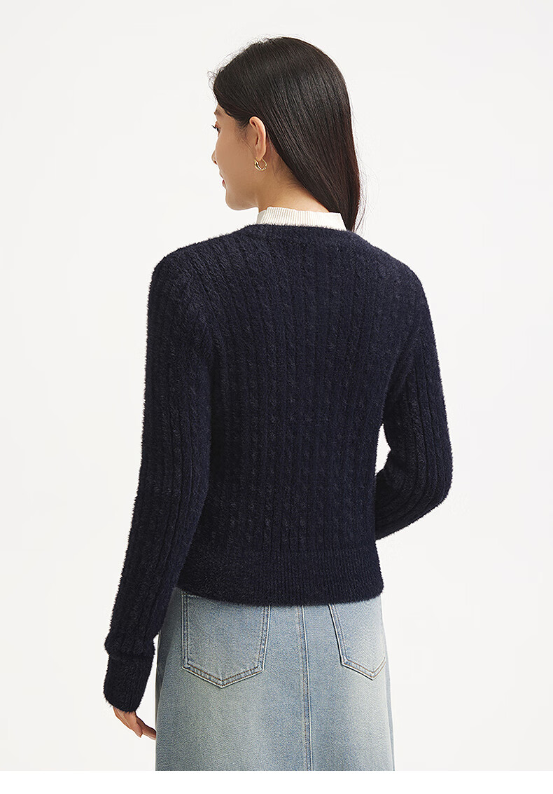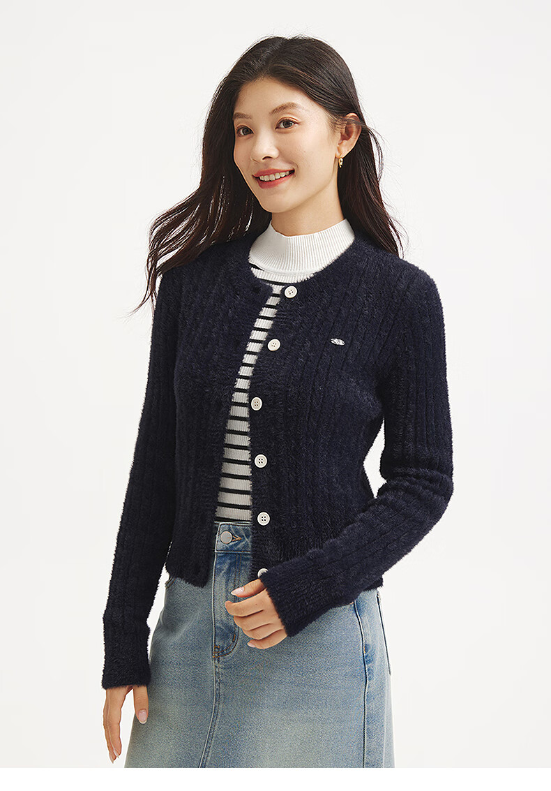 热风【商场同款】女士开衫毛衣针织衫上衣2025年冬季新款绒感打底衫 29藏青兰 S