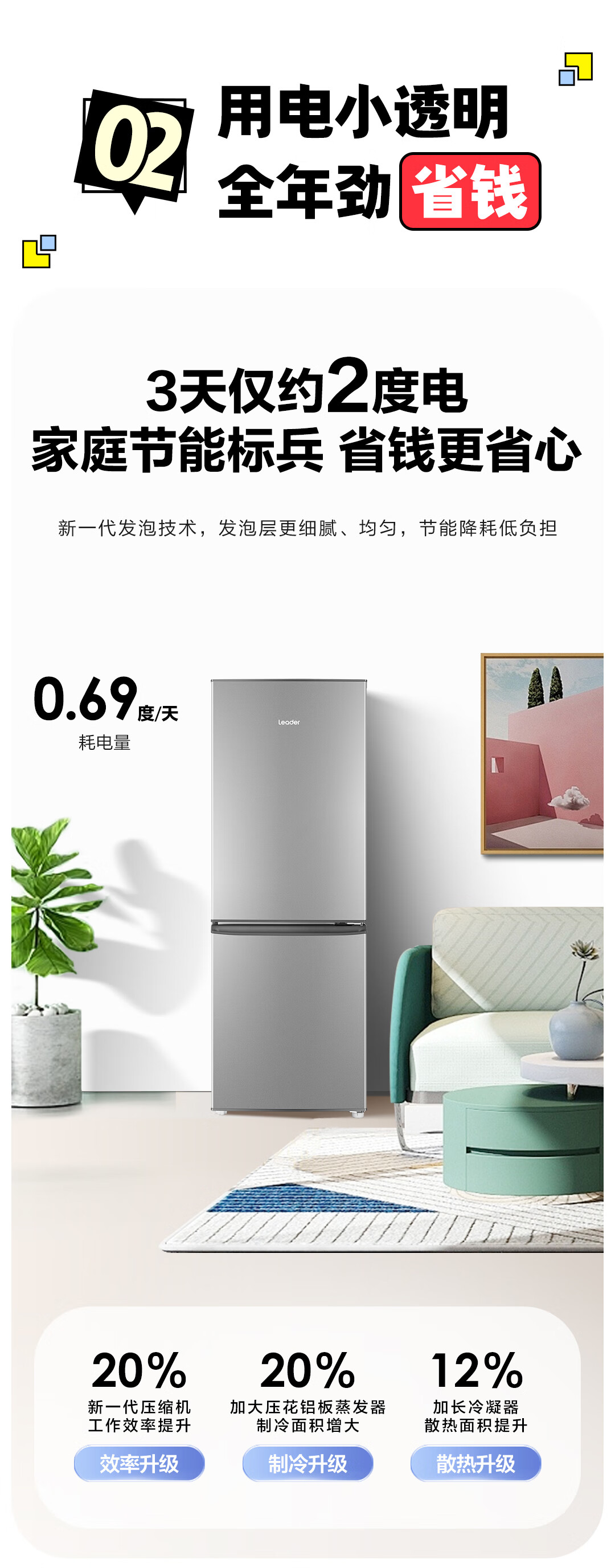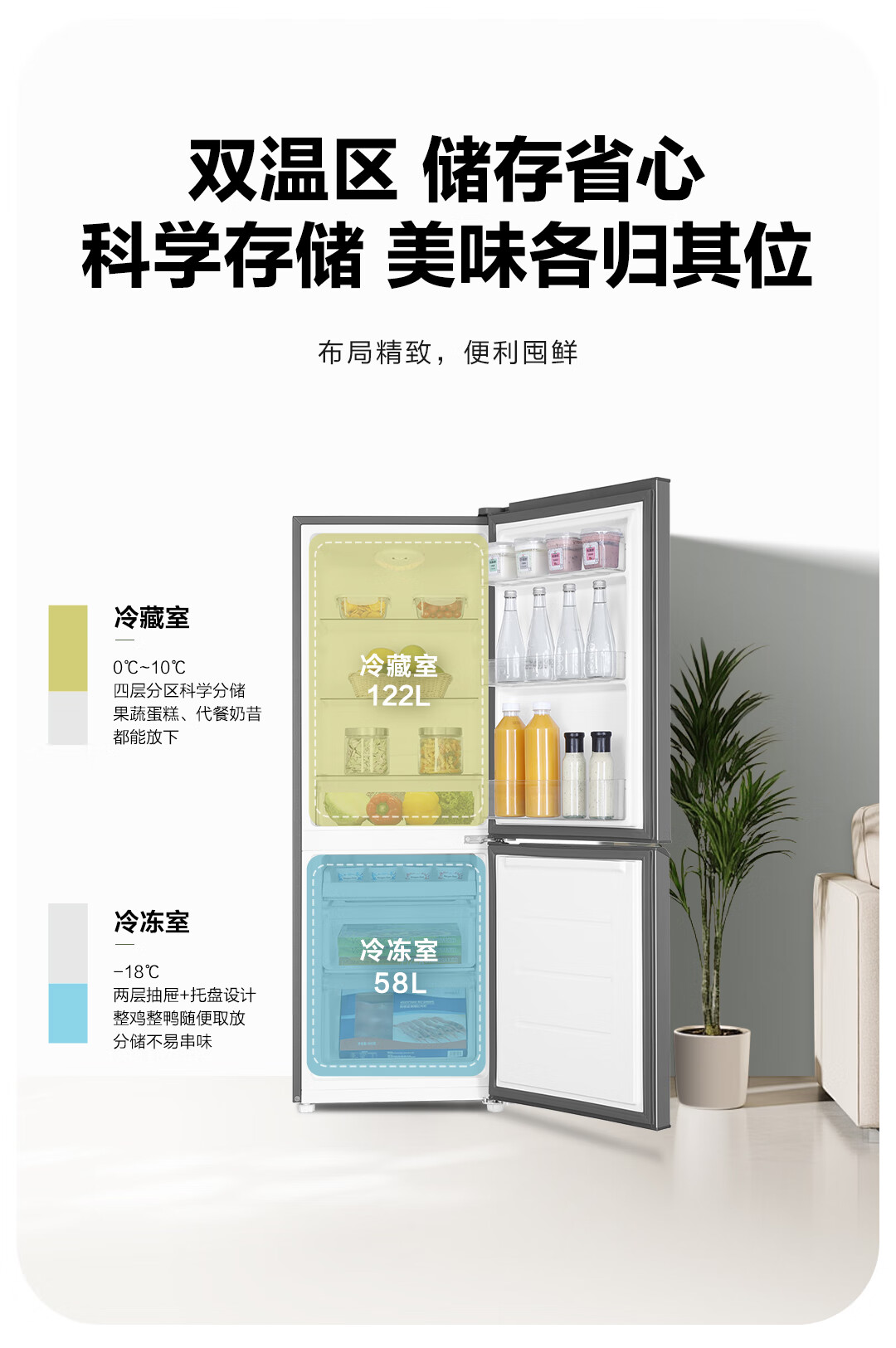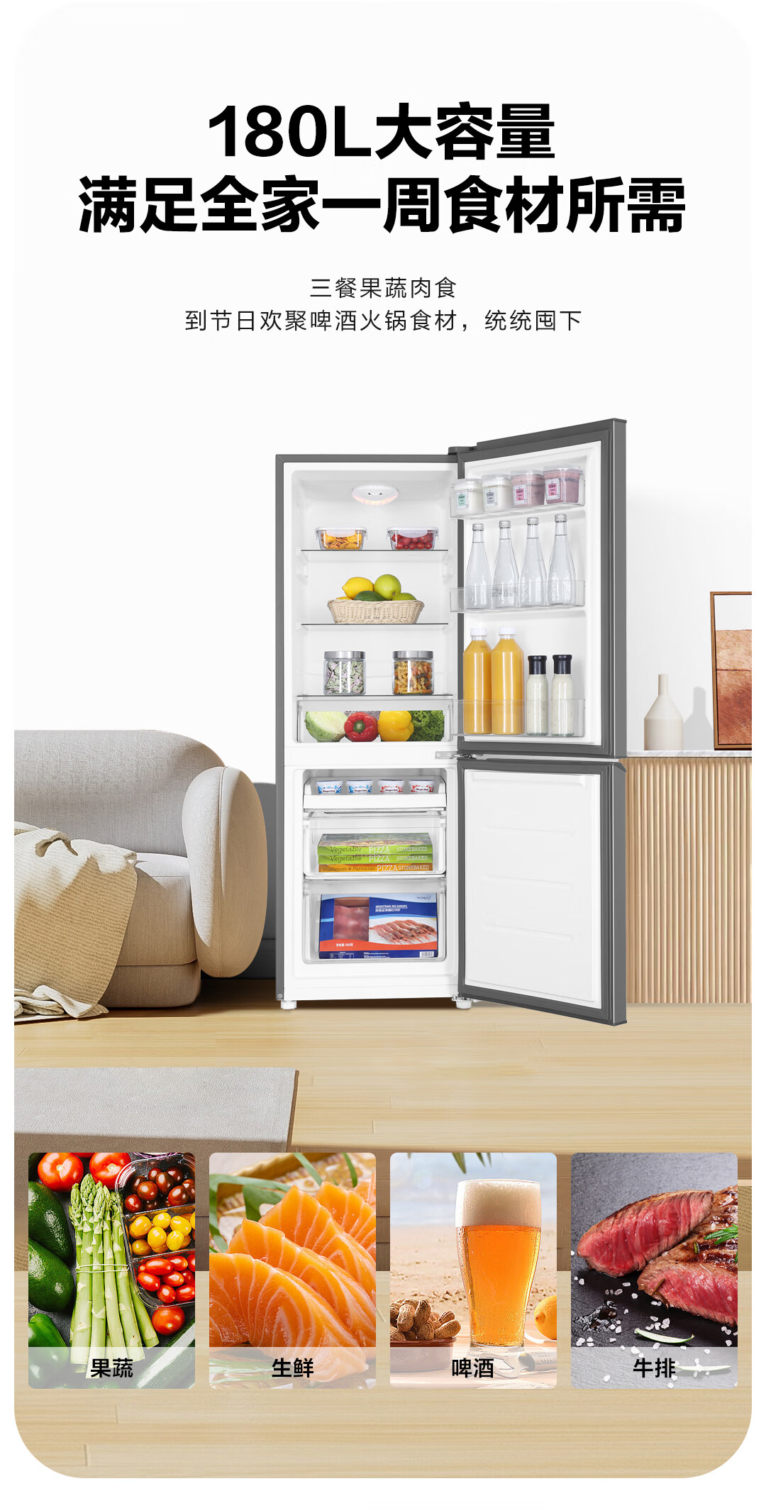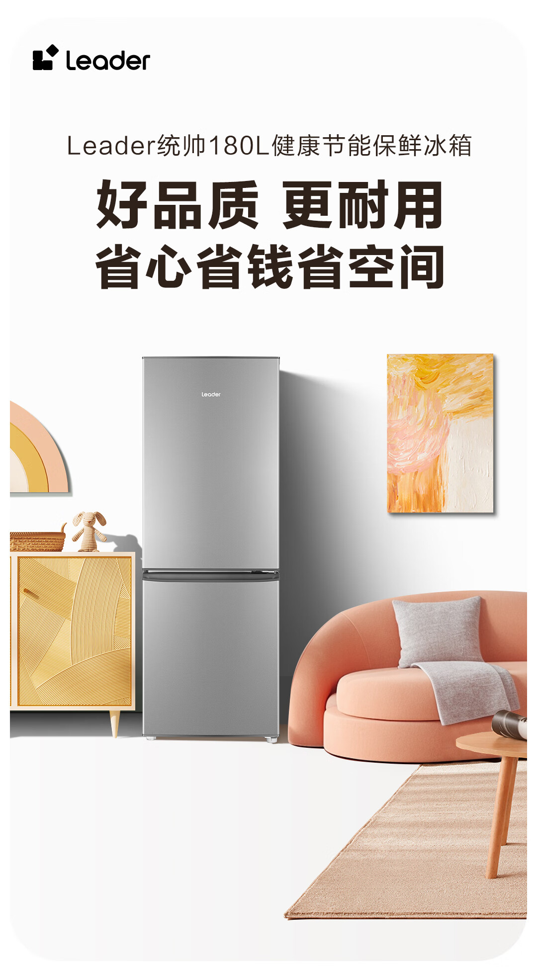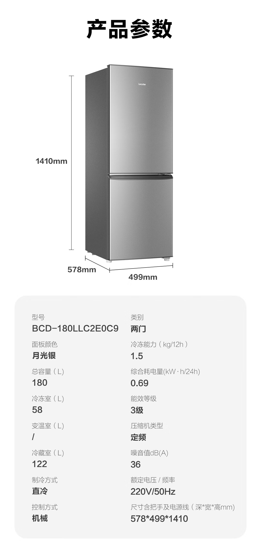 统帅(Leader) 海尔冰箱出品180升两门低噪家用电冰箱 迷你二门双门 宿舍租房小冰箱 BCD-180LLC2EZS9二级能效