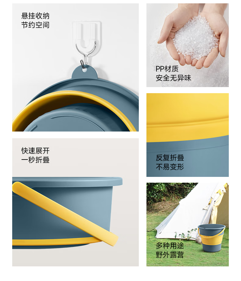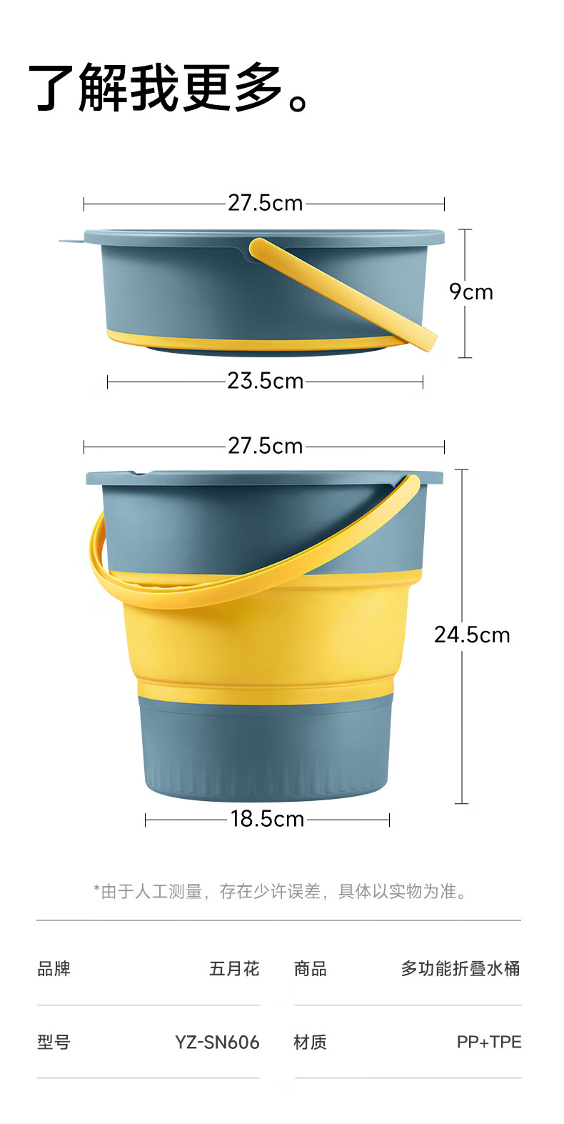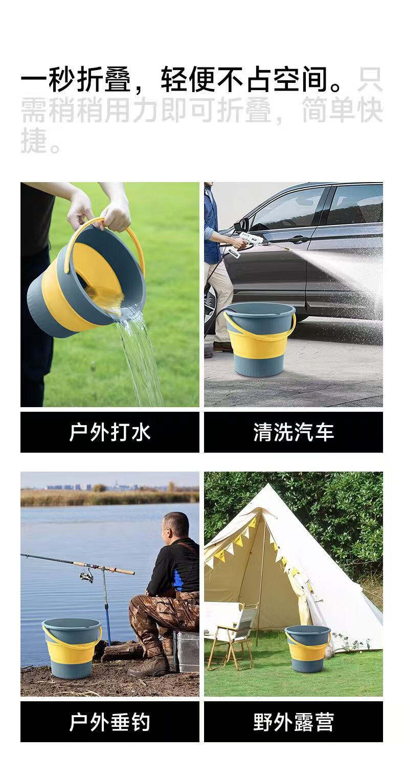 五月花折叠水桶10L家用便携收纳户外储水洗车提水桶钓鱼桶
