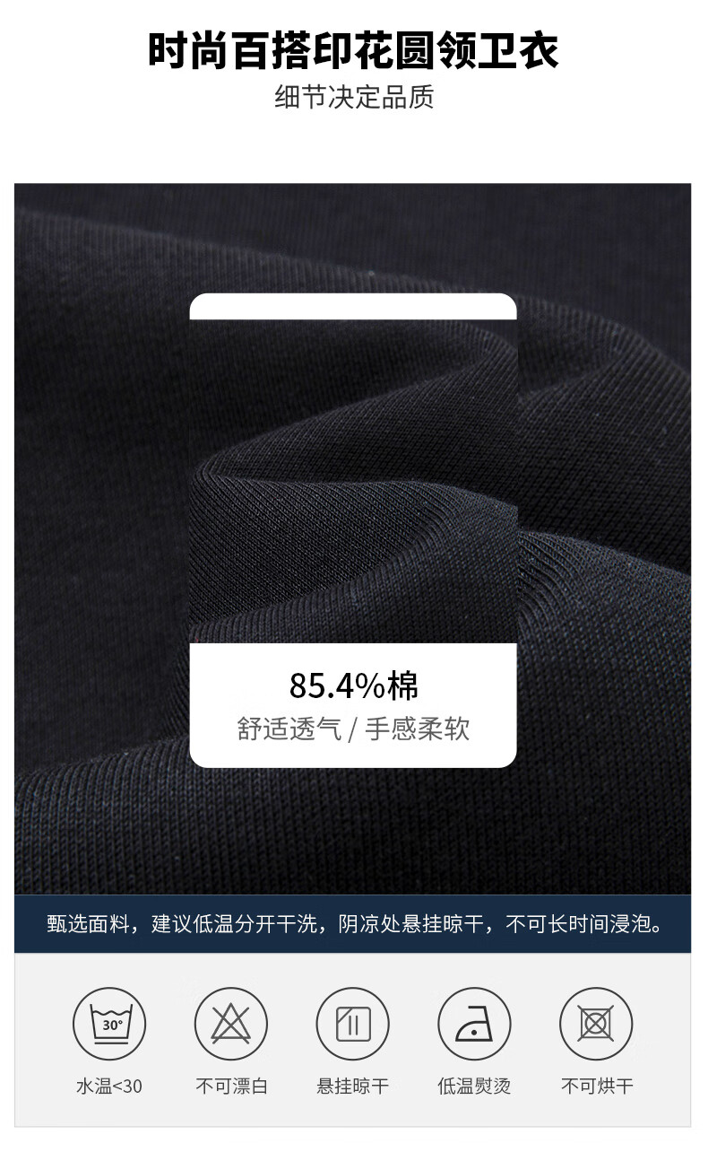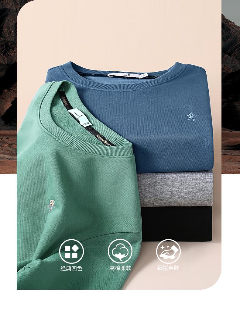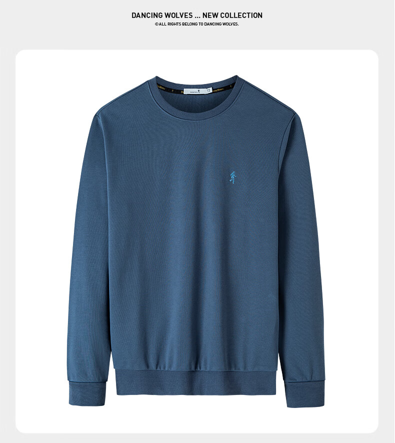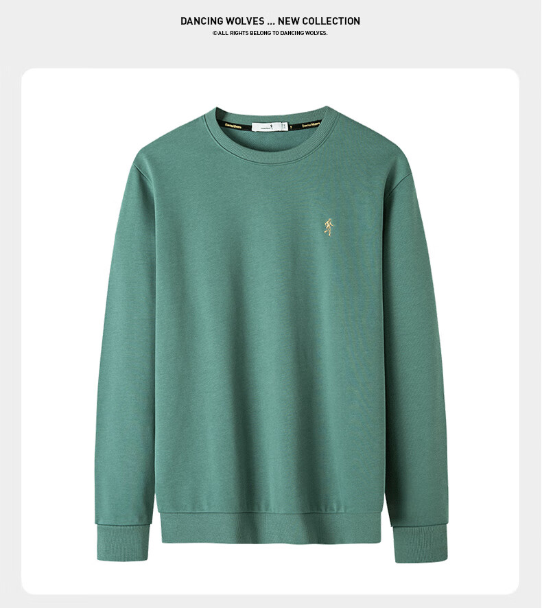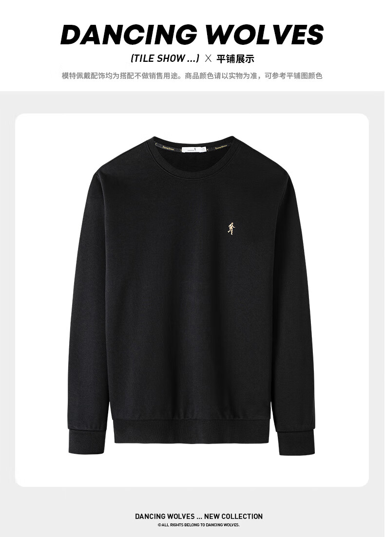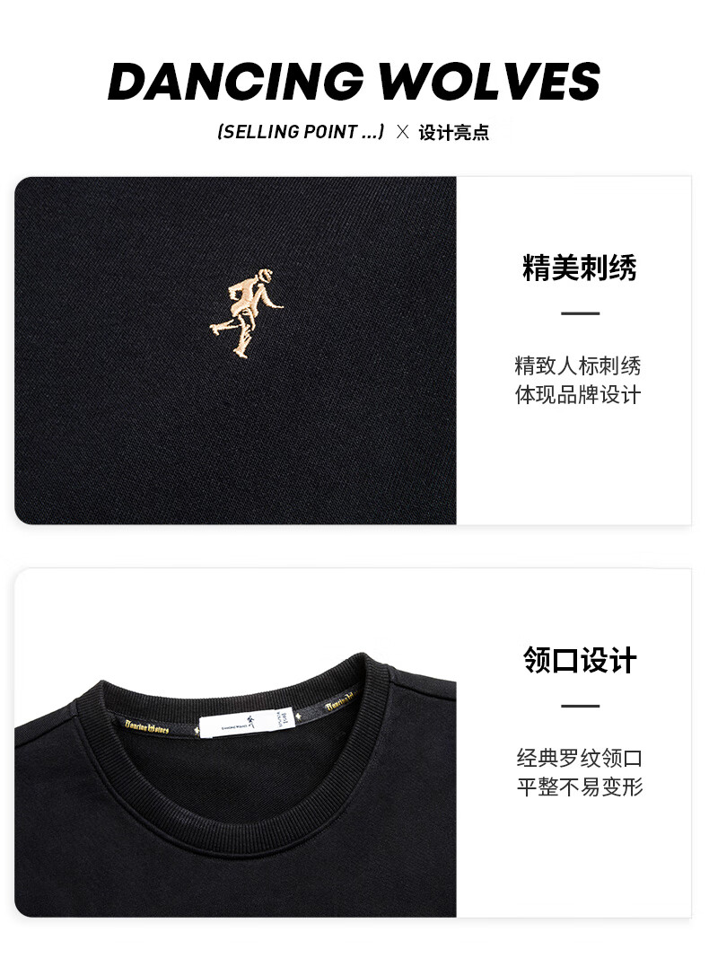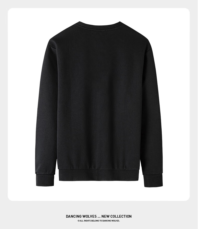 与狼共舞【高棉柔软】简约刺绣百搭休闲套头长袖男士卫衣 001黑色 175