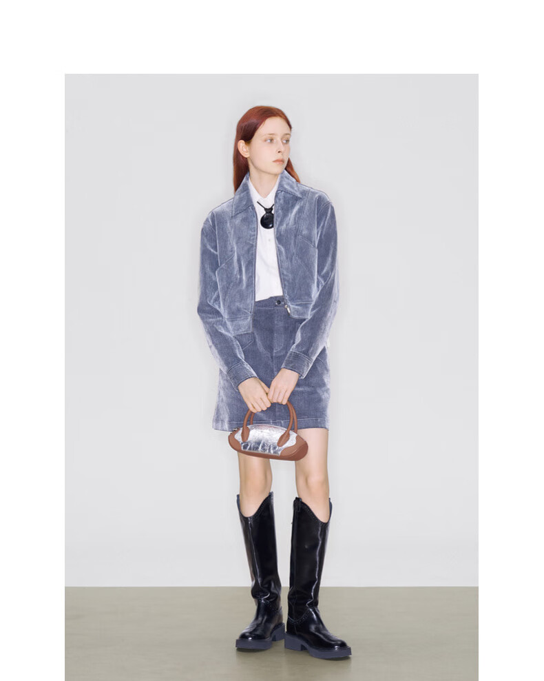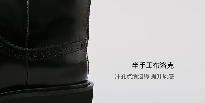 lost in echo2025早秋新款复古刺绣布洛克高筒一脚蹬骑士靴长靴女 黑色 37