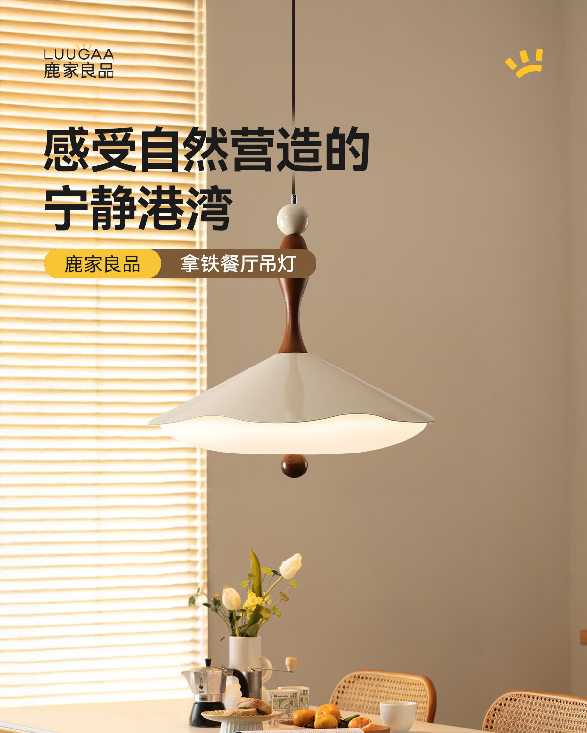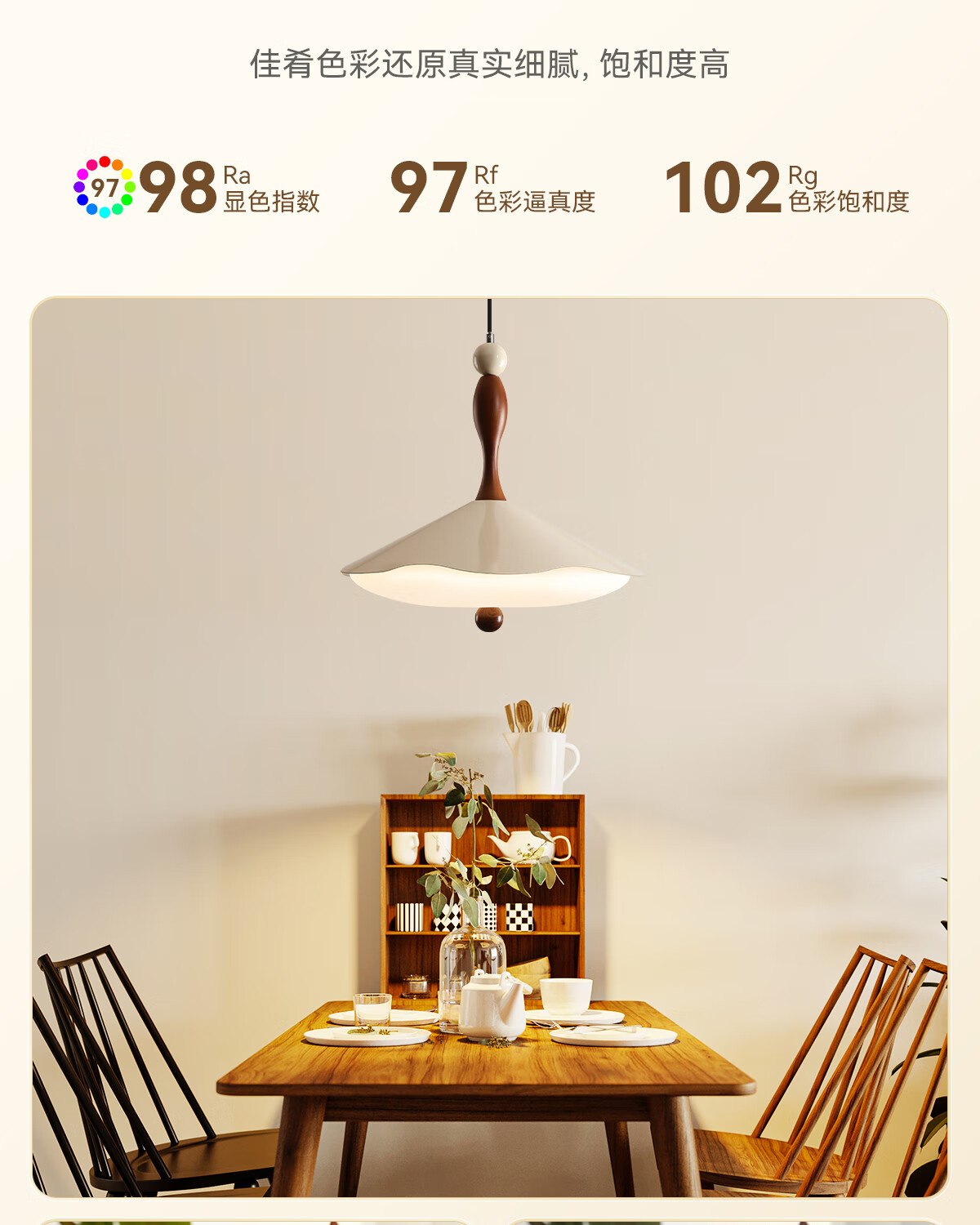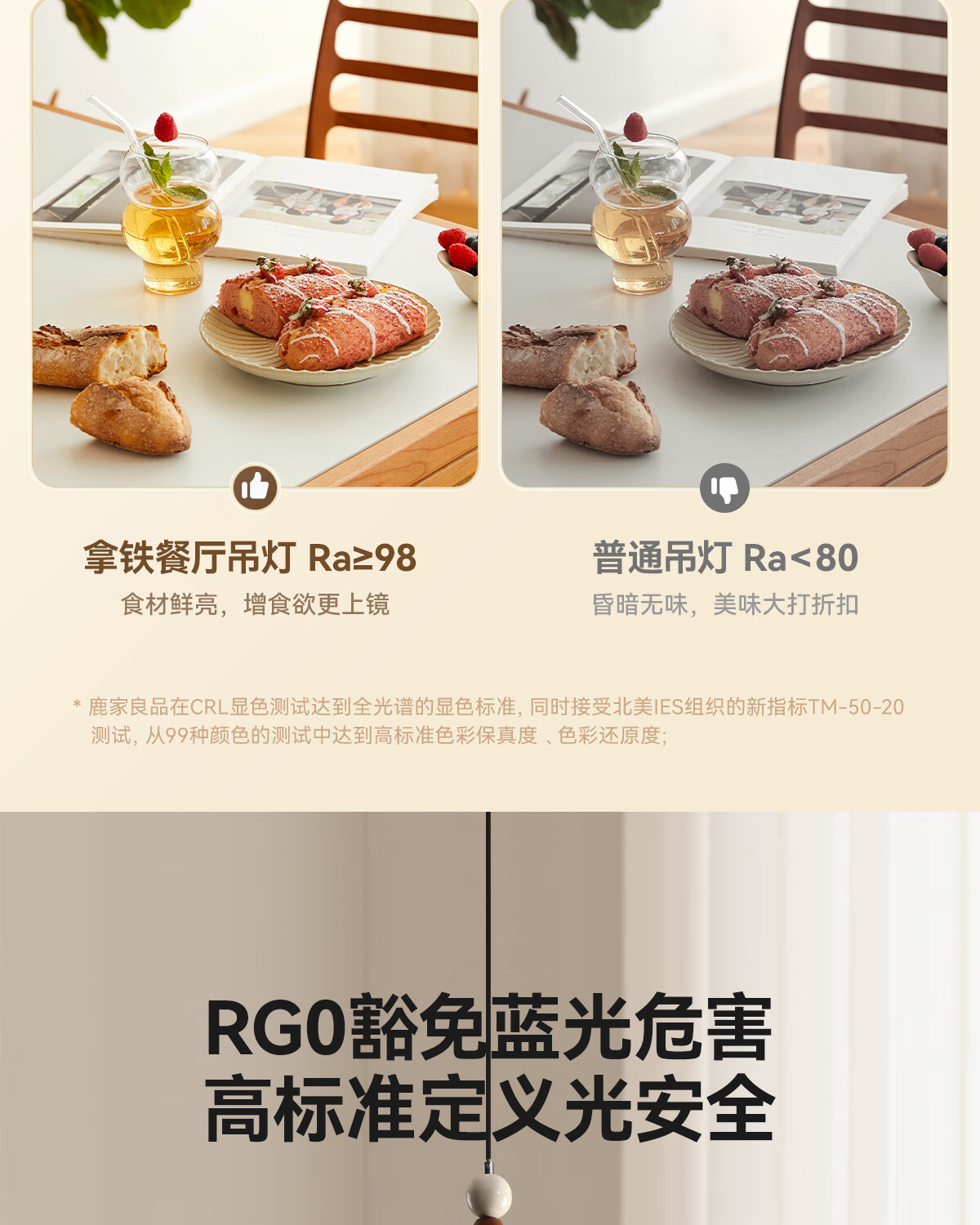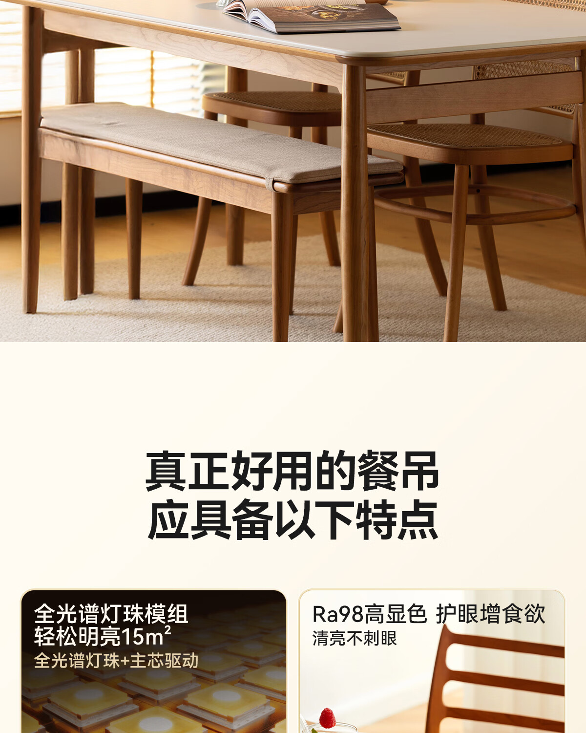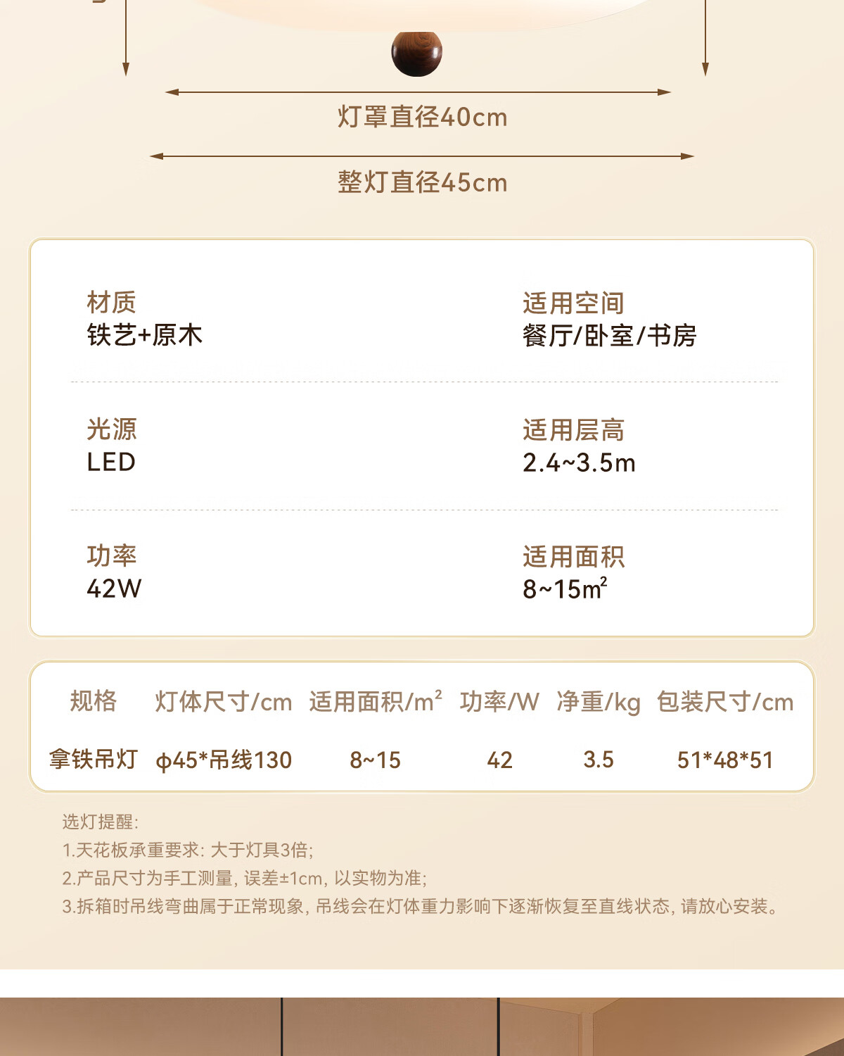 鹿家良品(LUUGAA)拿铁吊灯全光谱护眼中古风餐厅吊灯简约高级感奶油风餐桌吧台灯具 【荐】全光谱45cm三色光42W