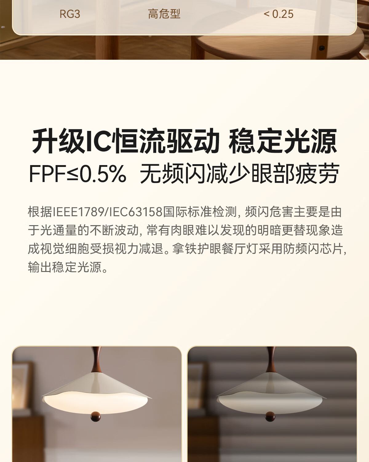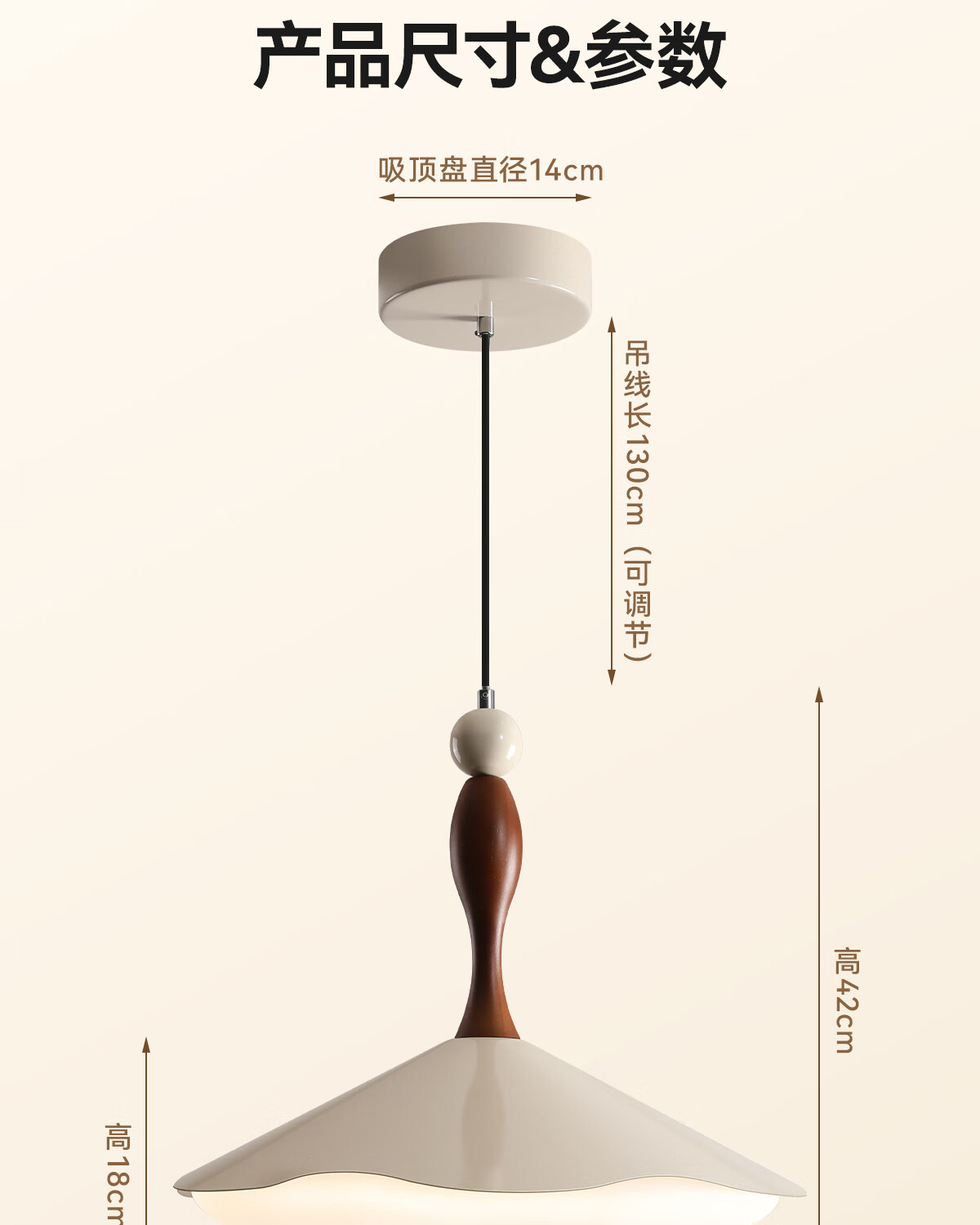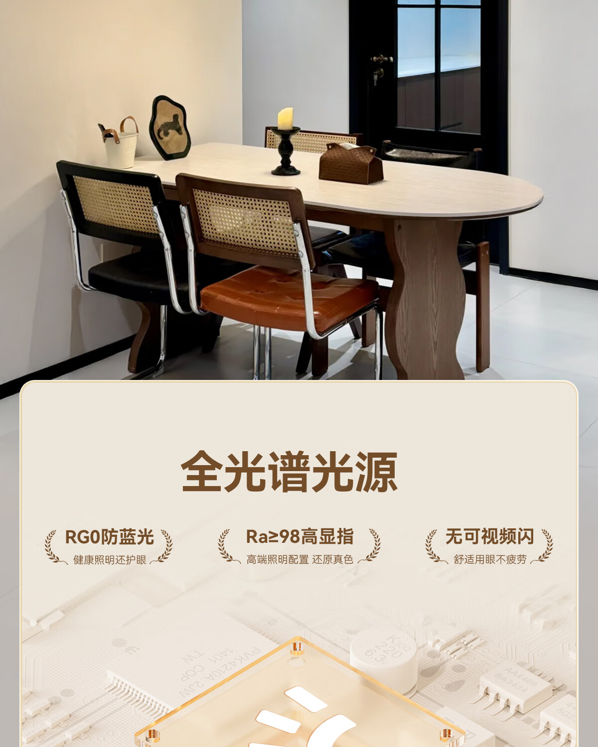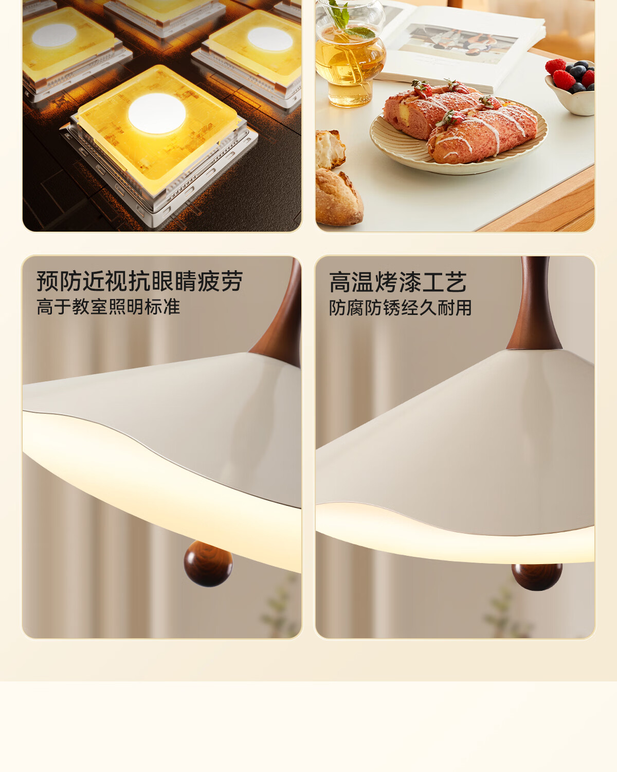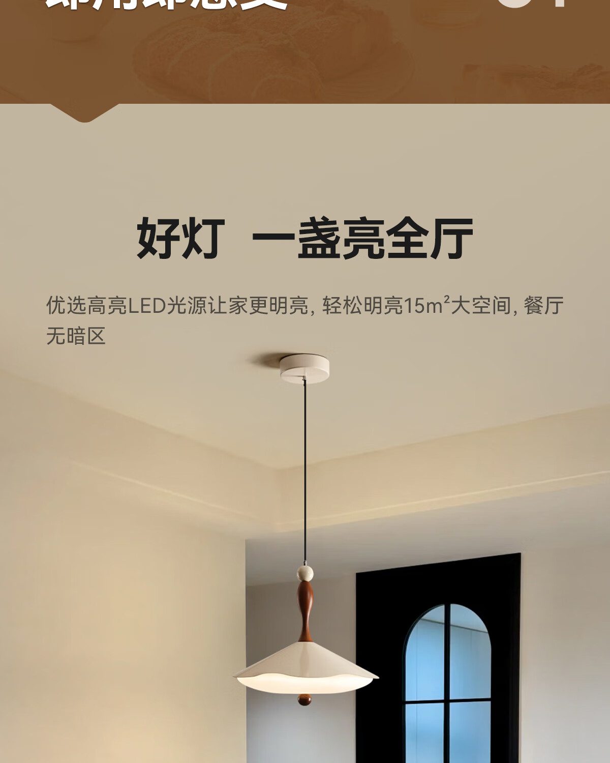 鹿家良品(LUUGAA)拿铁吊灯全光谱护眼中古风餐厅吊灯简约高级感奶油风餐桌吧台灯具 【荐】全光谱45cm三色光42W