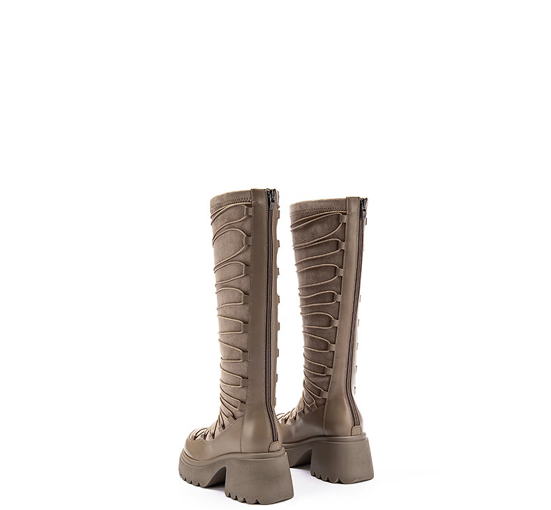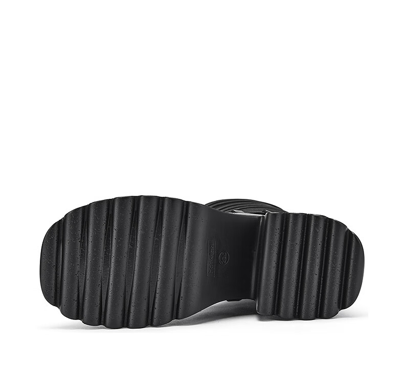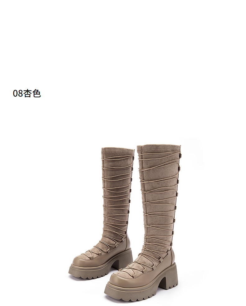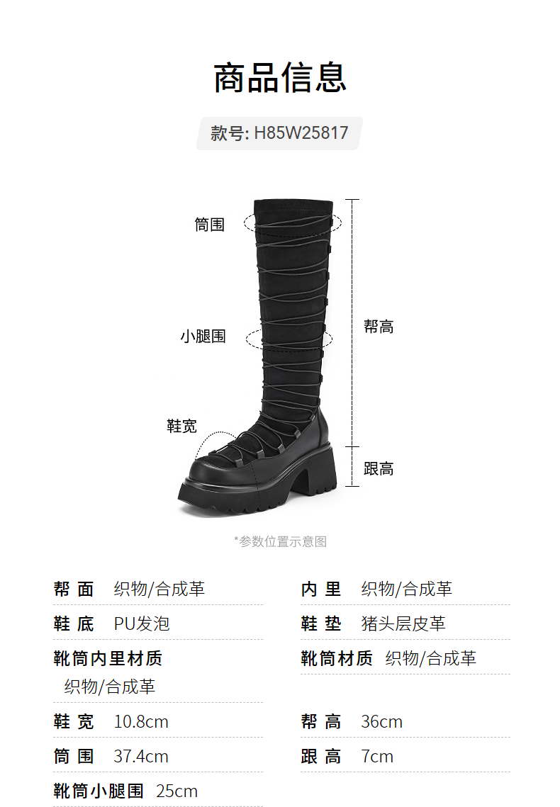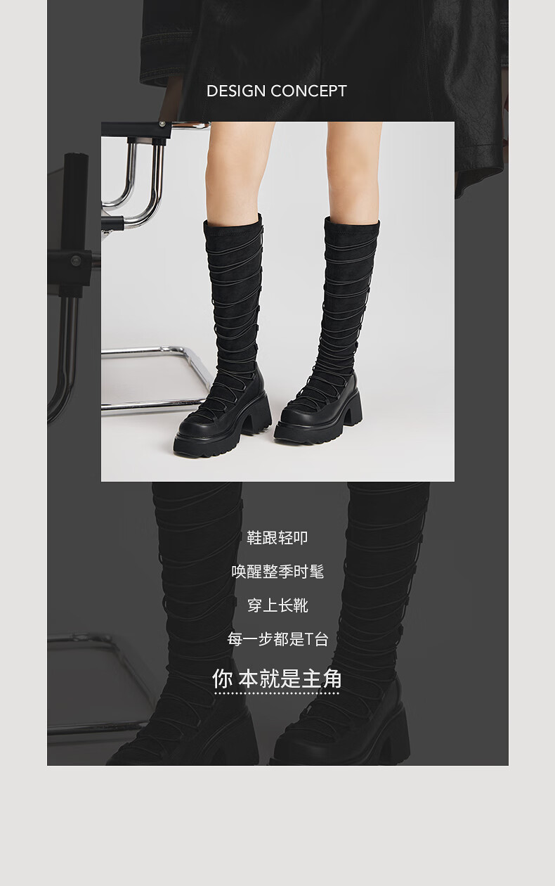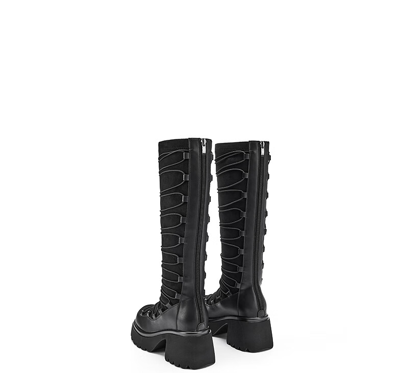 热风厚底骑士靴2025年冬季新款增高百搭长筒靴黑色粗跟时装靴子女 01黑色 34