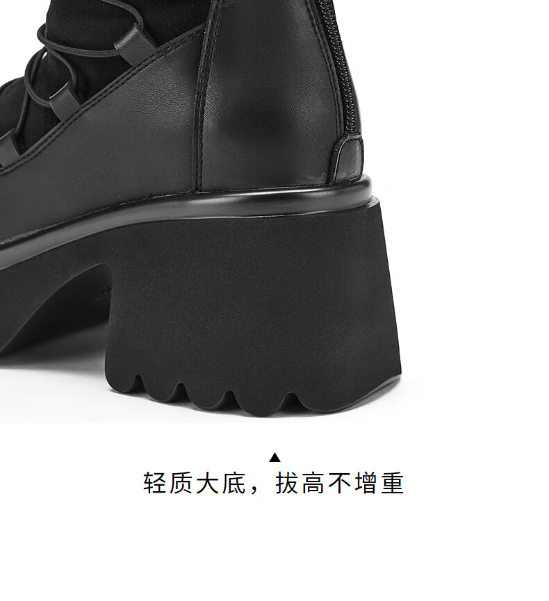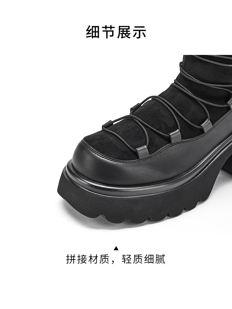 哈森(Harson)女靴2025冬季弹力靴运动靴牛皮织物袜靴迷你靴HA259021 黑色 34