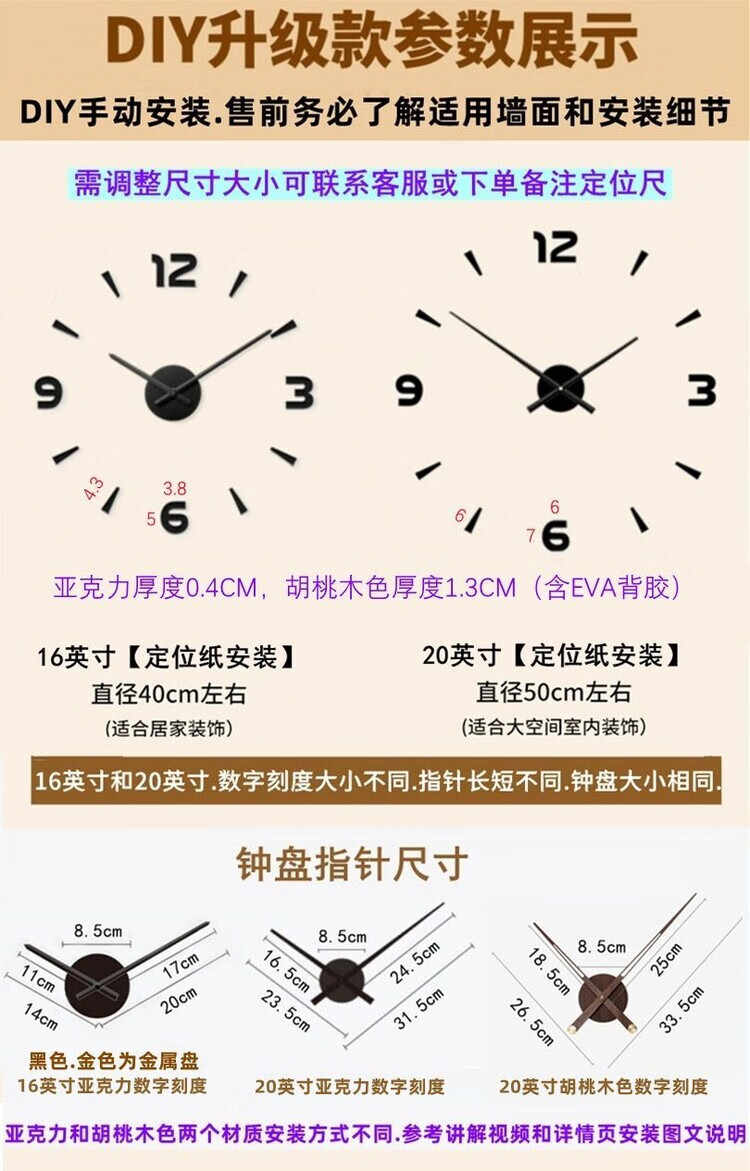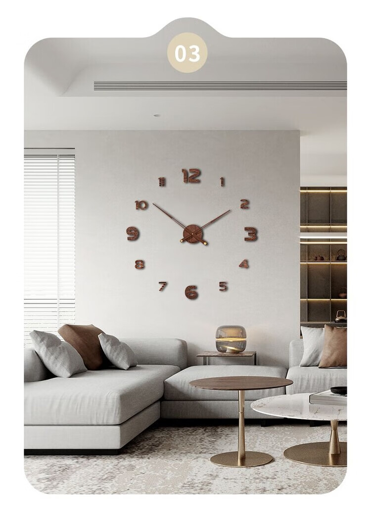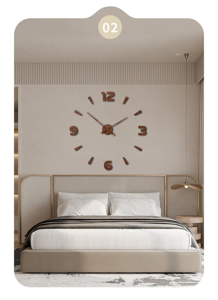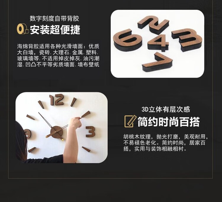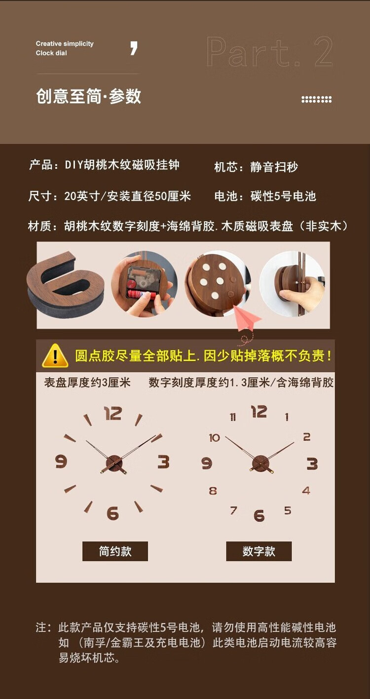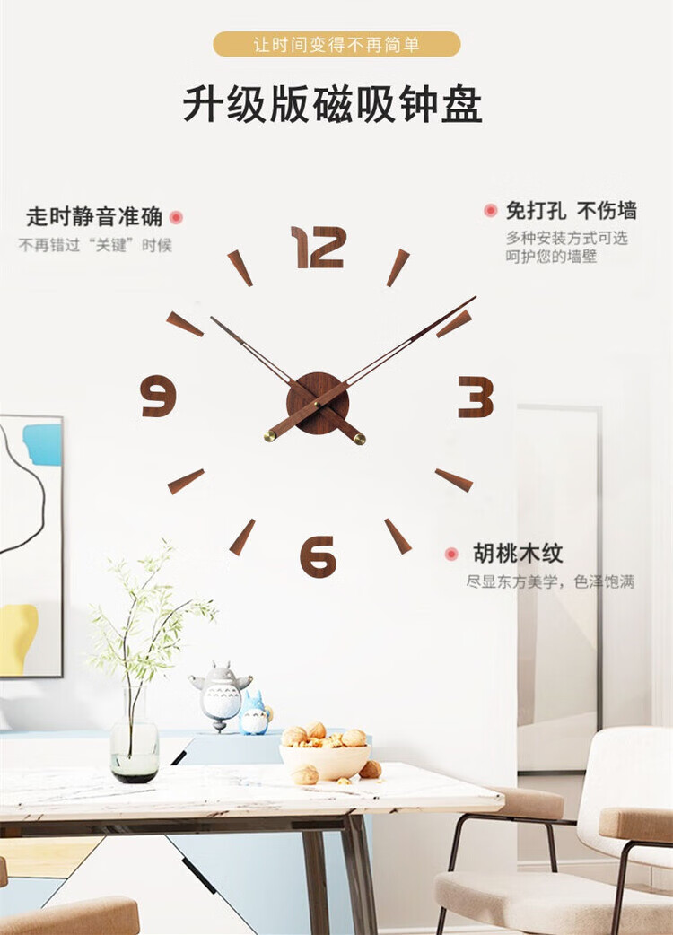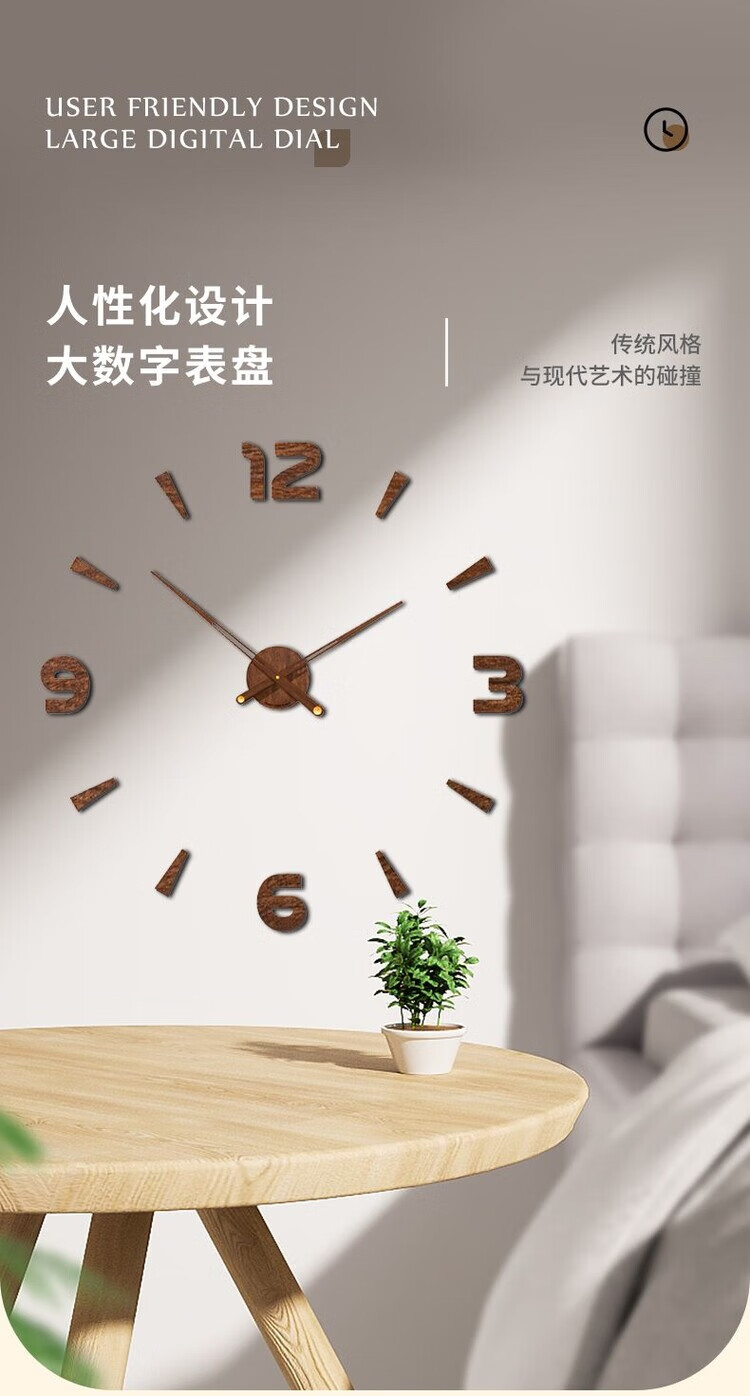 OEMG胡桃木纹数字时钟复古简约家用客厅静音挂钟diy创意钟表贴墙壁钟 胡桃木色简约/钟盘粘贴磁吸/20英寸50厘米