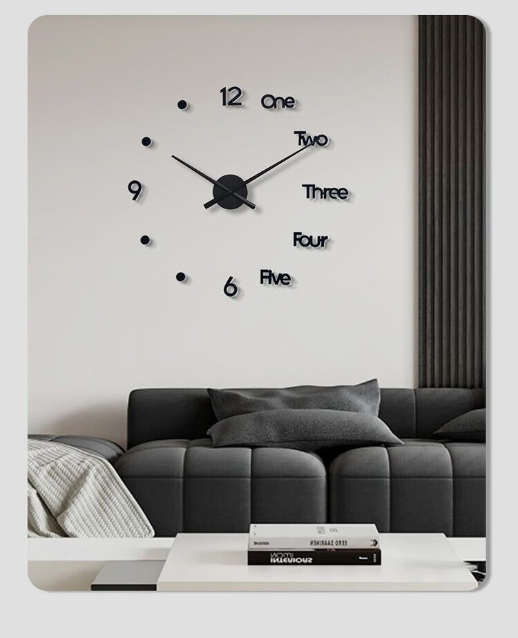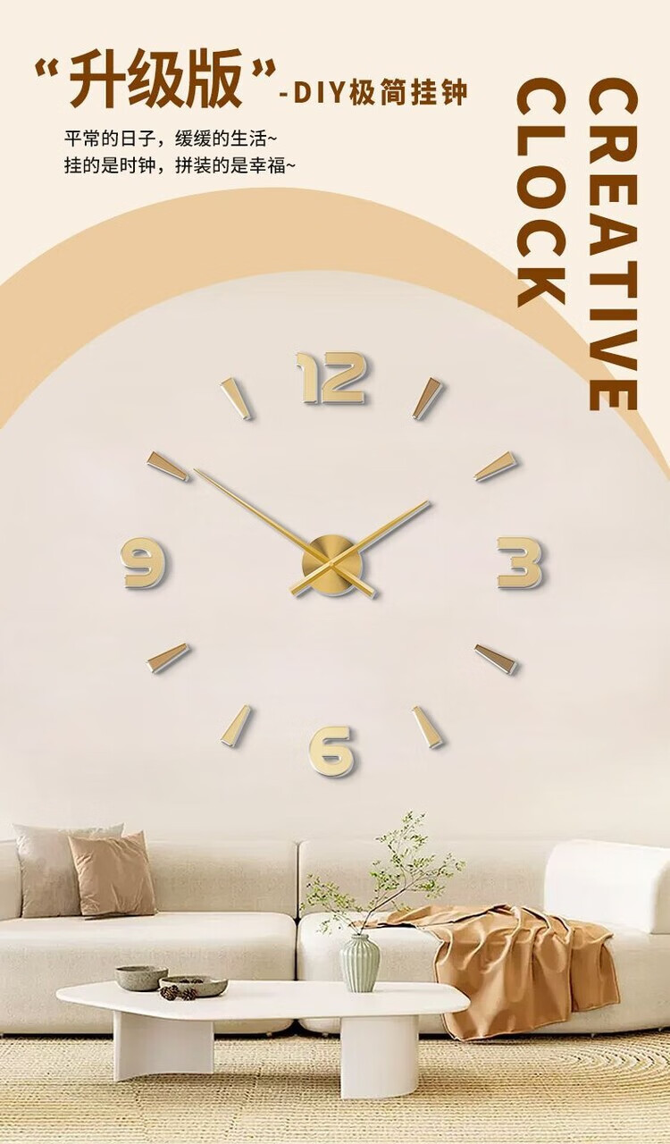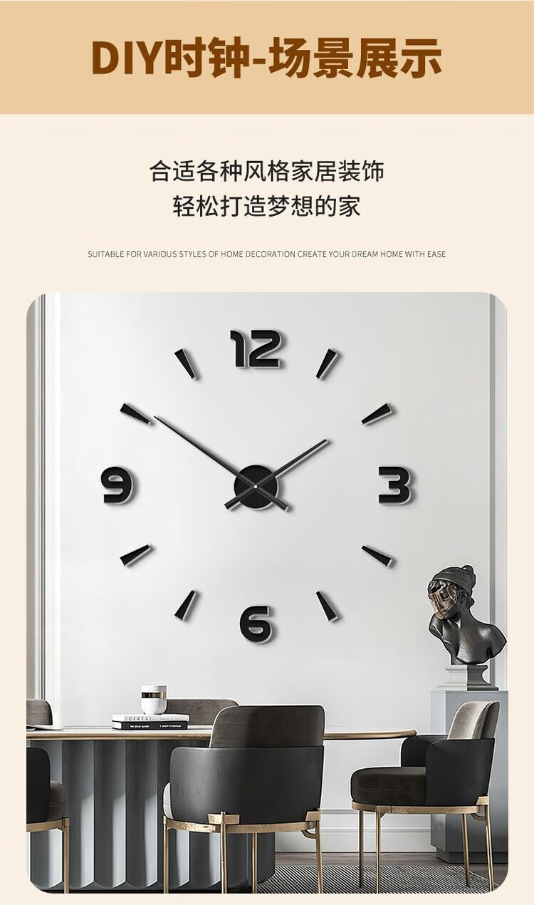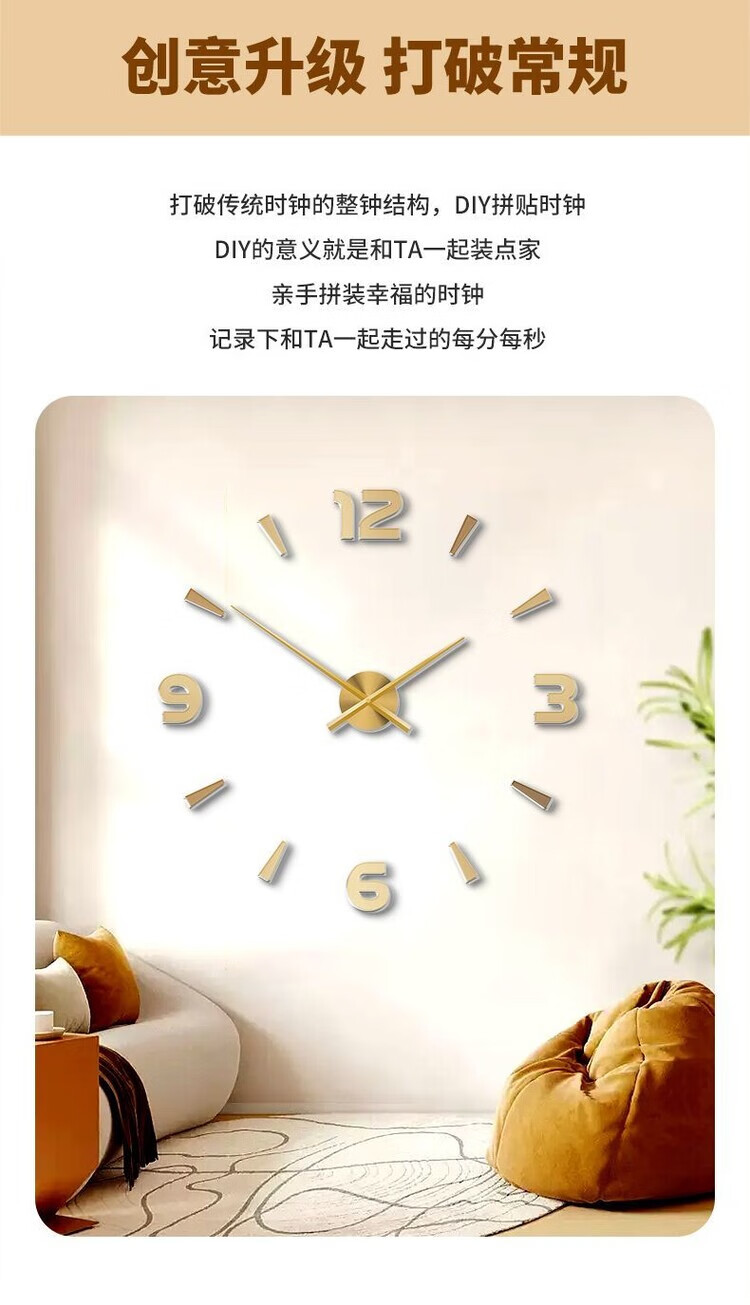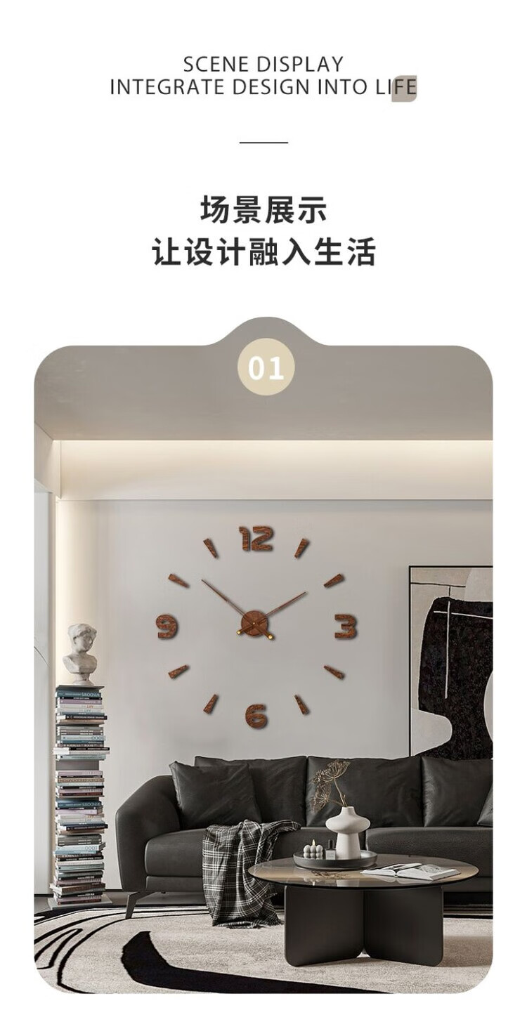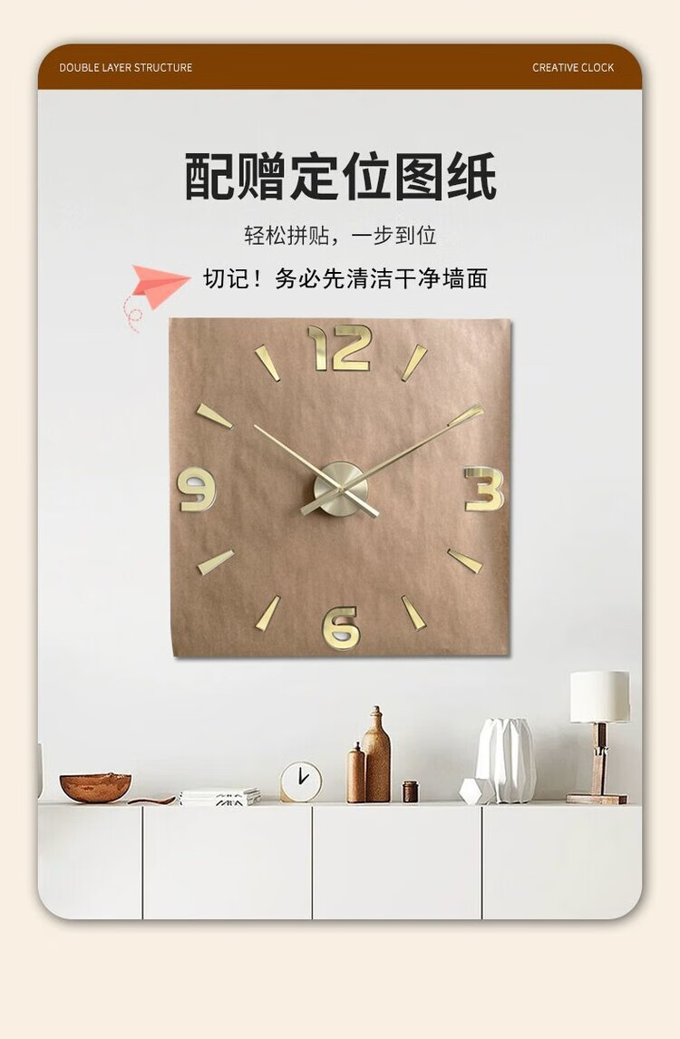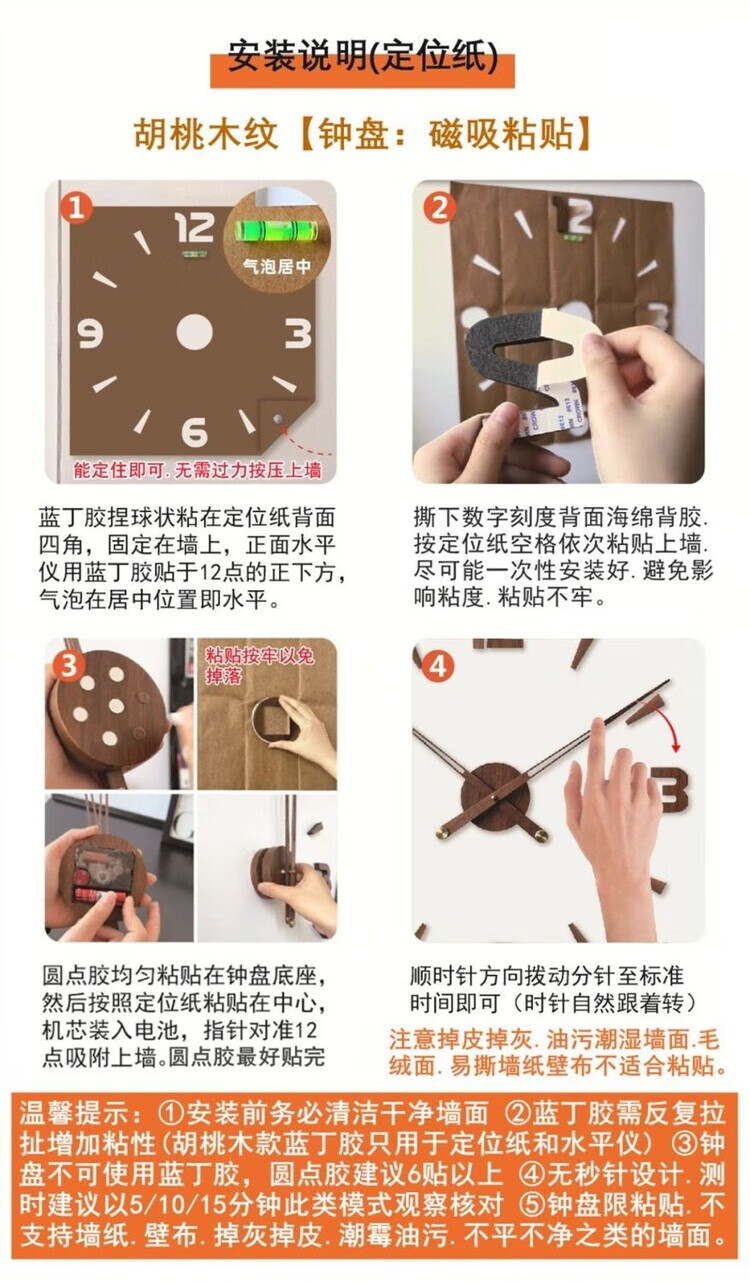 OEMG胡桃木纹数字时钟复古简约家用客厅静音挂钟diy创意钟表贴墙壁钟 胡桃木色简约/钟盘粘贴磁吸/20英寸50厘米