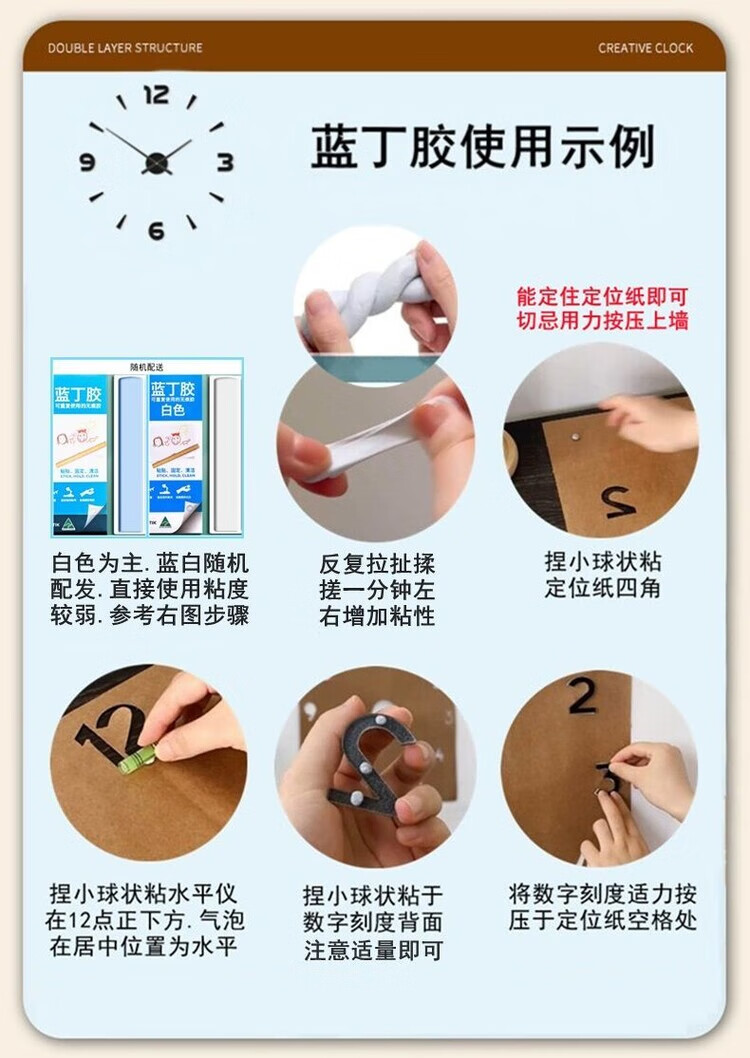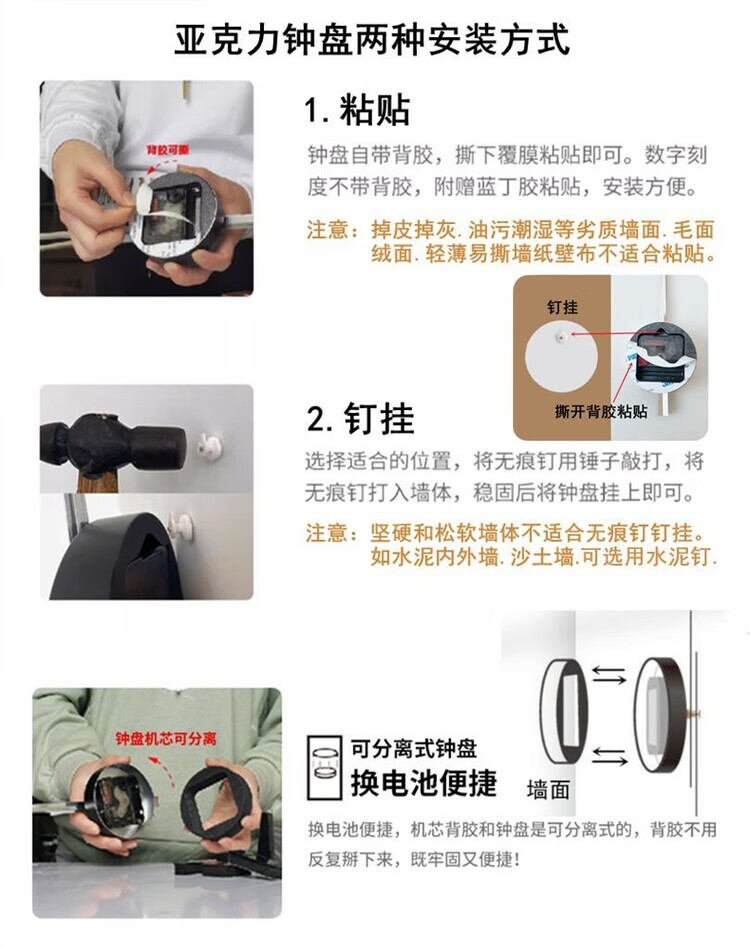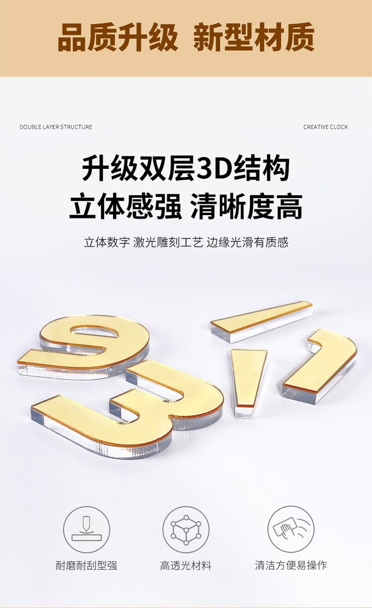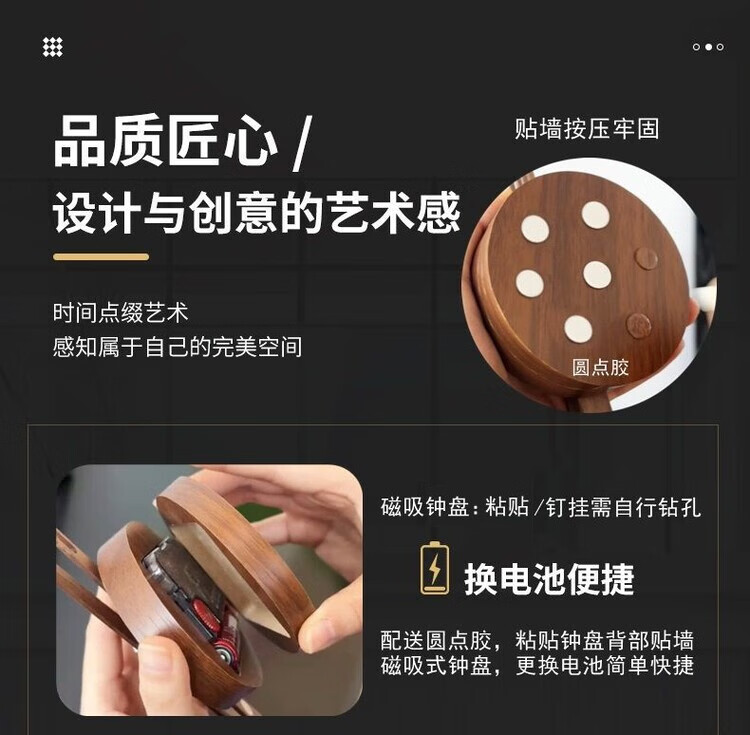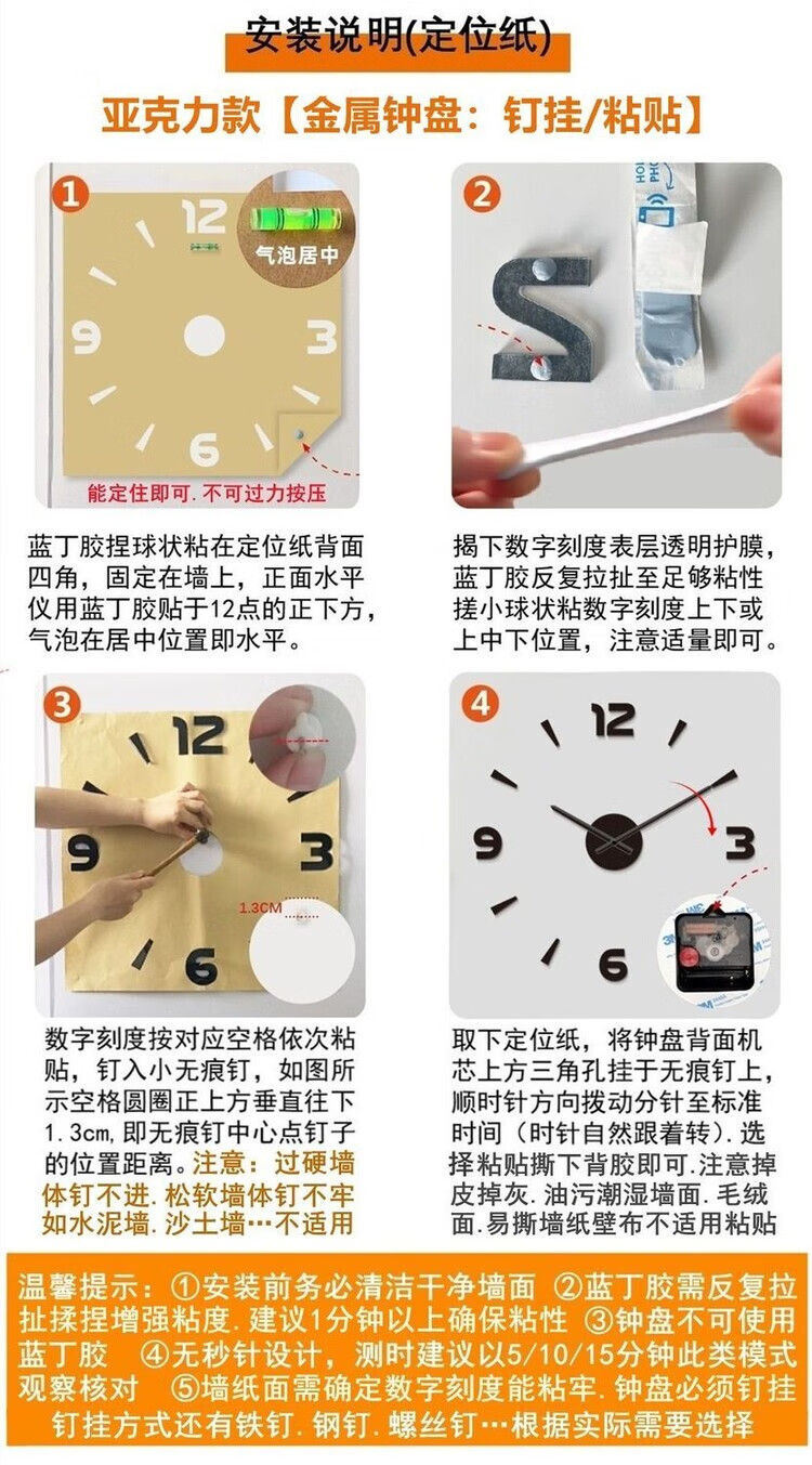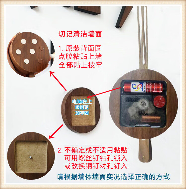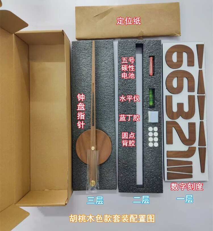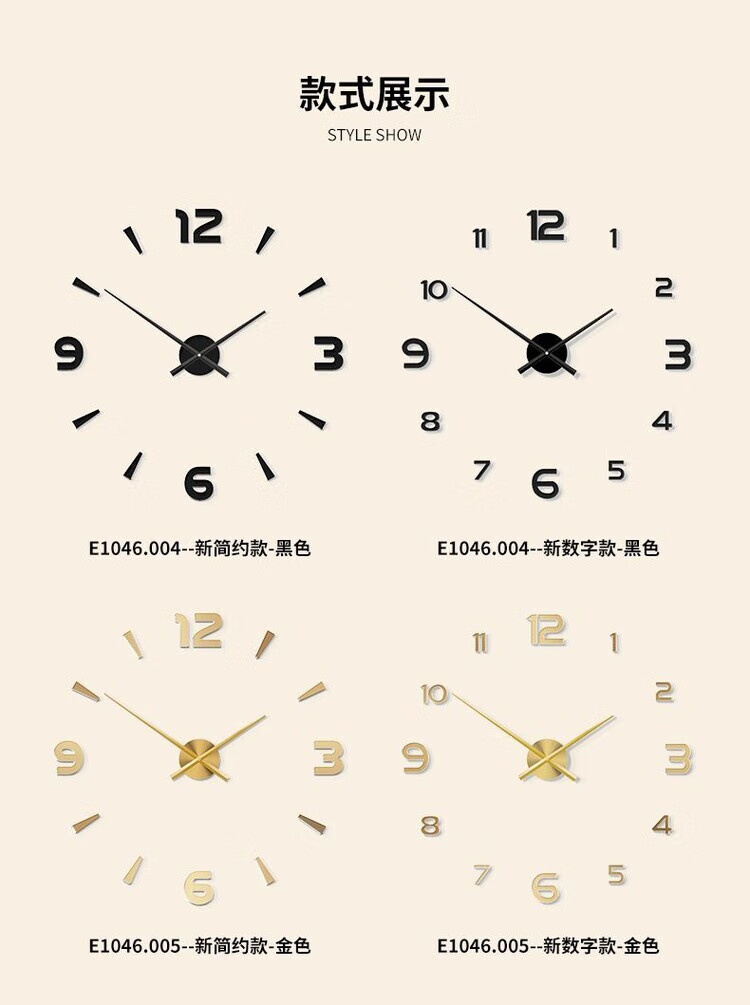 OEMG胡桃木纹数字时钟复古简约家用客厅静音挂钟diy创意钟表贴墙壁钟 胡桃木色简约/钟盘粘贴磁吸/20英寸50厘米