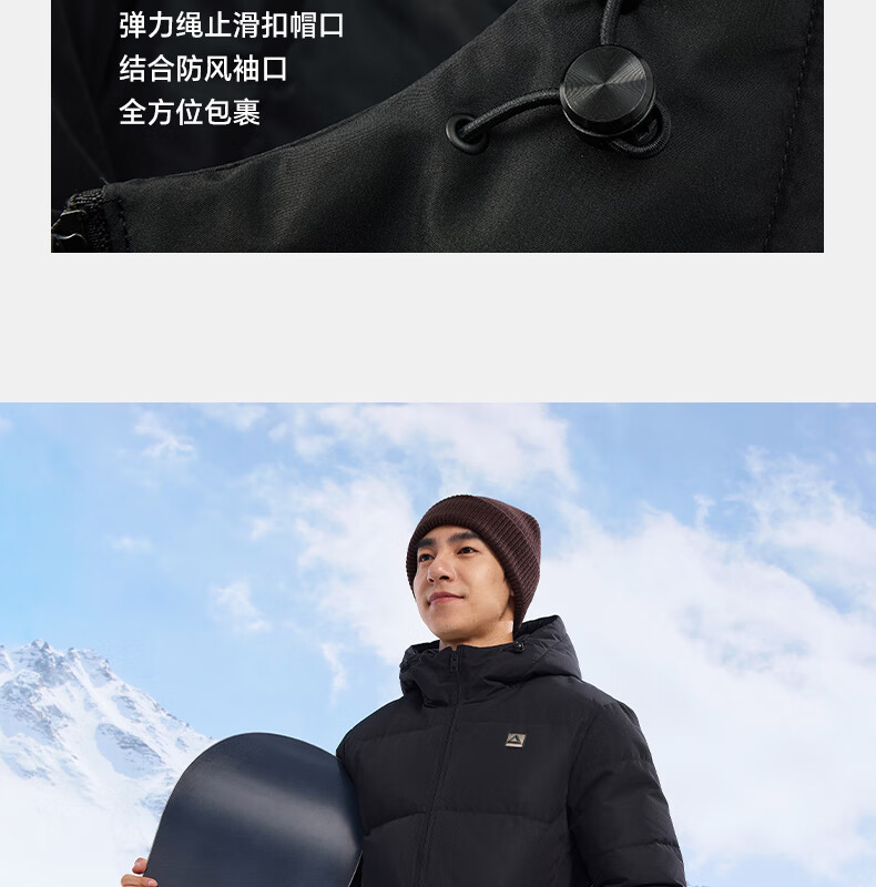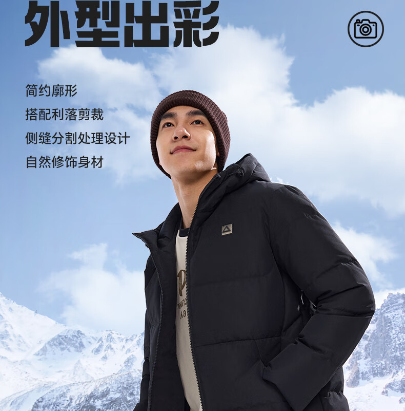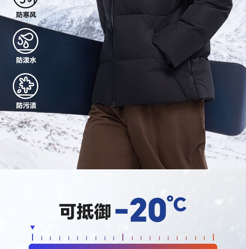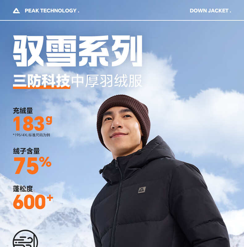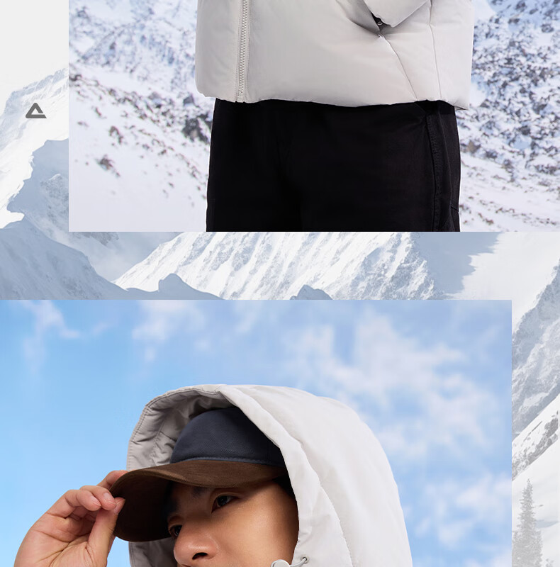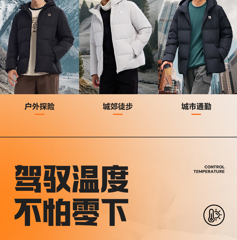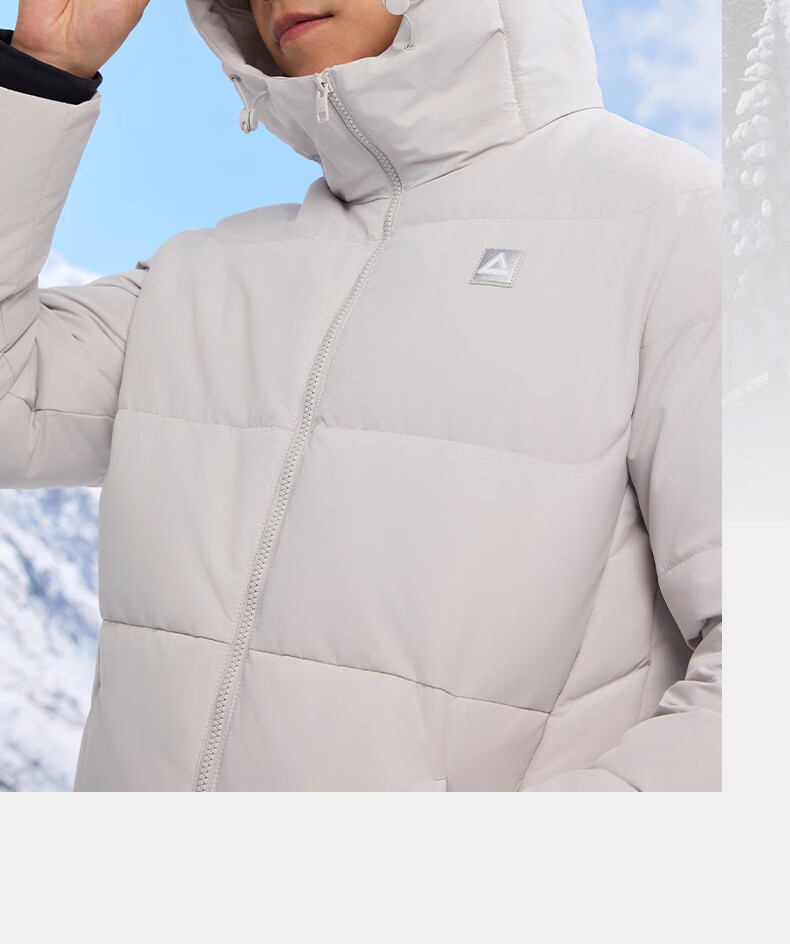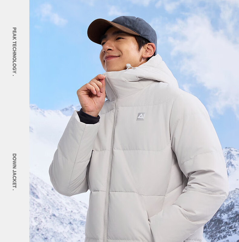 匹克驭雪短款羽绒服男秋冬新款三防科技加厚保暖运动外套连帽面包服 浅银灰 L