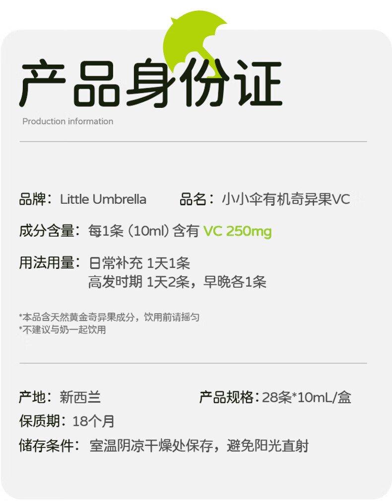 小小伞有机奇异果VC6个月+婴幼儿儿童复合维生素C增强抵抗力免疫力 有机奇异果28条/盒