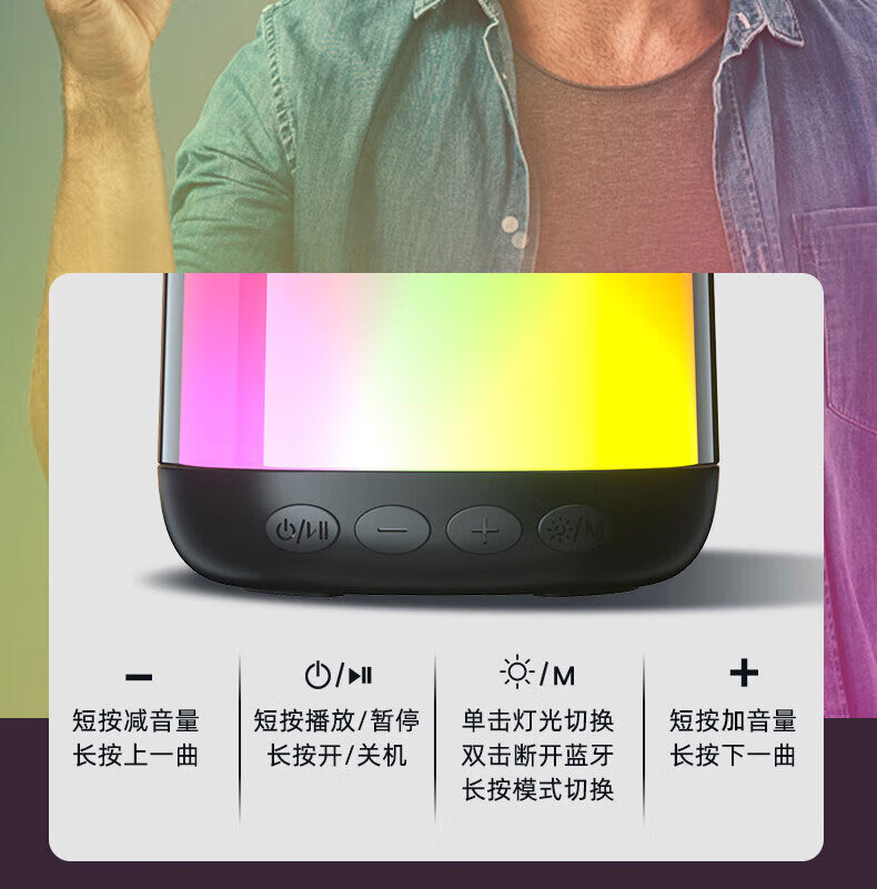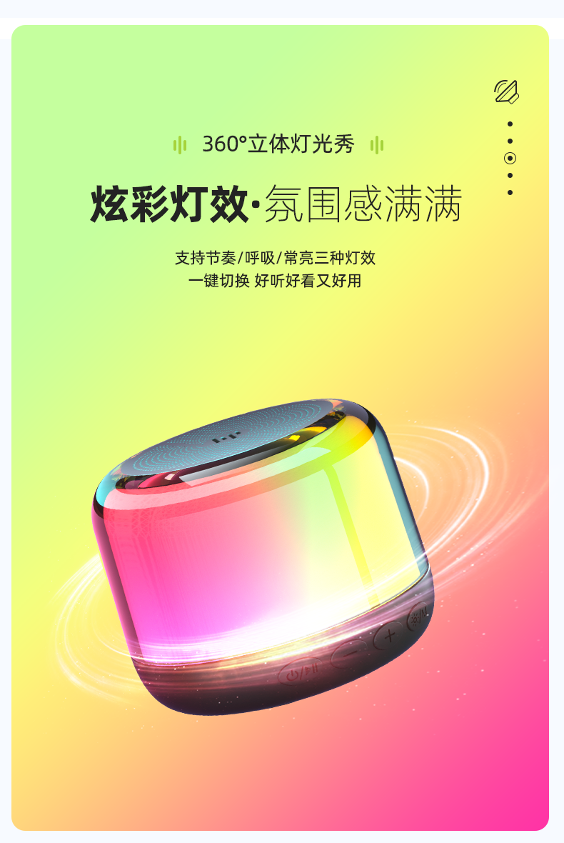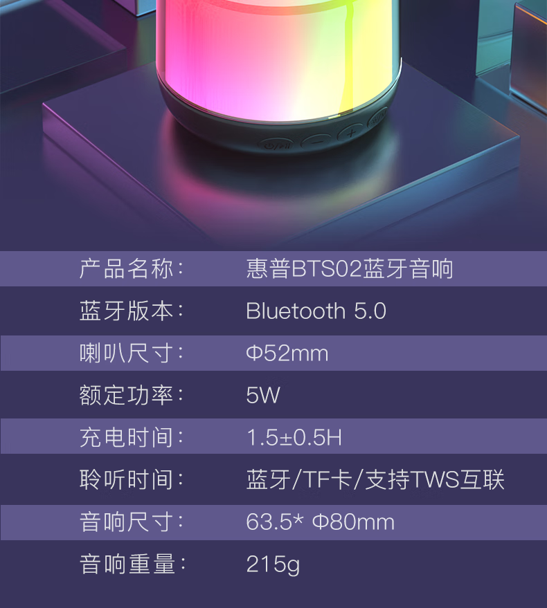惠普(HP)S02蓝牙音响迷你幻彩灯效音乐律动音箱电脑手机家用迷你低音炮小型便携式户外无线TWS互联小音响