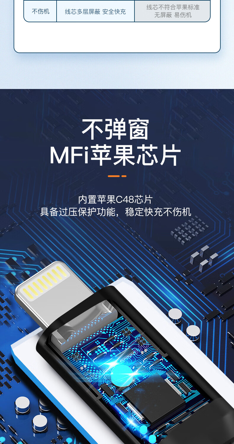 米量MFi认证苹果PD快充数据线通用iPhone14/13/12/SE/11Xs/XR手机USB-C超强编织网尾+铝合金外壳 MFi认证 不弹窗 1.8米红色PD
