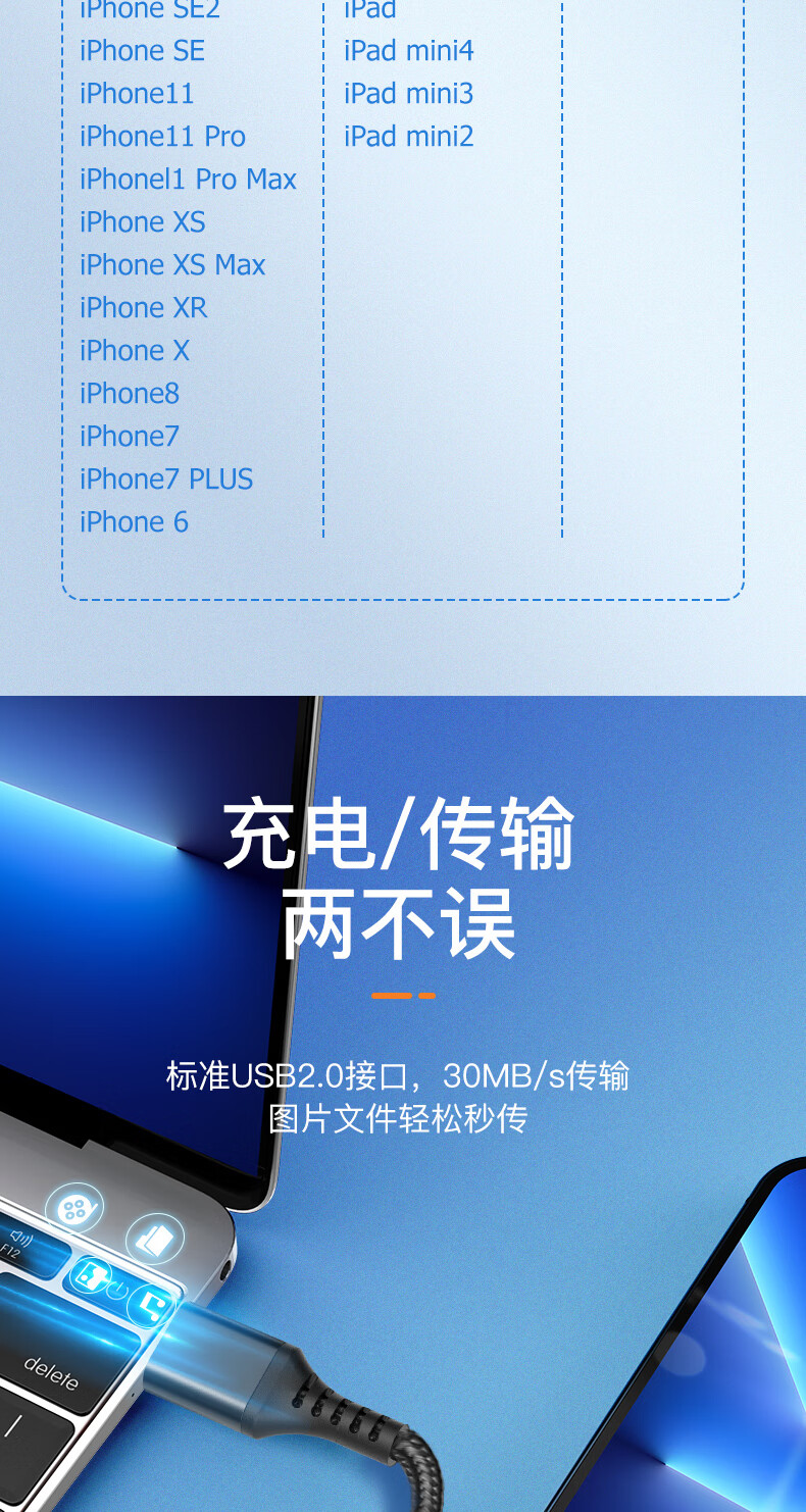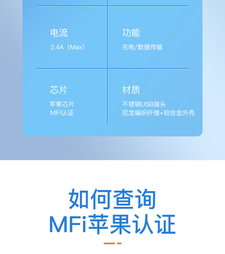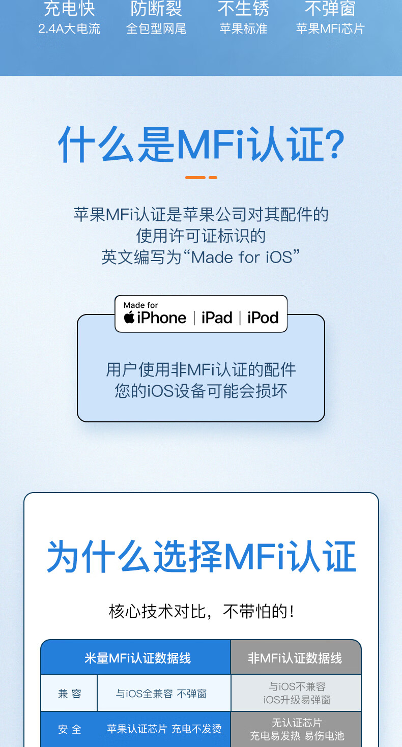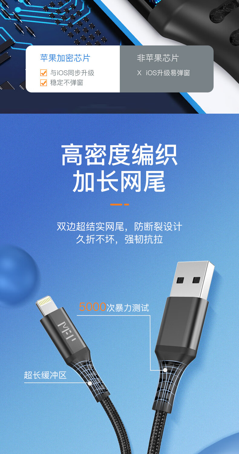 米量(MFPower)MFi认证苹果数据线快充充电线适用iPhone14/13/12/11/SE/iPad手机USB转Lightning电源数据传输线 MFi认证 2.4A 不弹窗 1.2米黑色编织