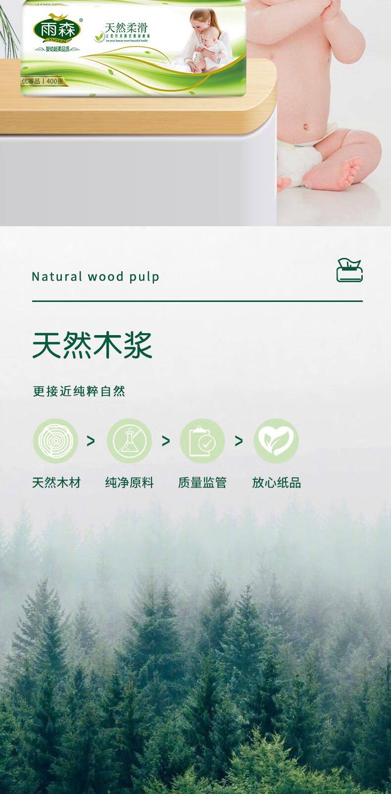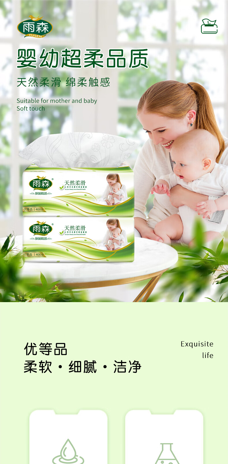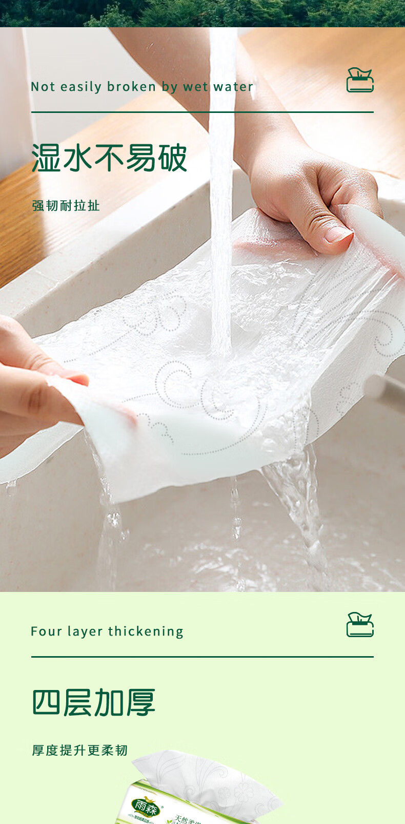 雨森(YUSEN)(YUSEN)天然柔滑妇婴抽纸面巾纸餐巾纸可湿水干湿两用400张 4层 100抽*6包 【190*135mm】提装