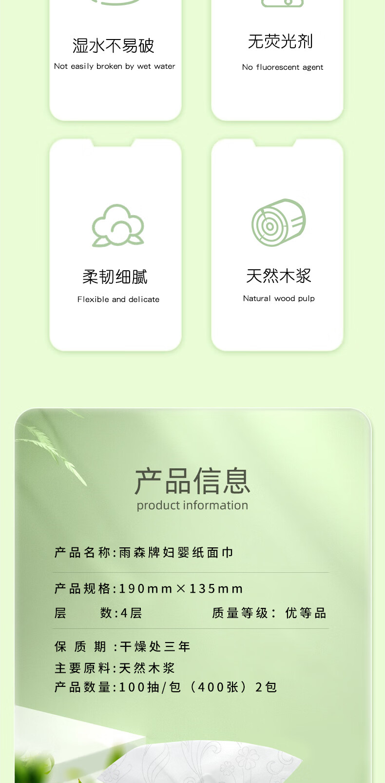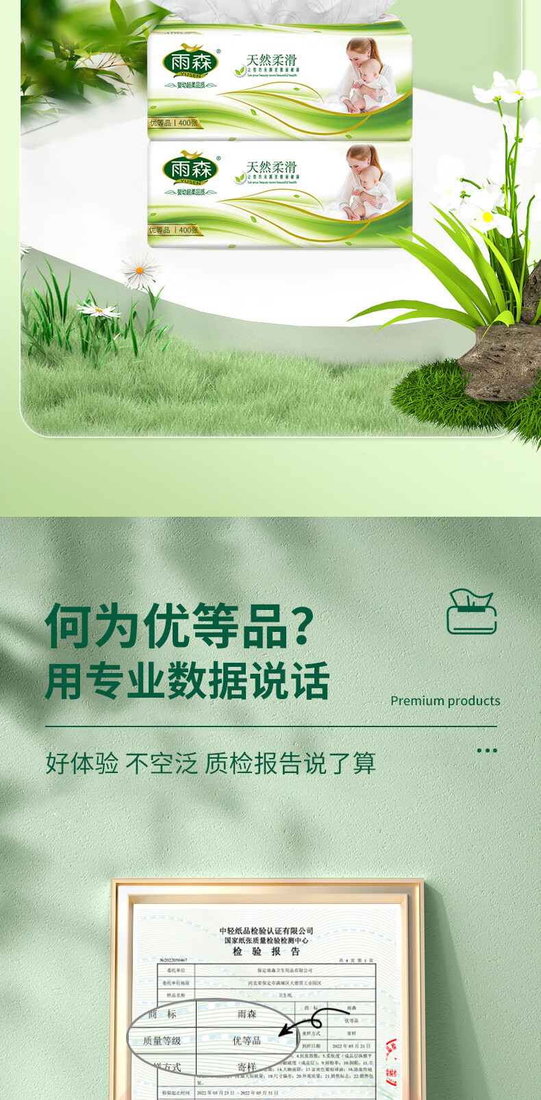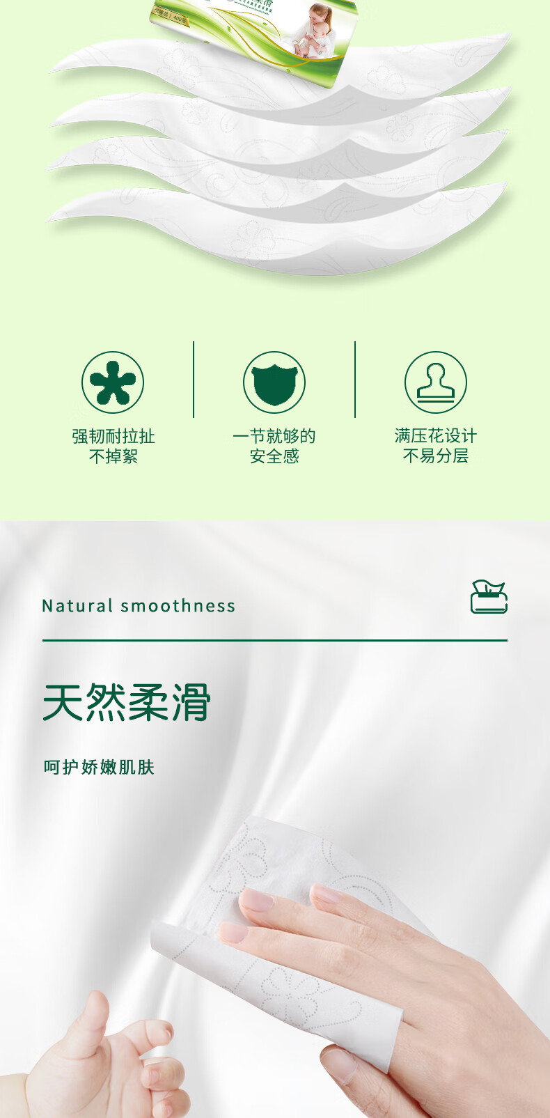 雨森(YUSEN)(YUSEN)天然柔滑妇婴抽纸面巾纸餐巾纸可湿水干湿两用400张 4层 100抽*6包 【190*135mm】提装
