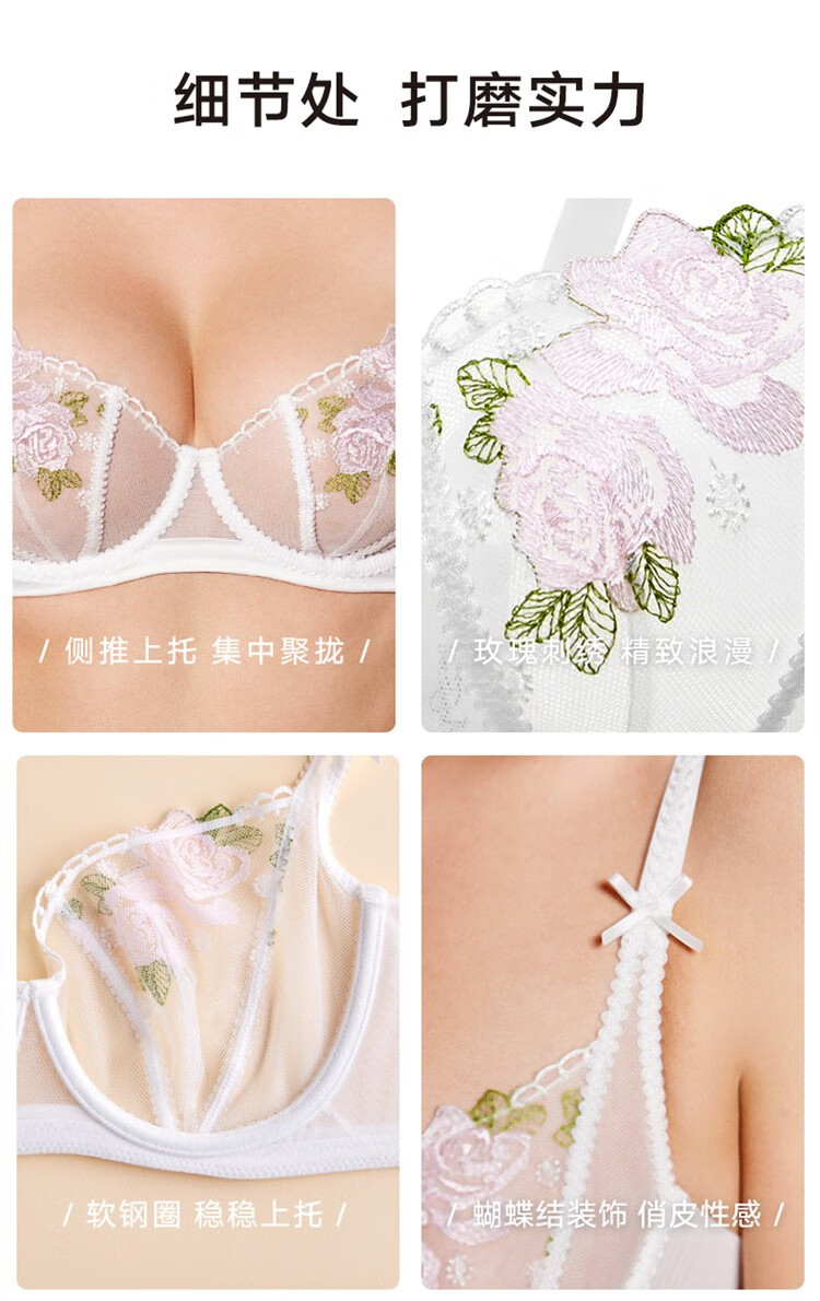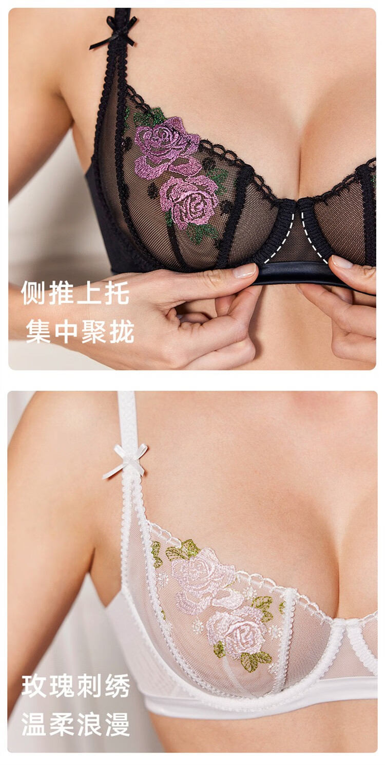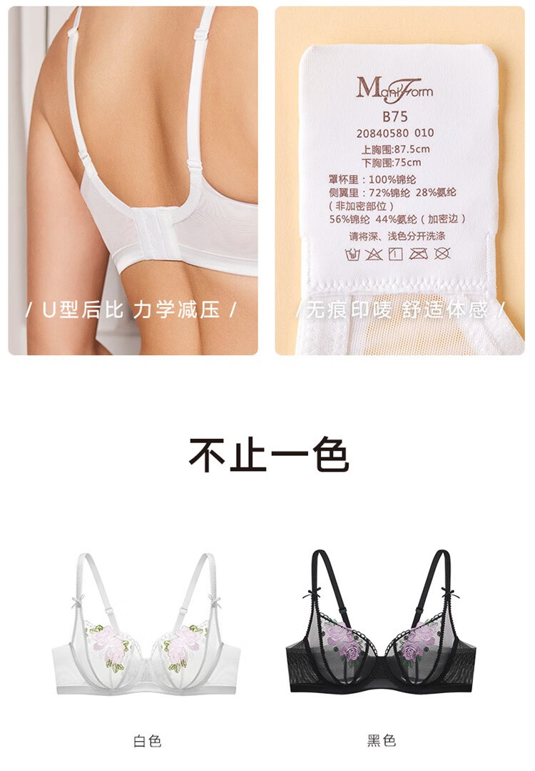 曼妮芬舒适调整软钢圈支撑文胸性感内衣女轻薄单层围胸罩20840580 020 黑色 80C