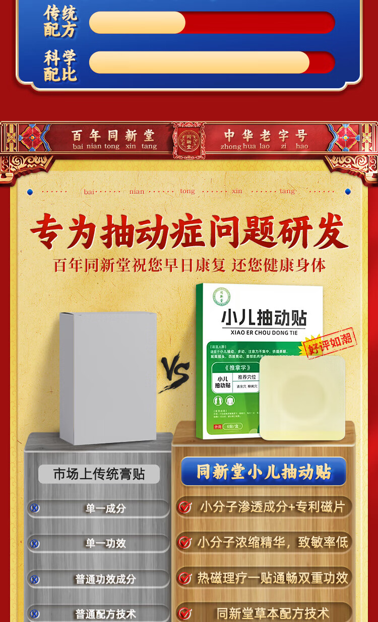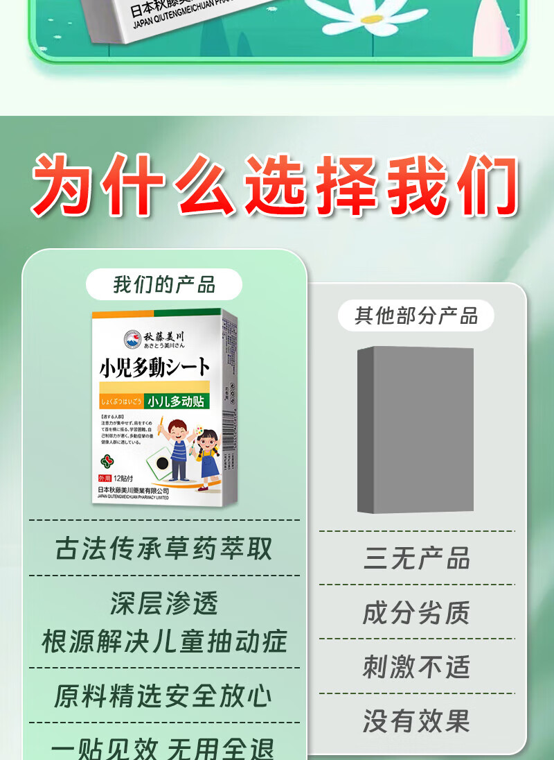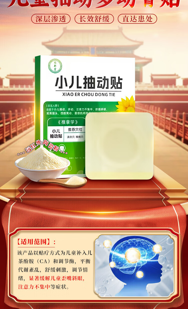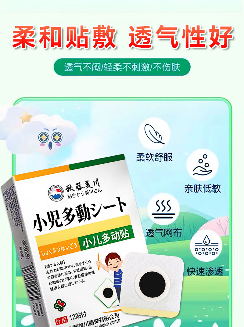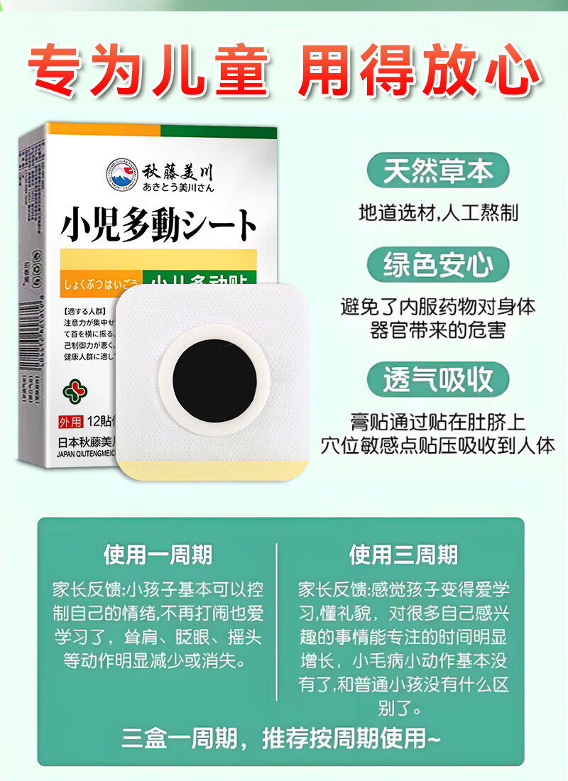 同新堂进口多动症药专用儿童小儿抽动症注意力不集中可乐定透皮贴片日本 三盒【快速见效】日本进口 乱动频繁眨眼睛清嗓子中药贴