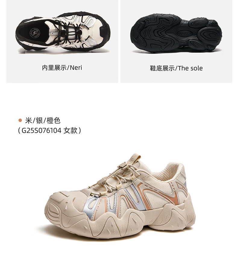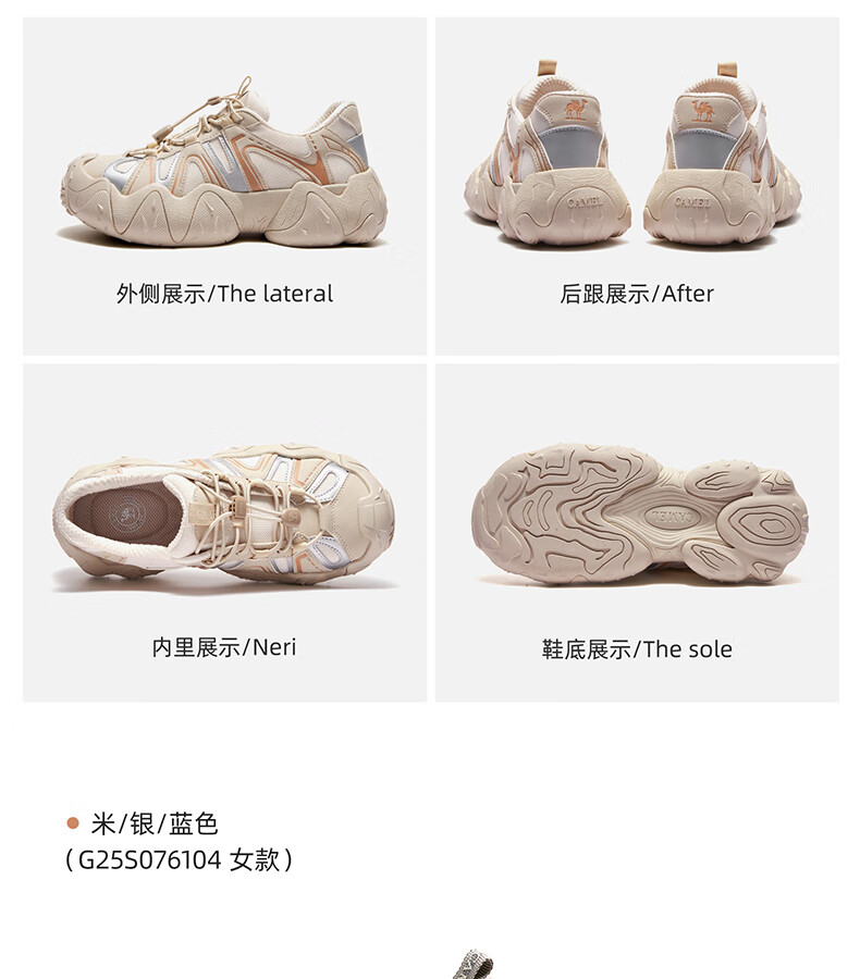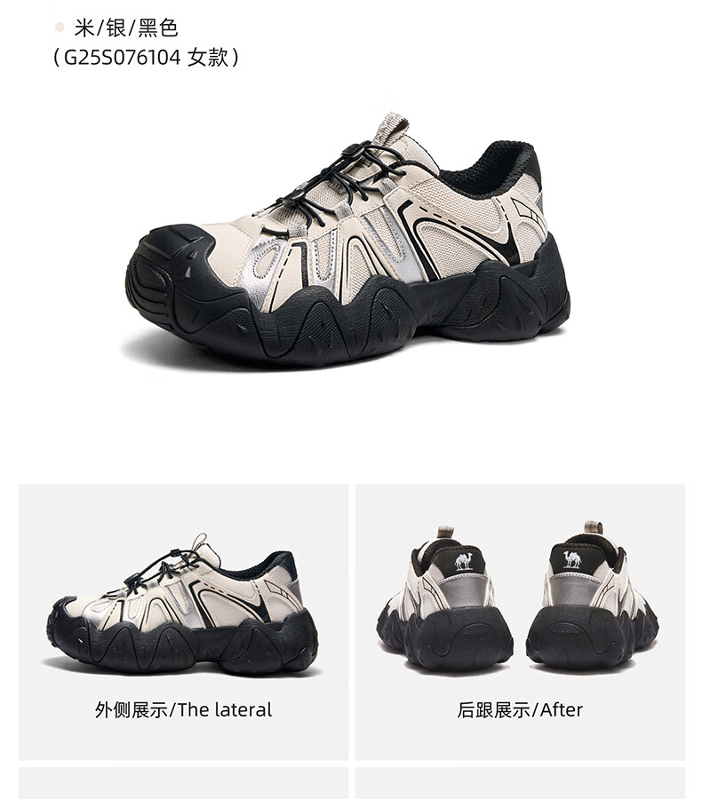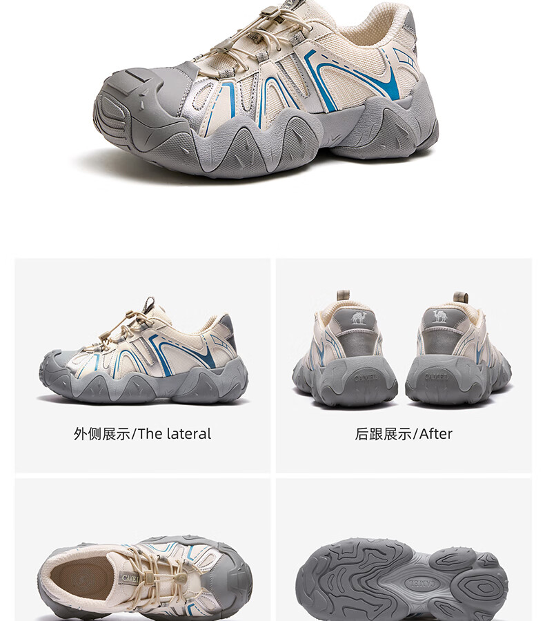 骆驼(CAMEL)【王俊凯同款】登山鞋女机甲户外丑萌鞋 L25M202007 米/银/蓝 37