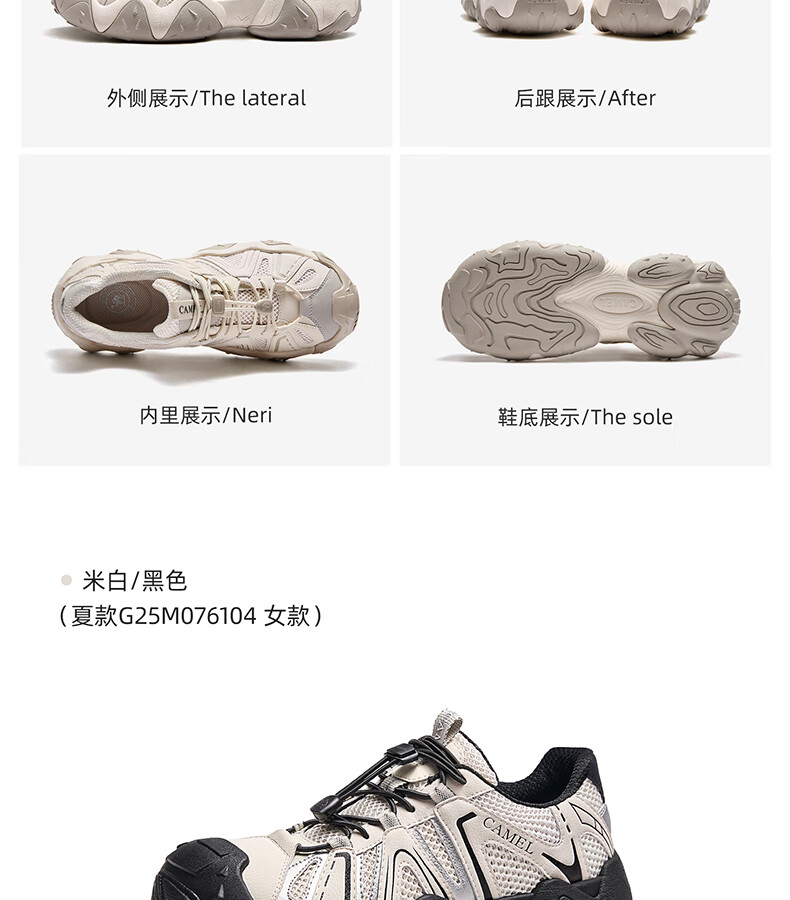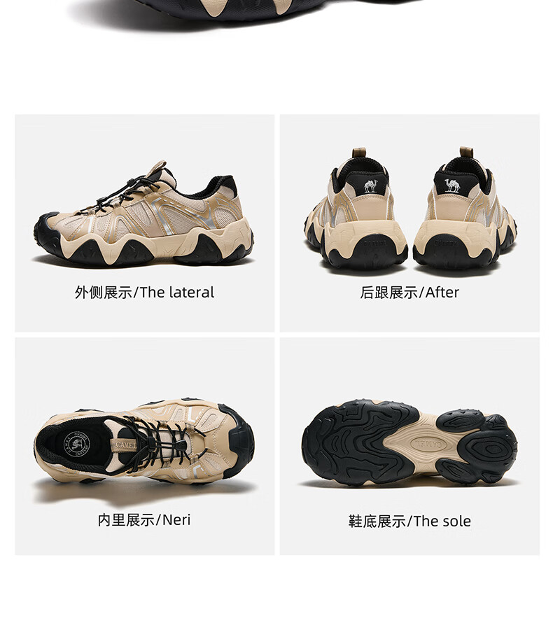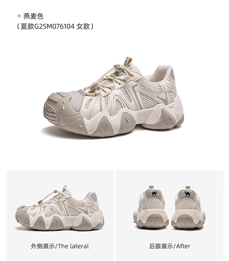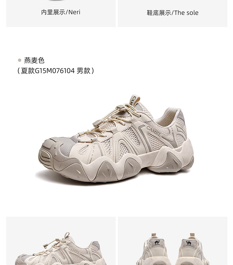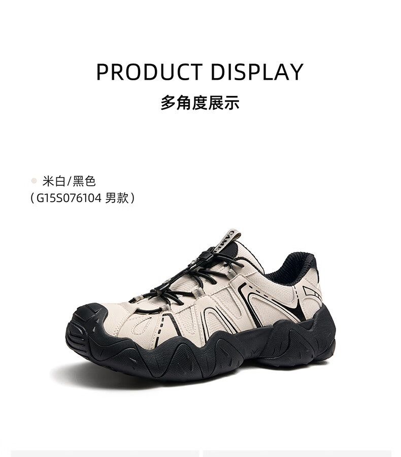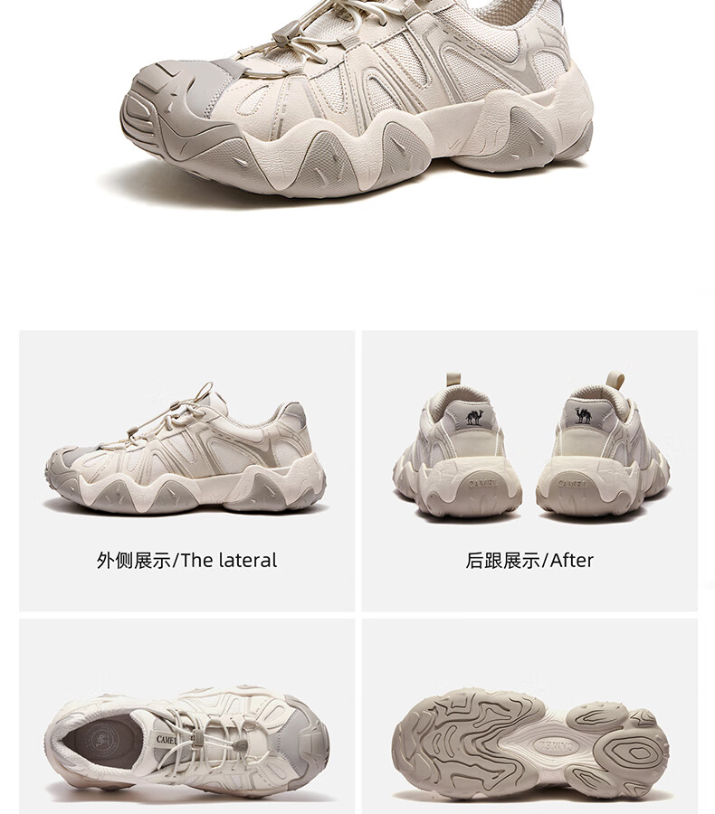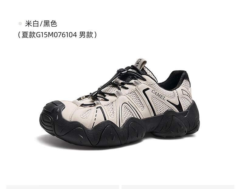 骆驼(CAMEL)【云山】网面户外徒步登山休闲丑萌鞋情侣 G15S076104 米白/黑 38