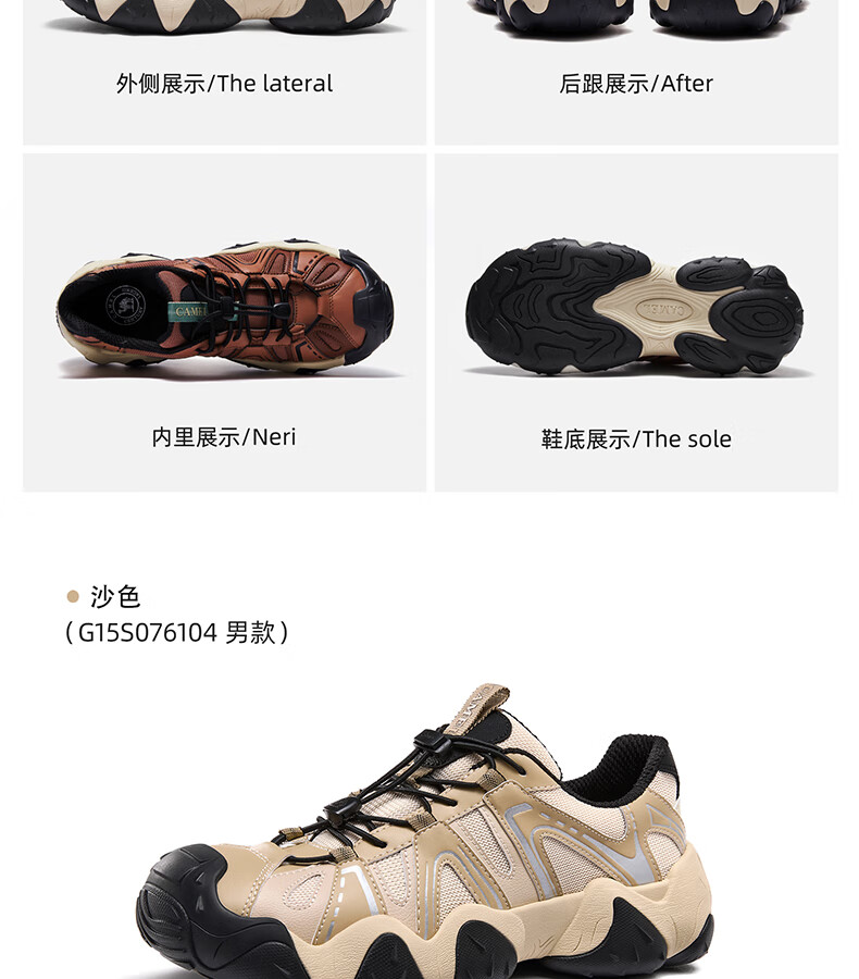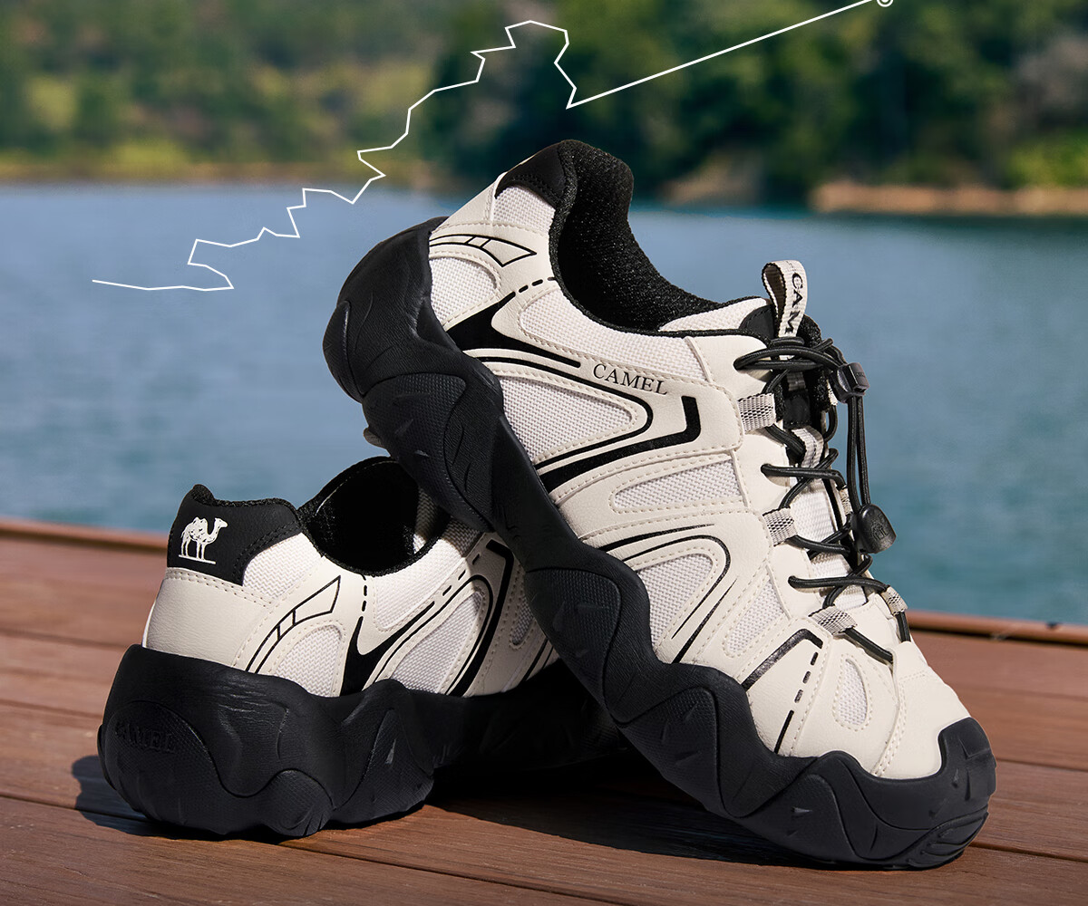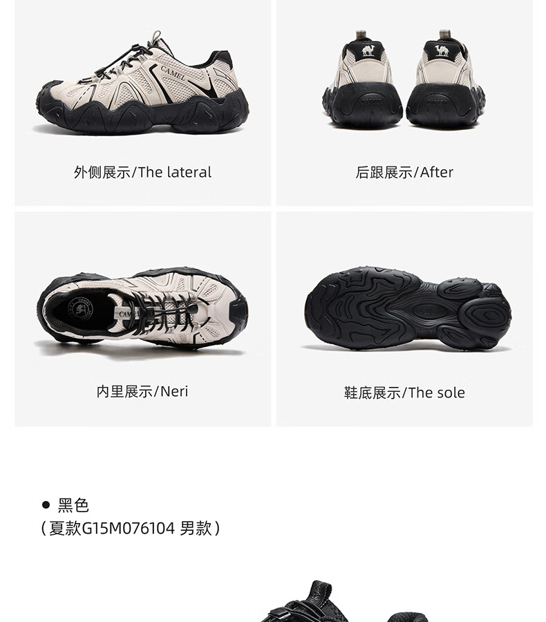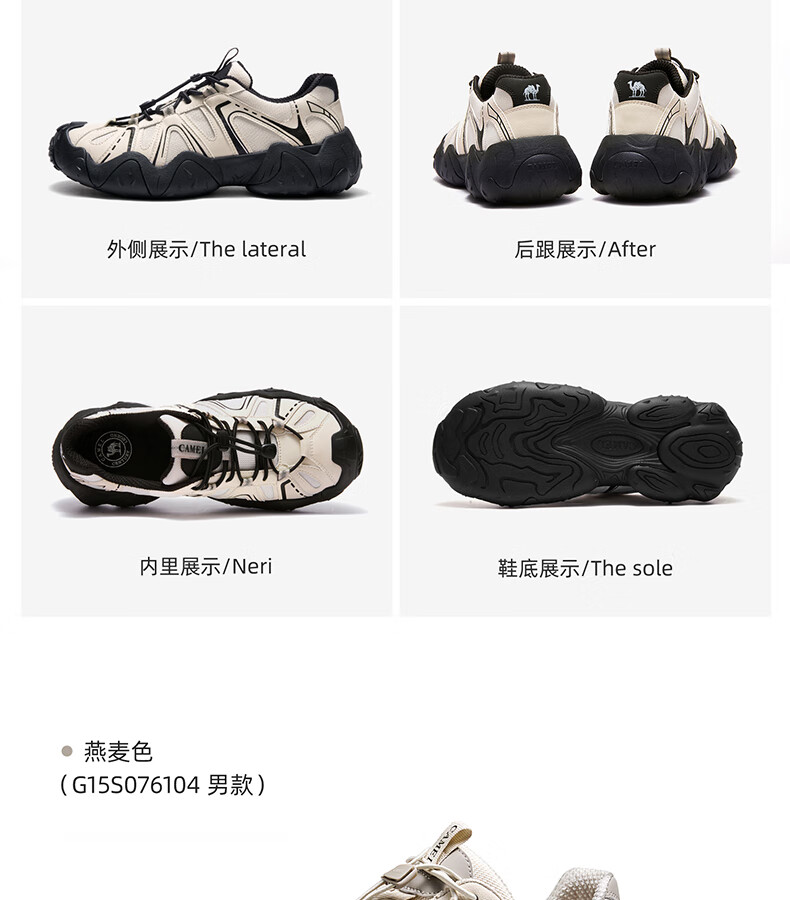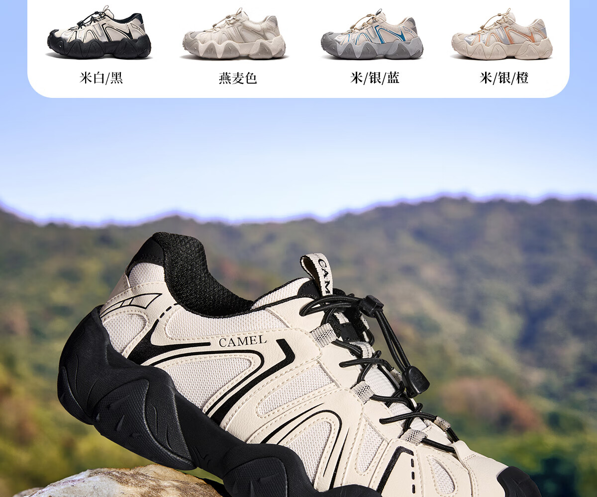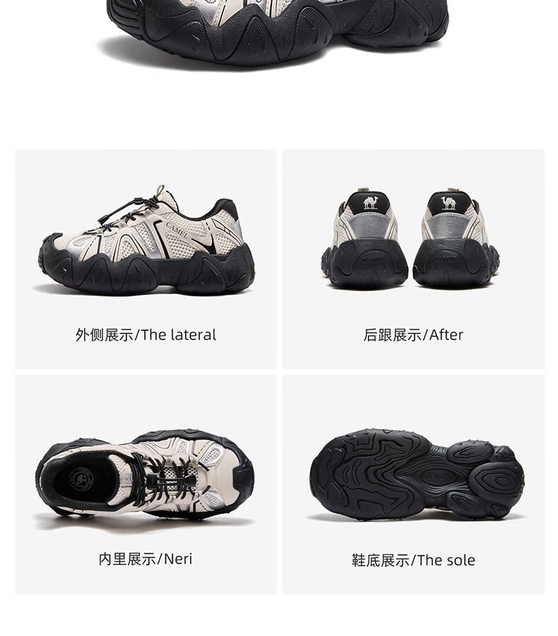 骆驼(CAMEL)【云山】网面户外徒步登山休闲丑萌鞋情侣 G15S076104 米白/黑 38