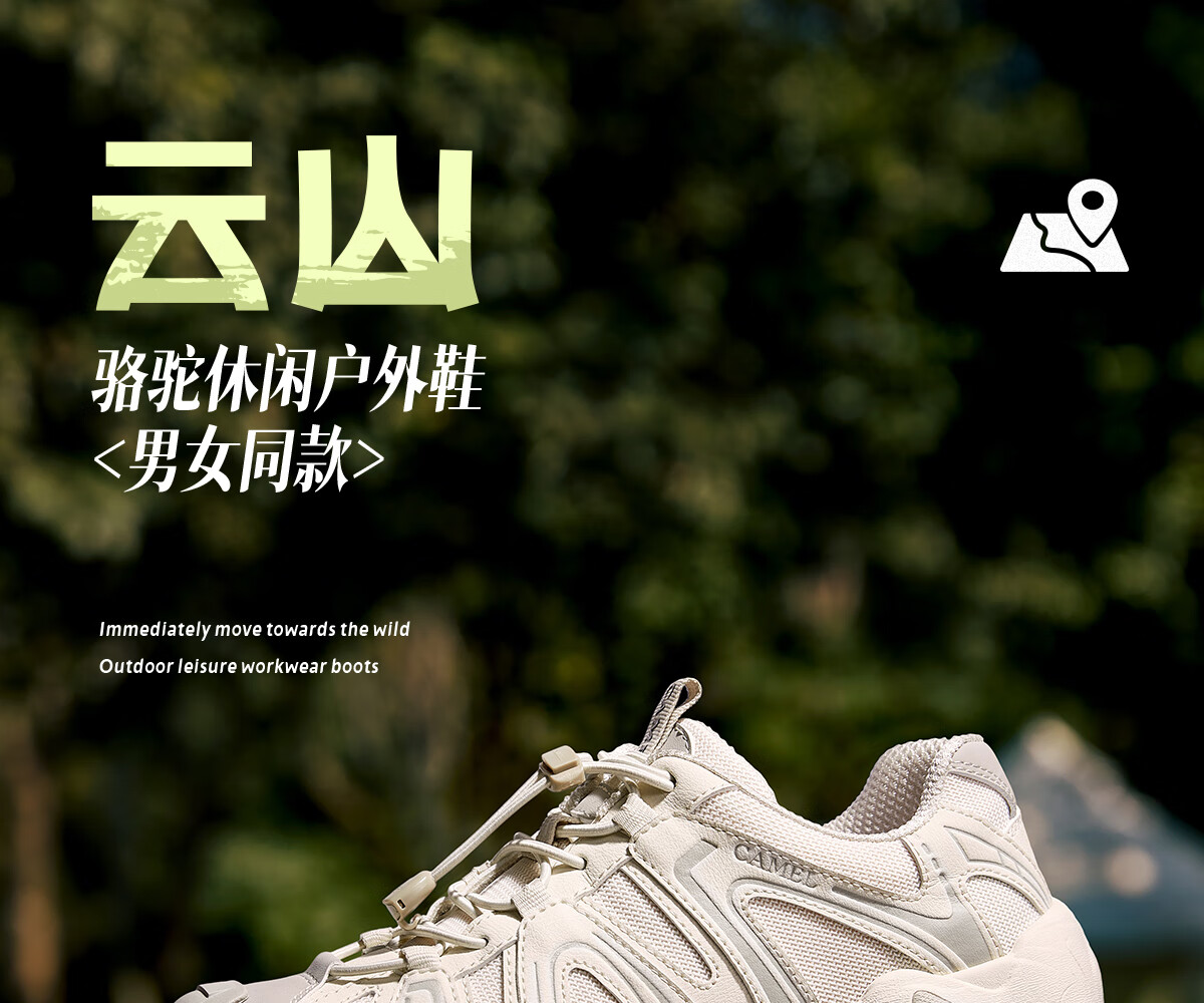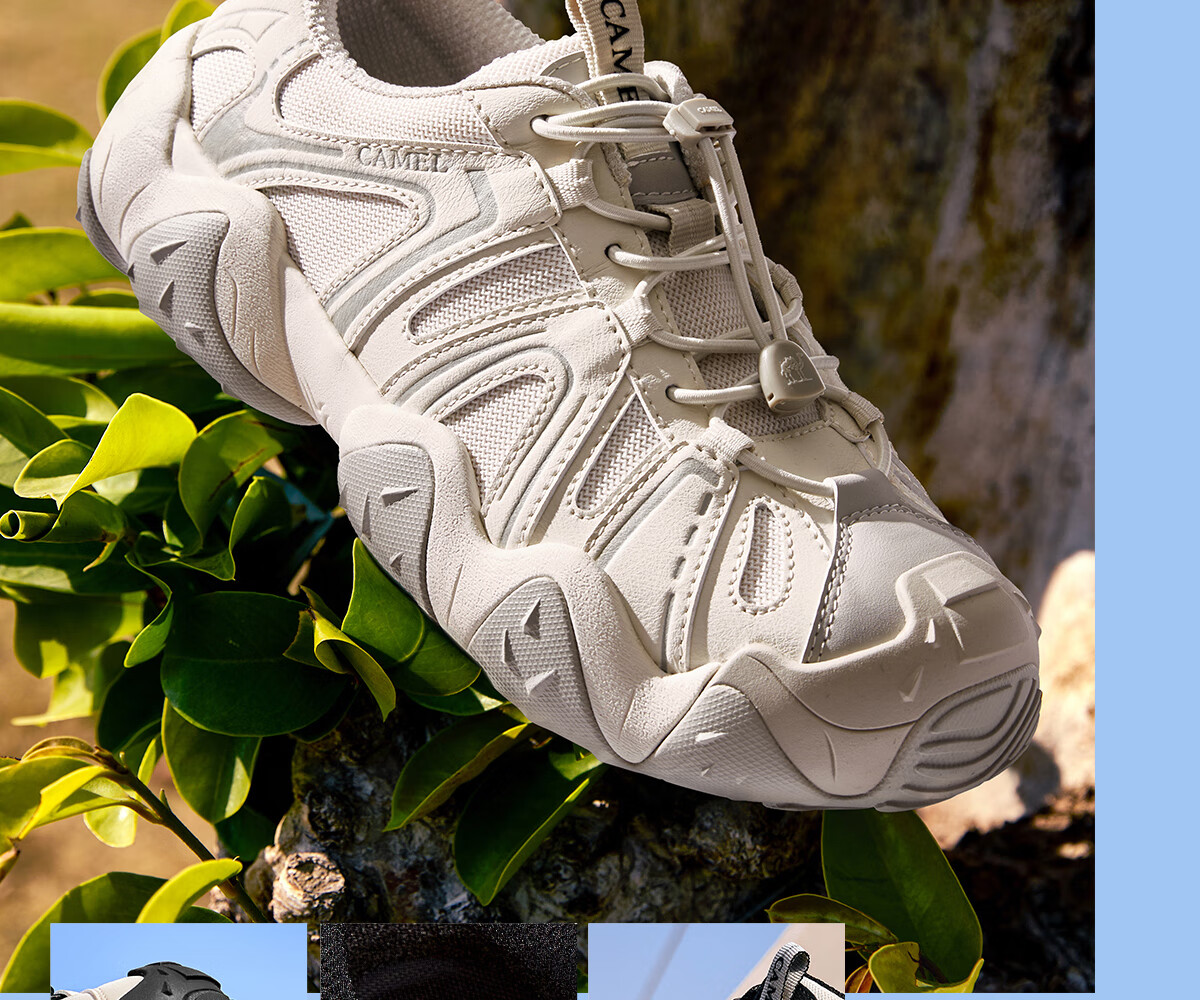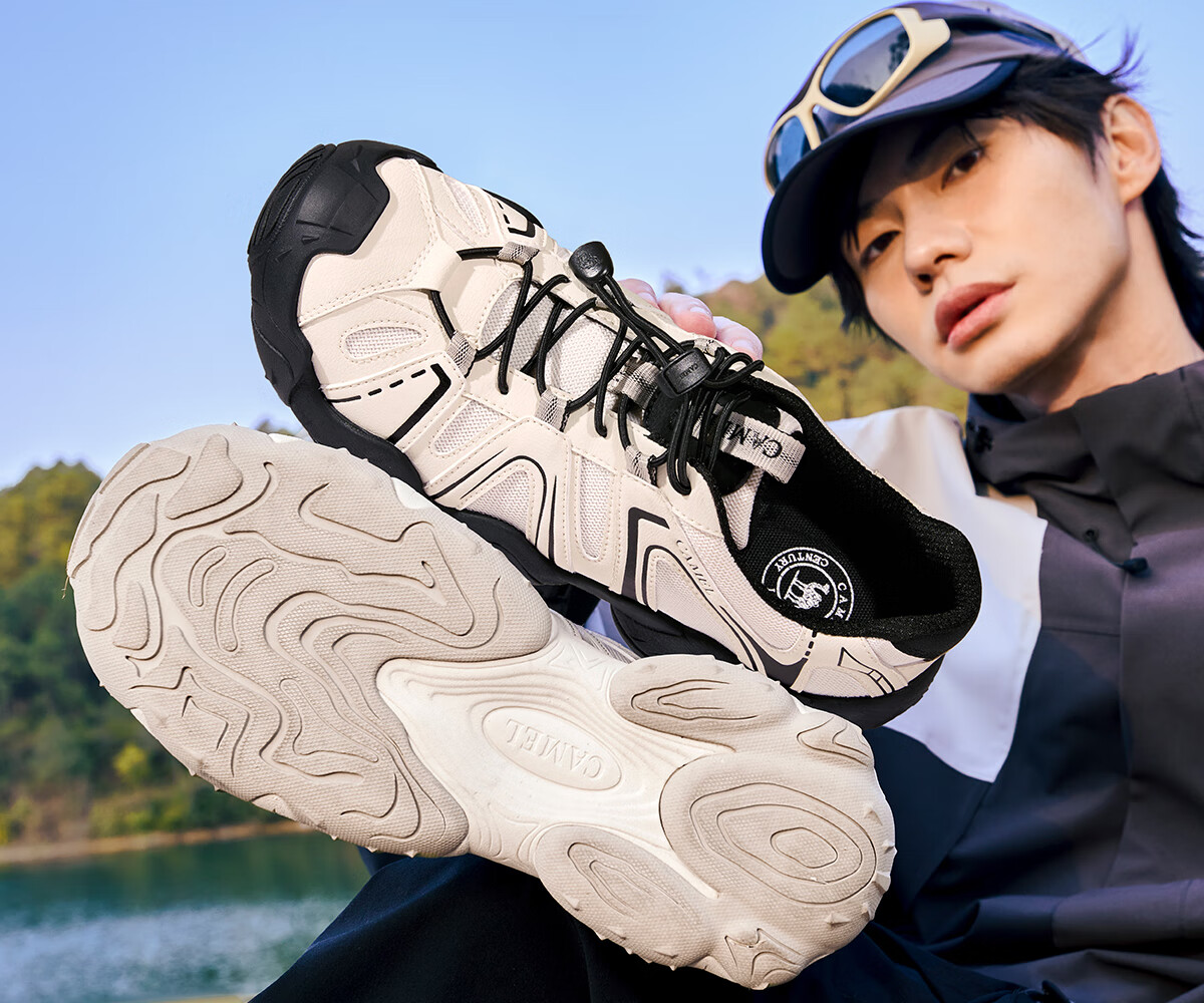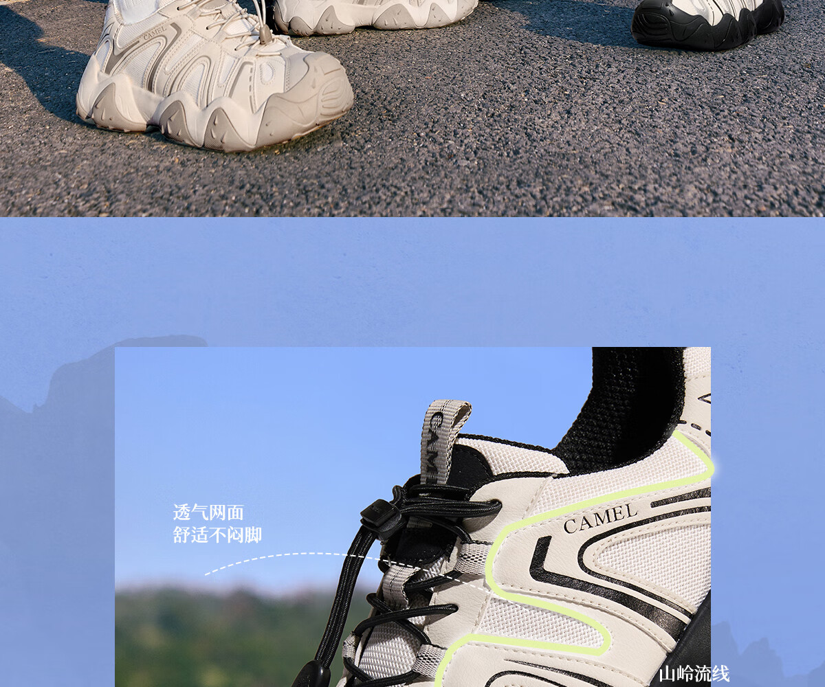 骆驼(CAMEL)【云山】网面户外徒步登山休闲丑萌鞋情侣 G15S076104 米白/黑 38